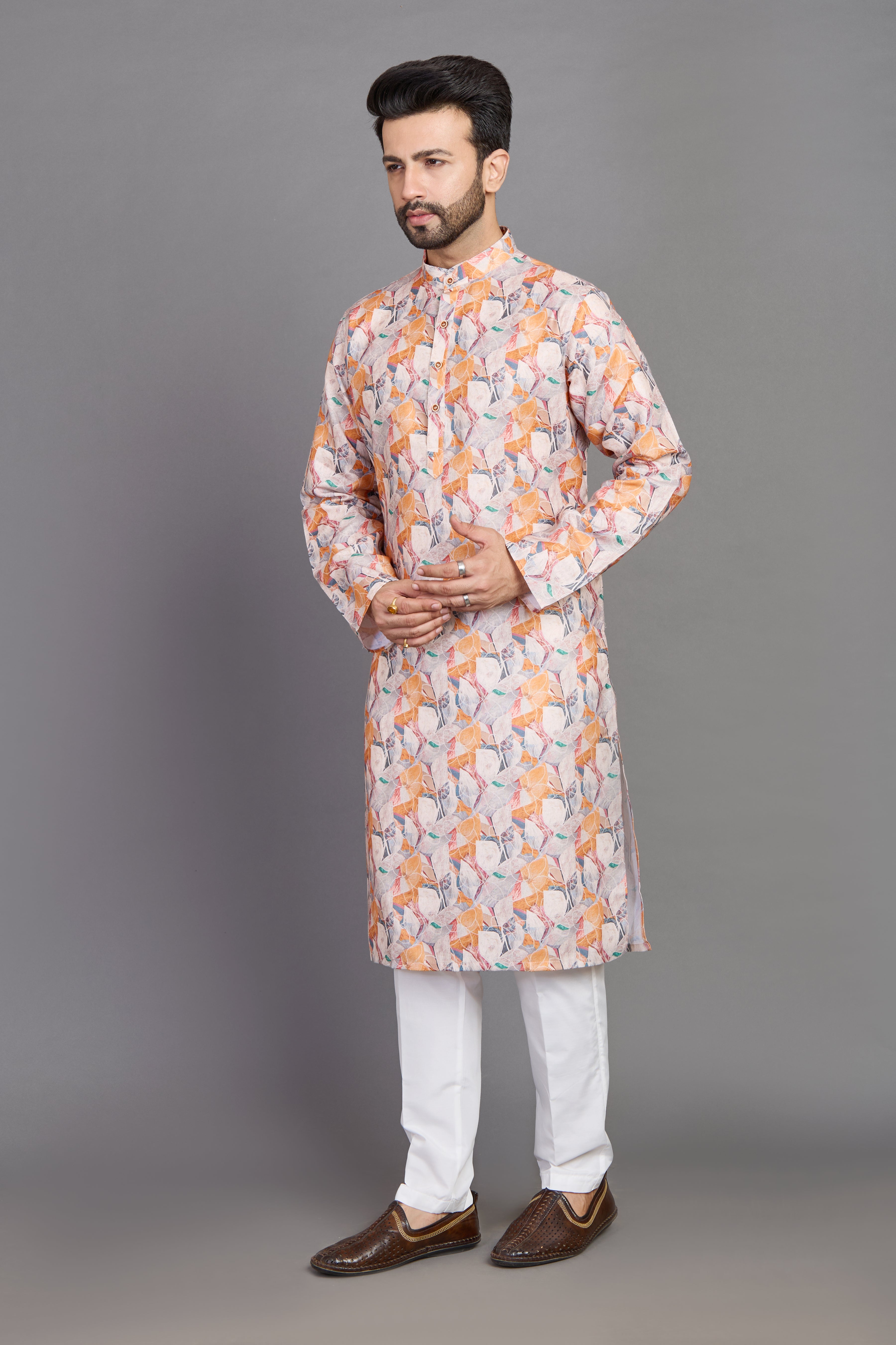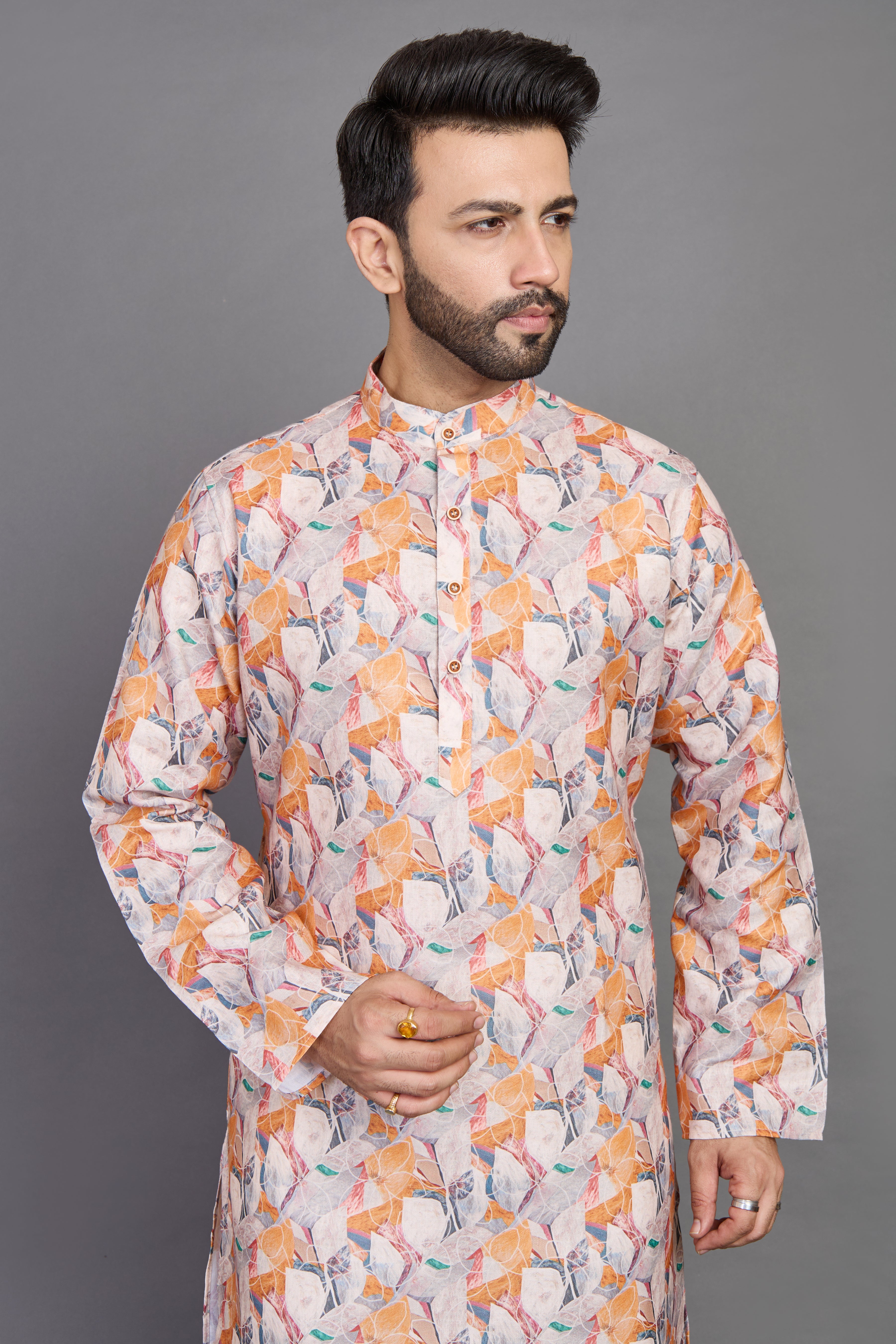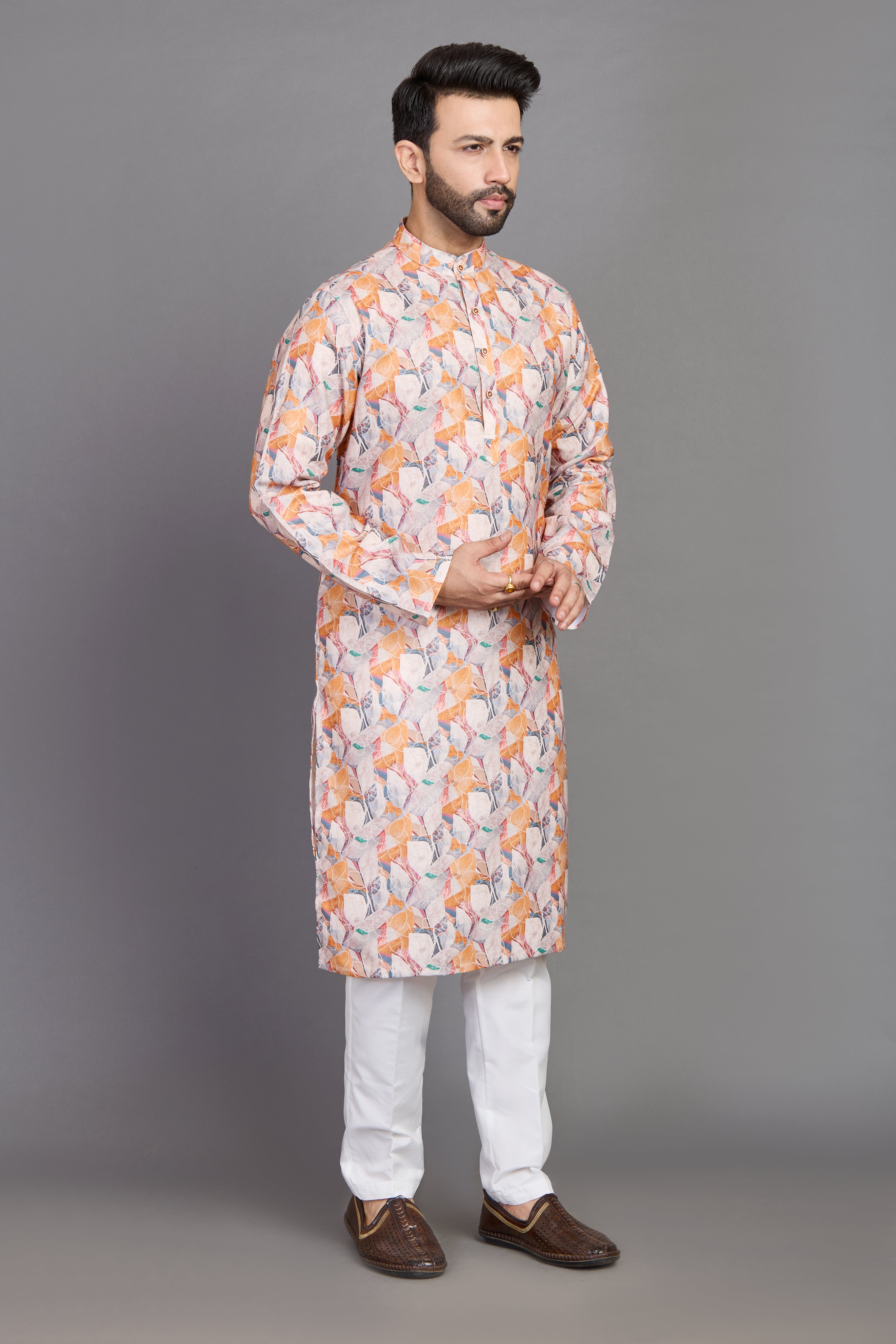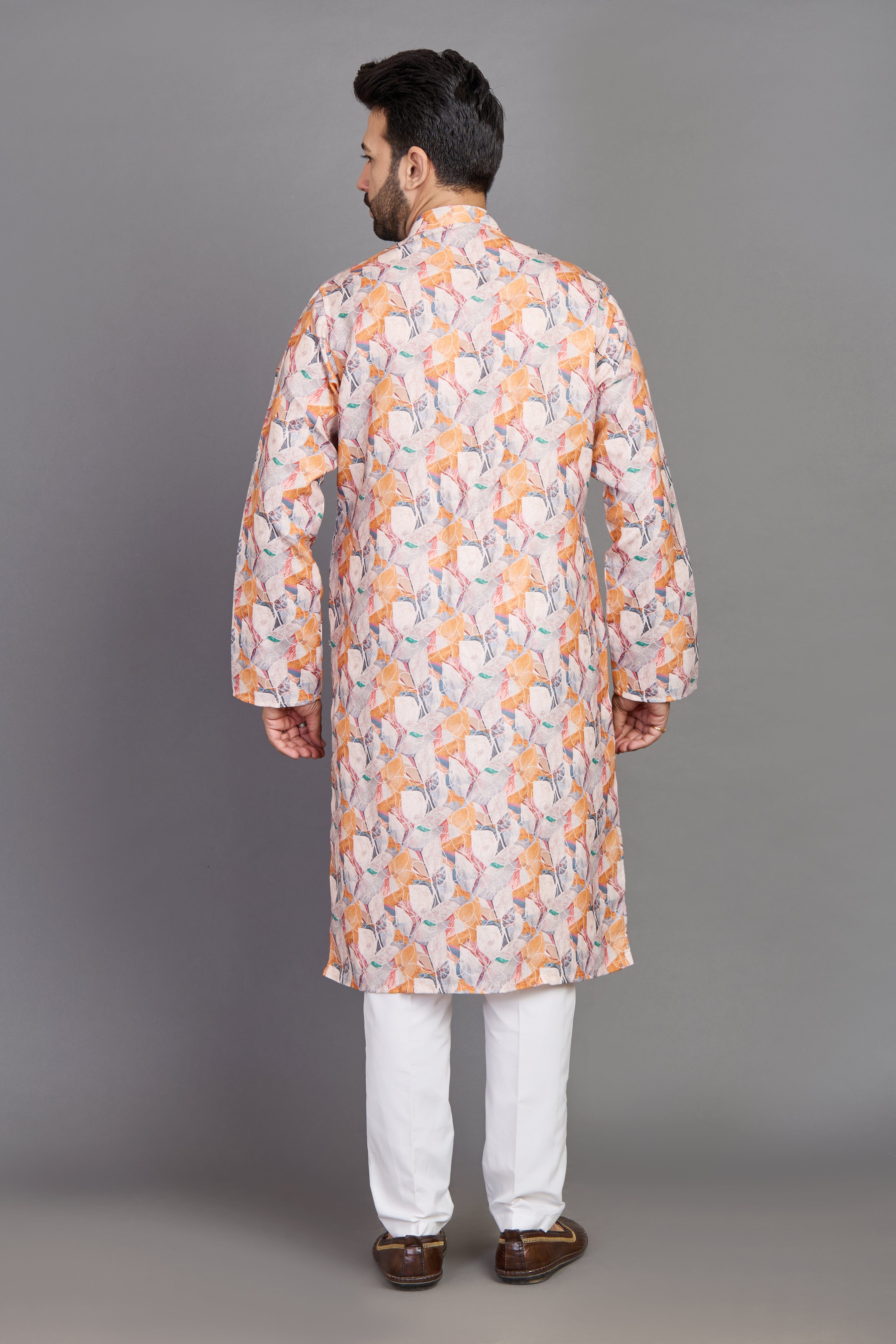 Natural Colour Ikat Printed Giza Cotton Short Kurta
