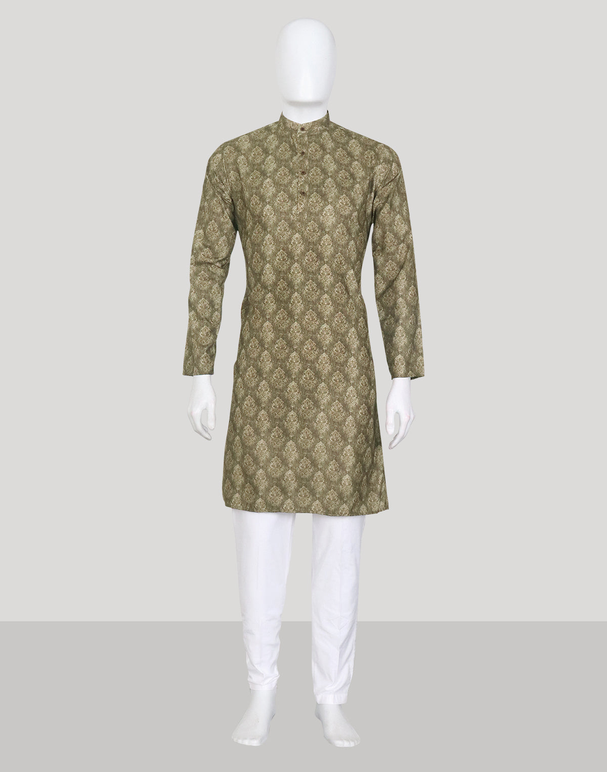Mehendi Color Floral Bunches Cotton Printed Kurta Pajamas