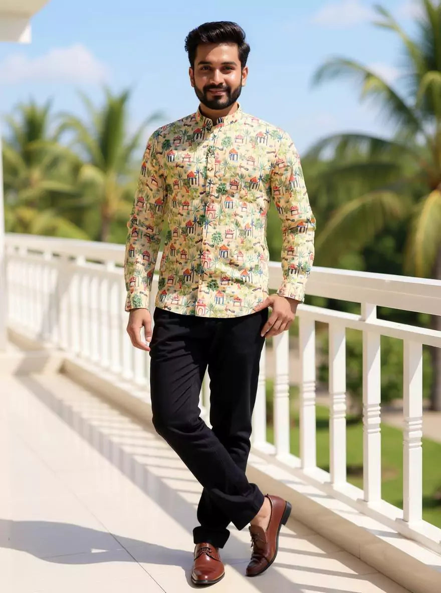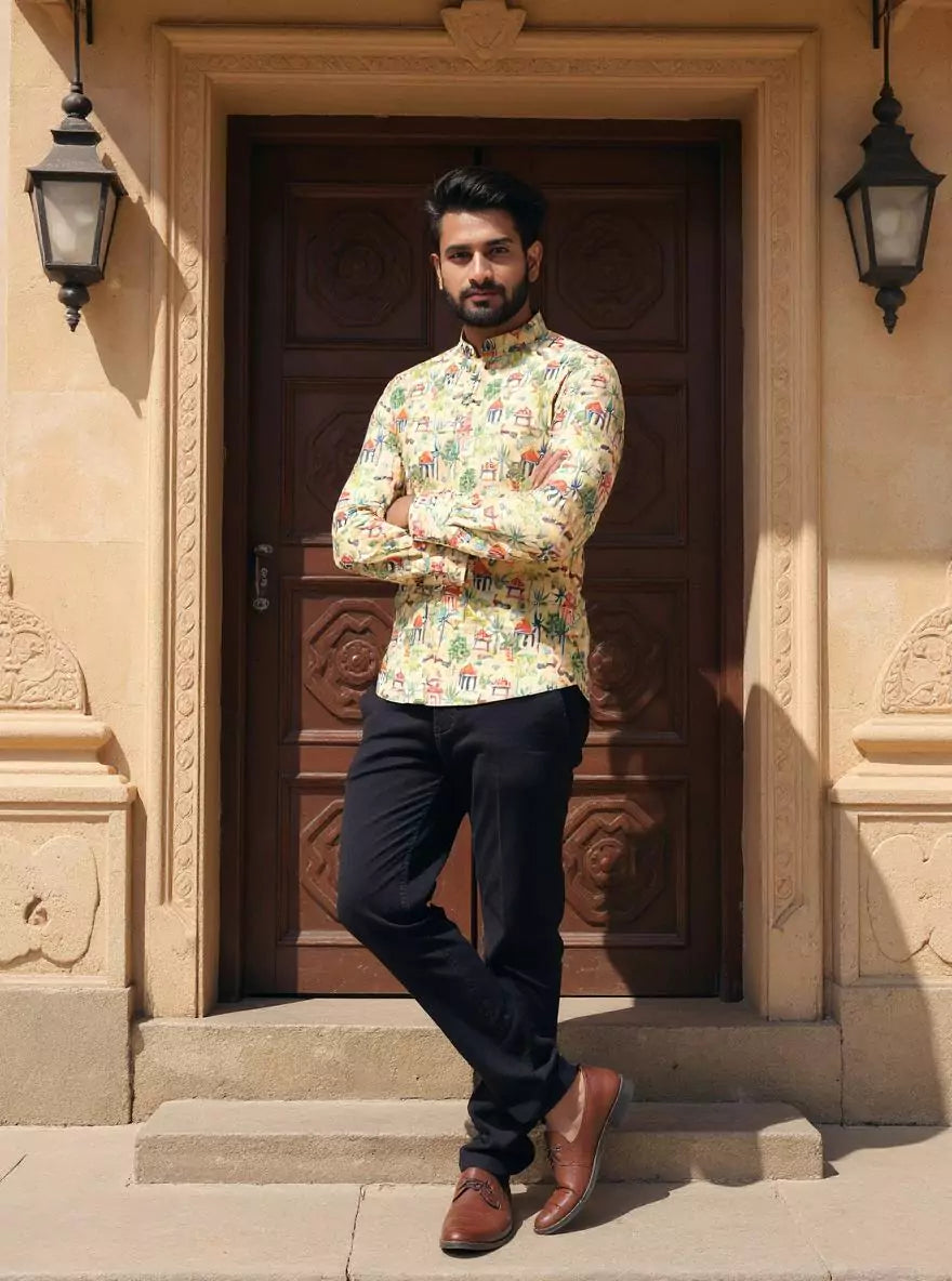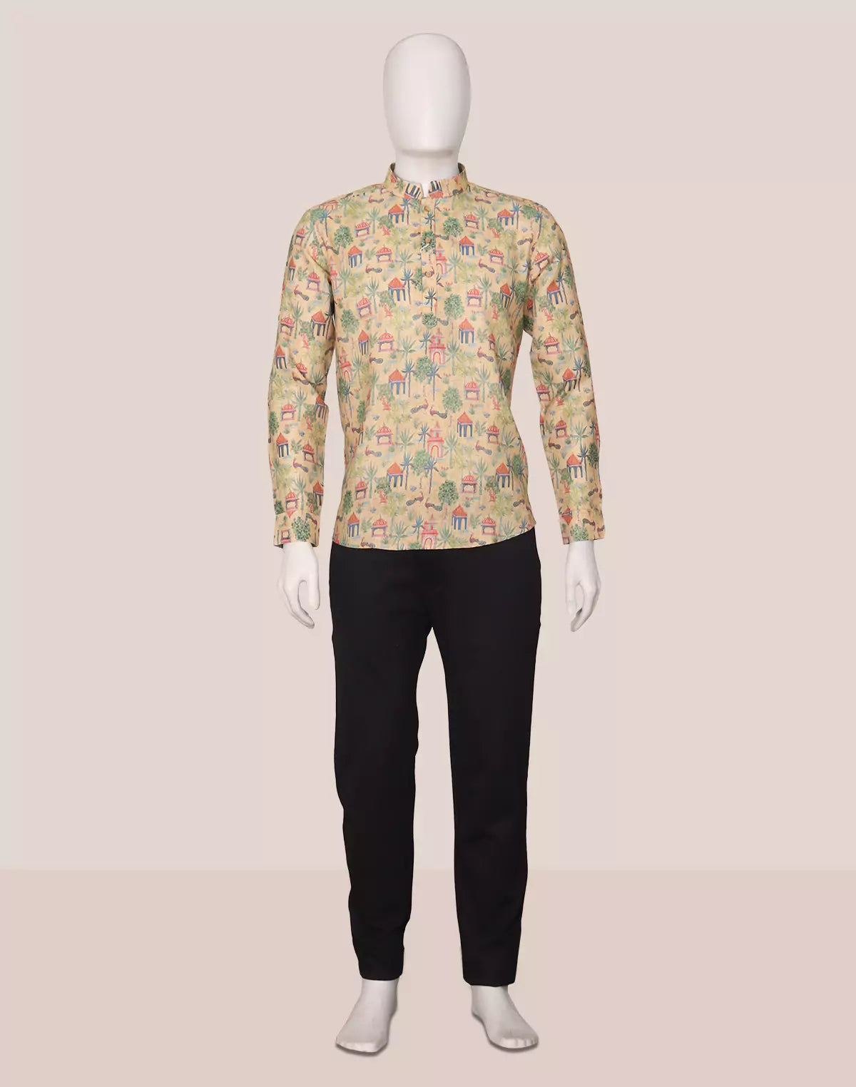Mustard Botanical with Novelty Patterned Glaxo Cotton Short Kurta