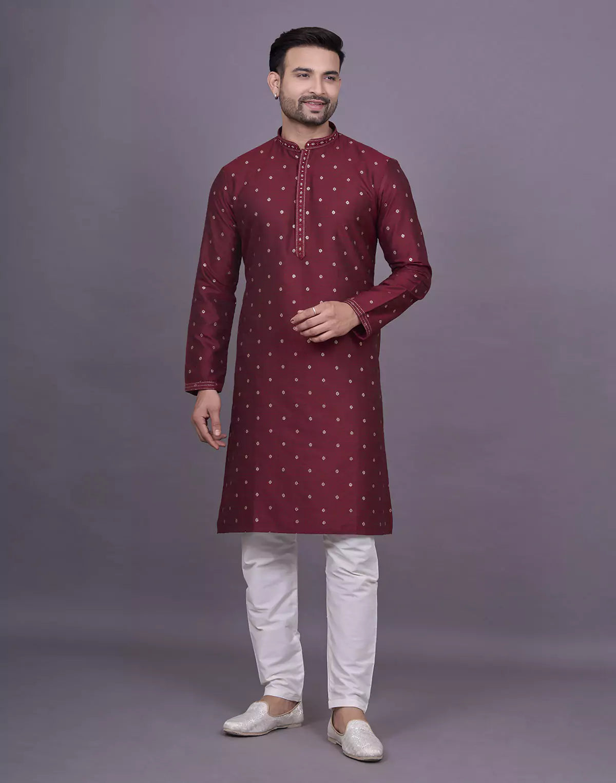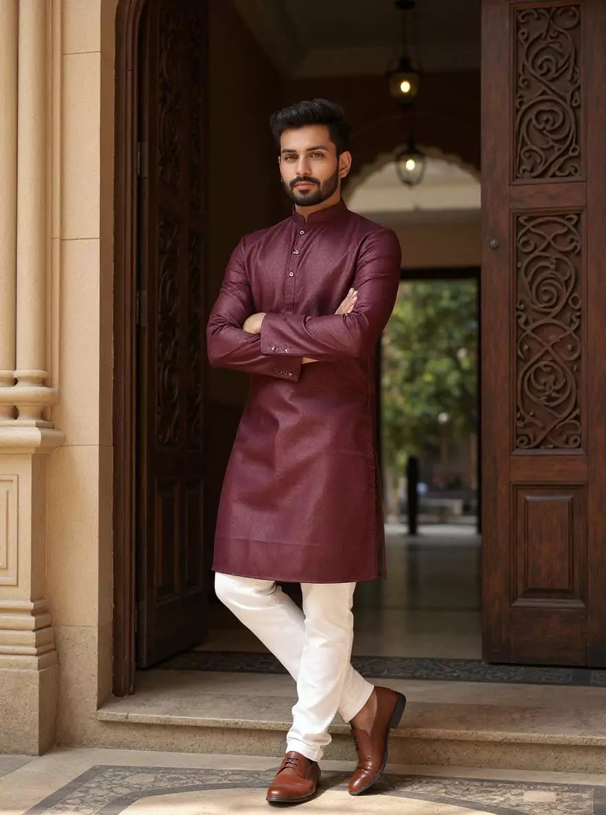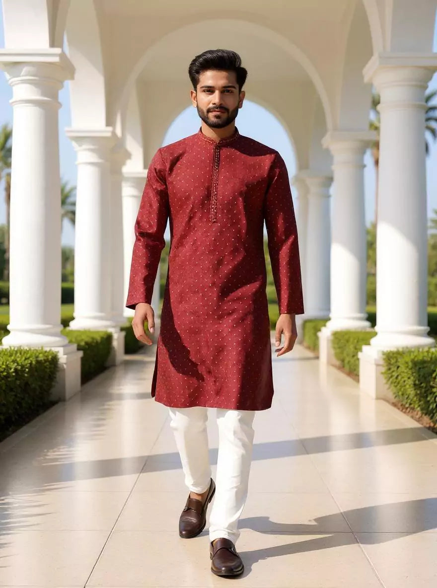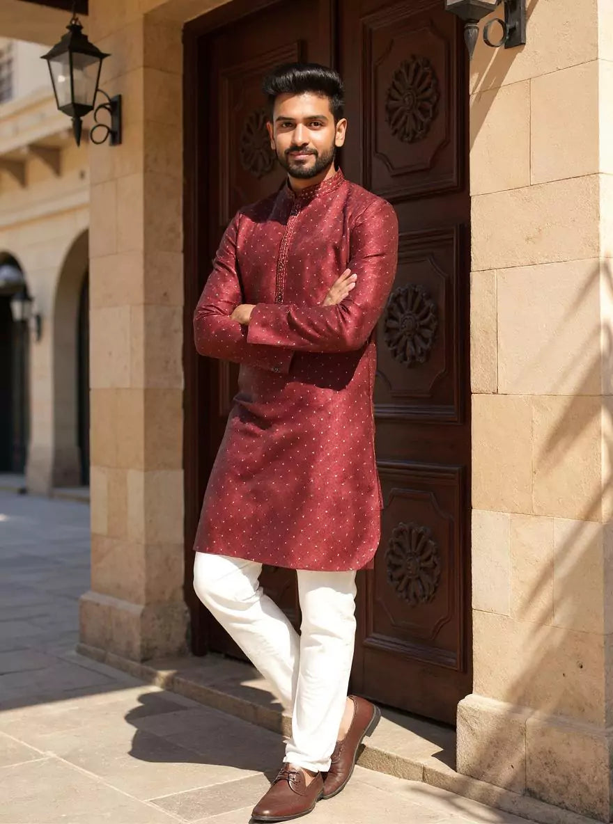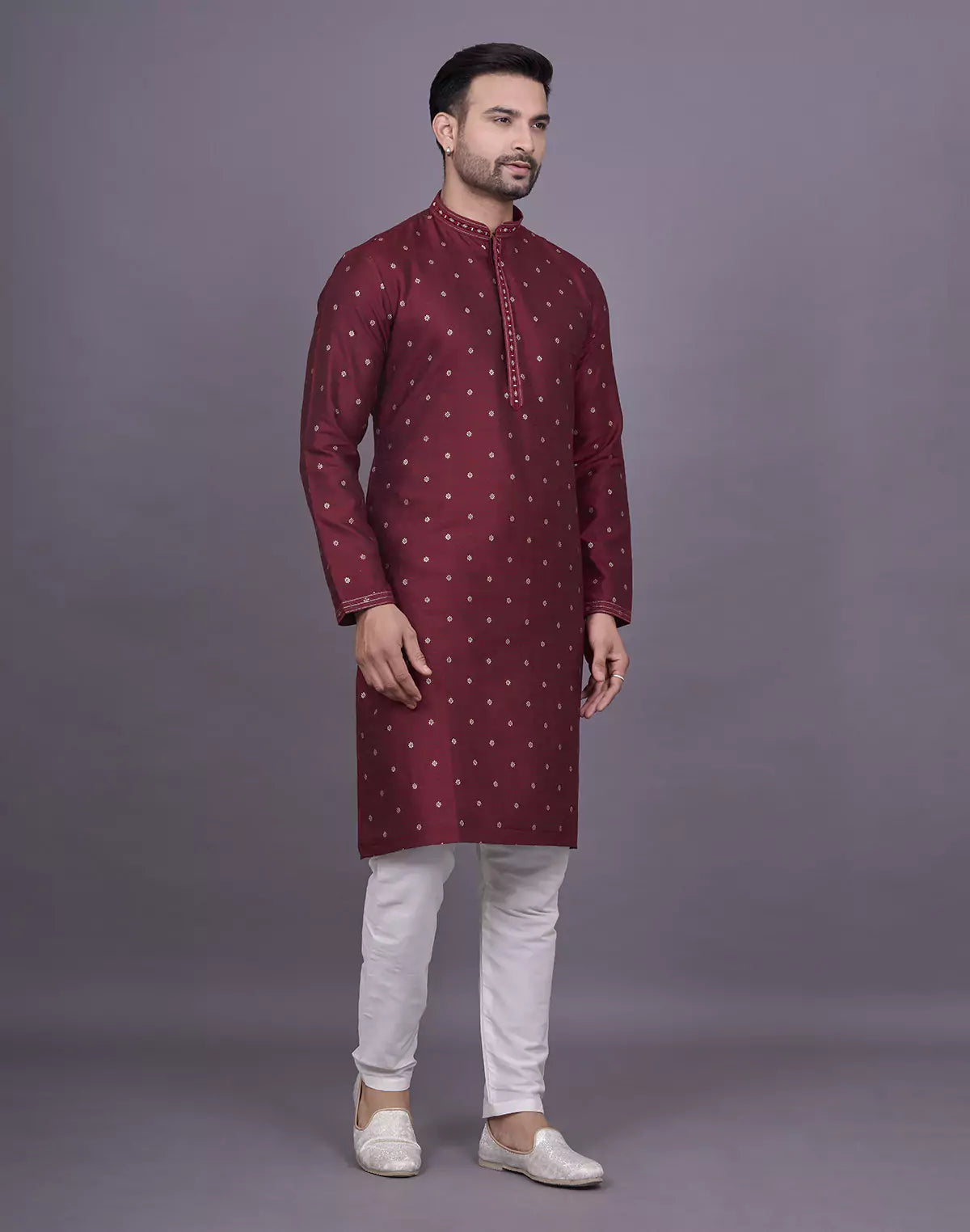 Maroon Self Design with Butta's Jacquard Kurta Set