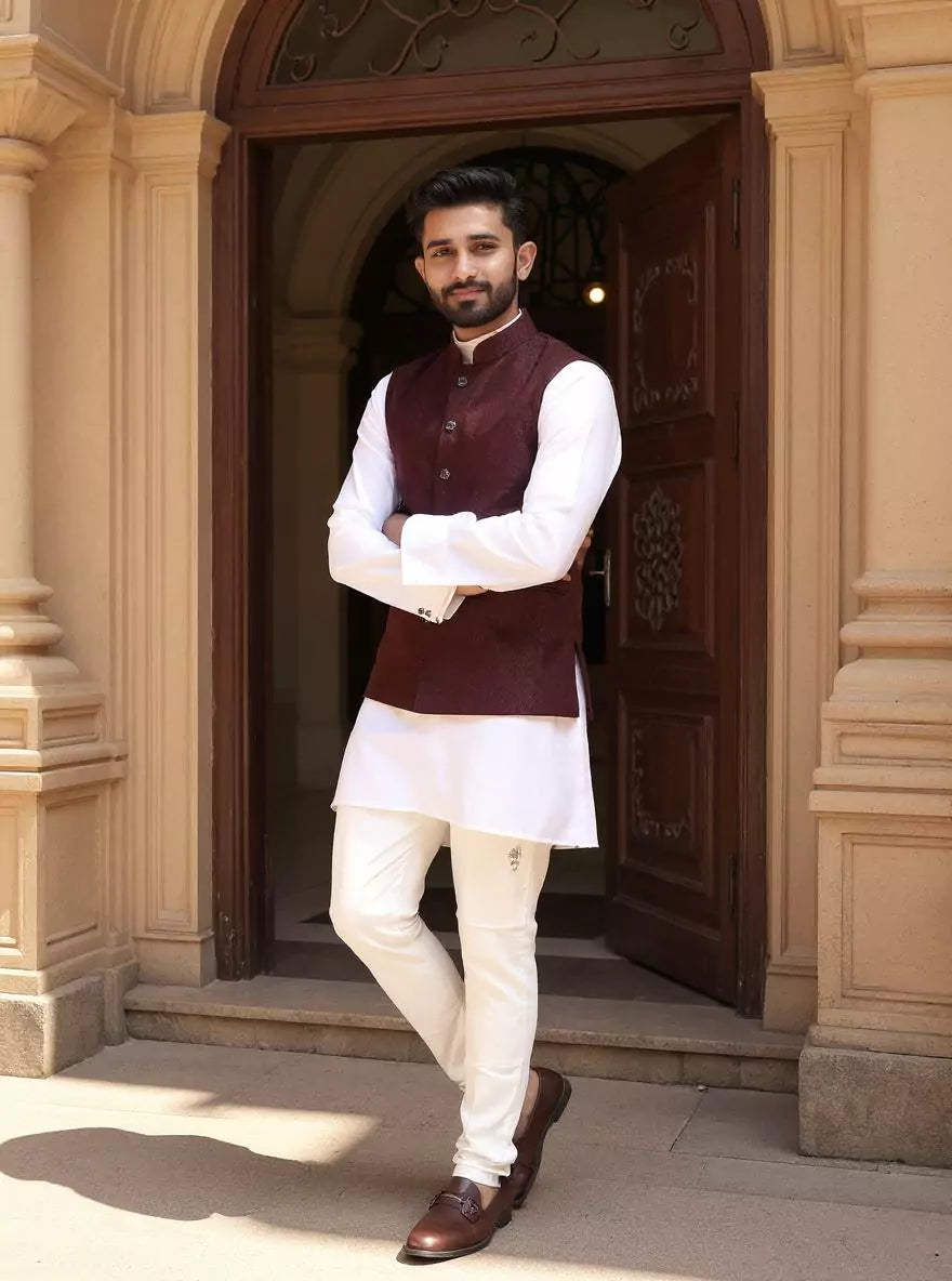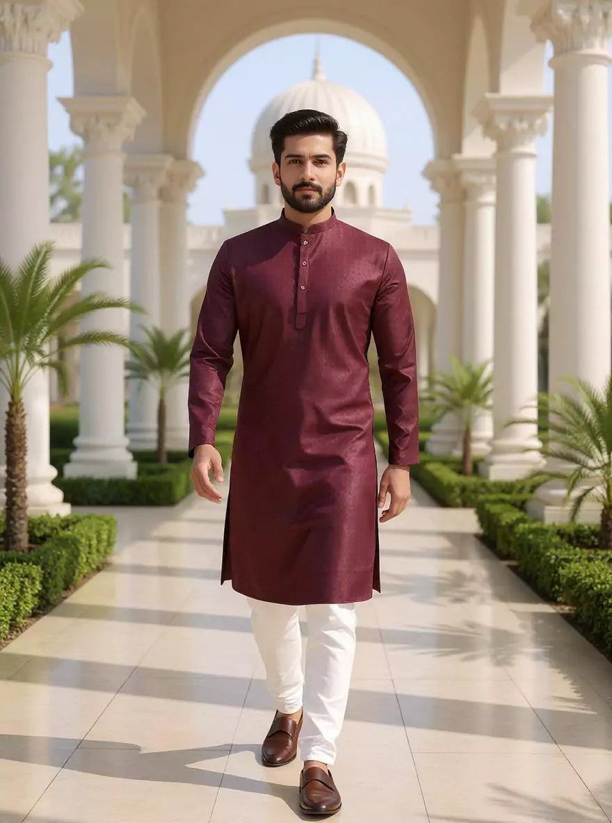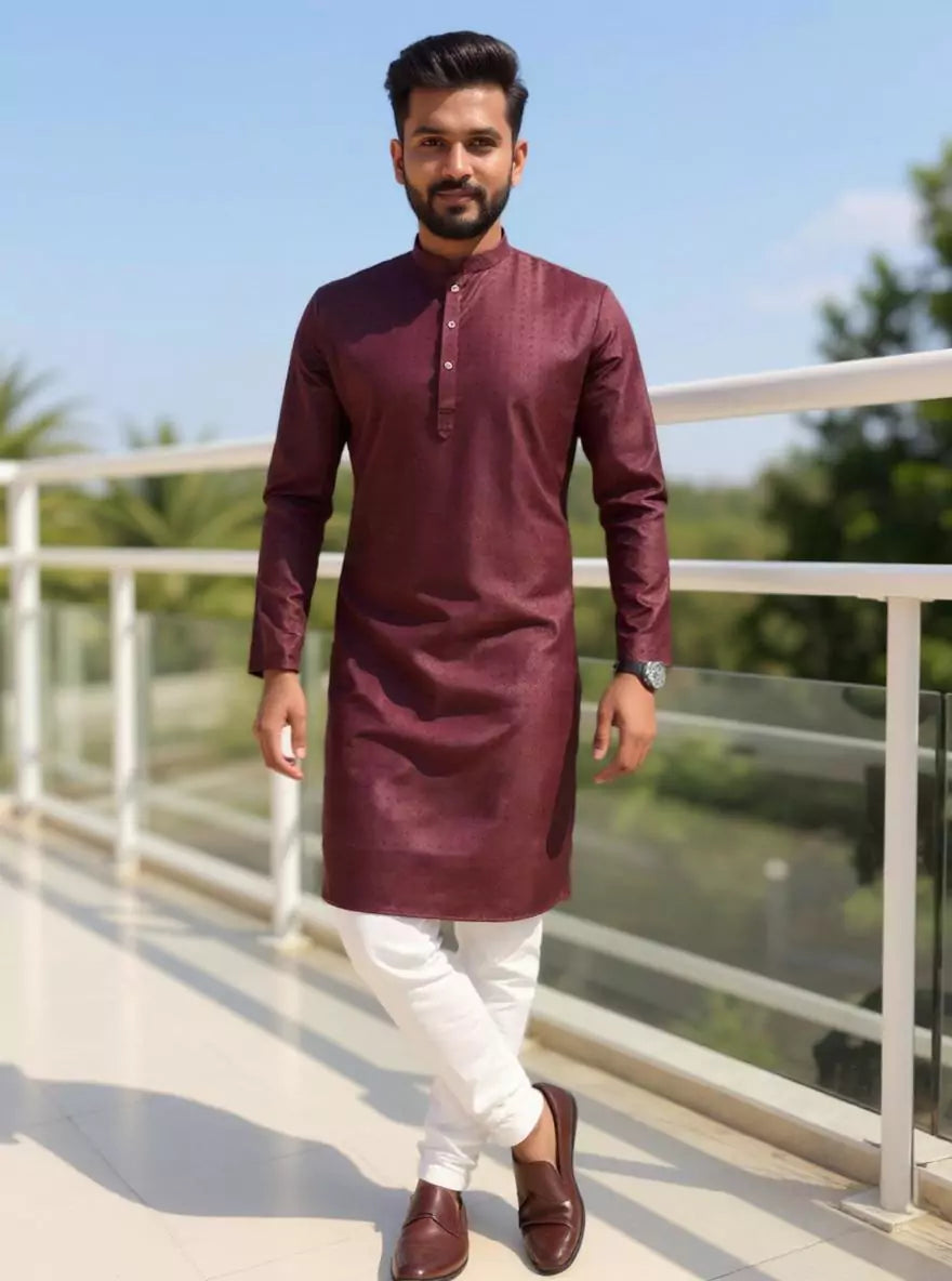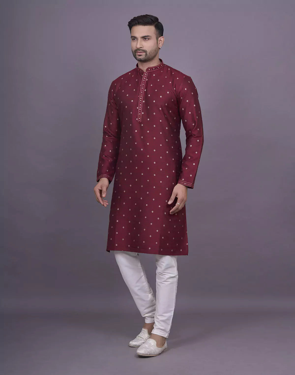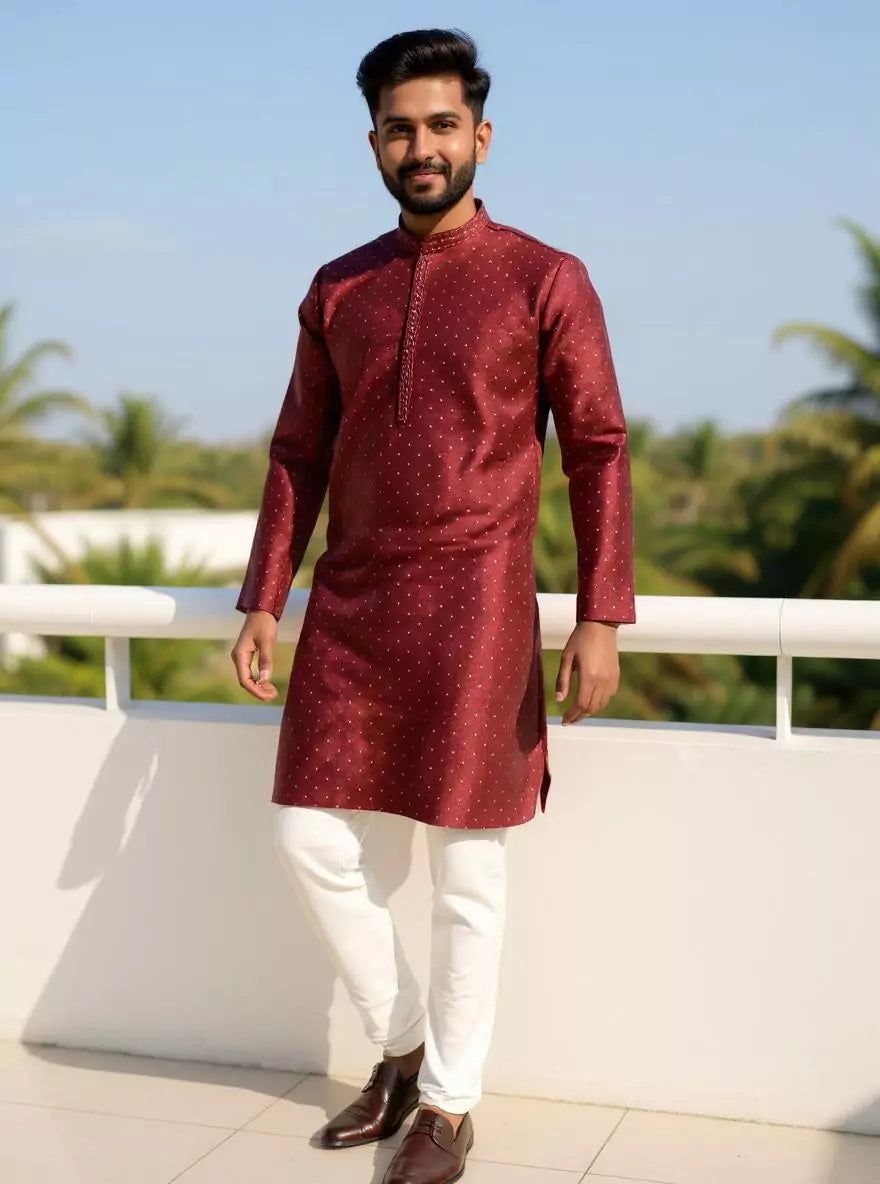 Maroon Self Design with Butta's Jacquard Kurta Set