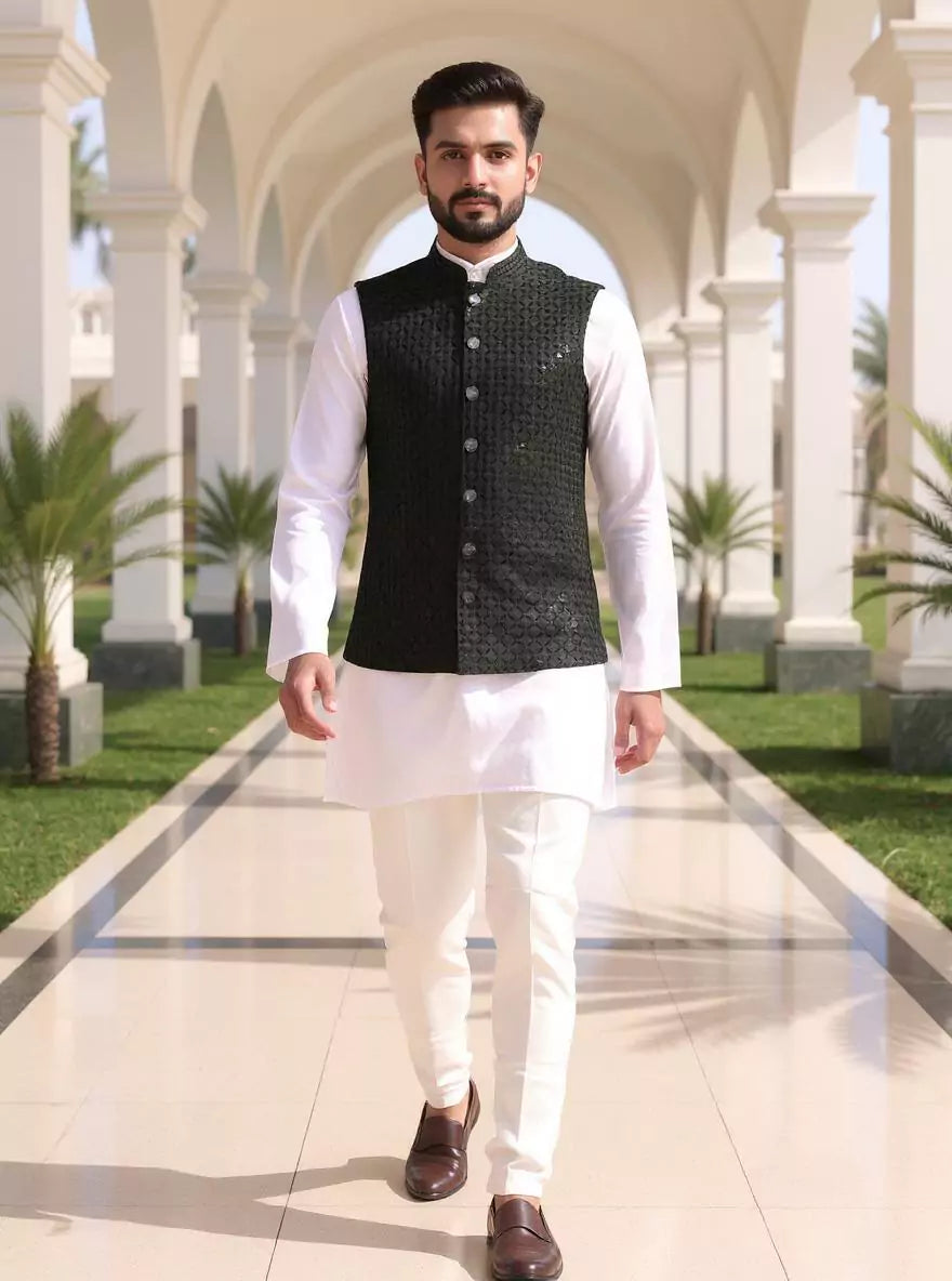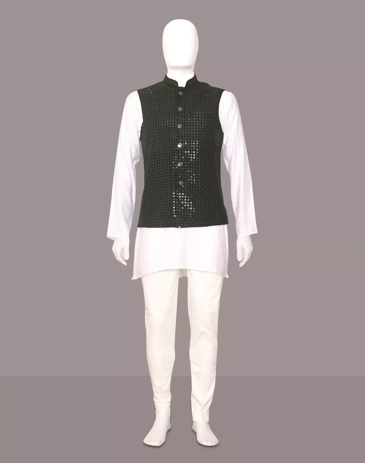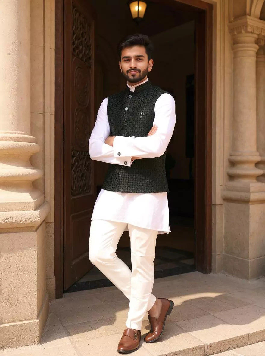 Mehendi Self Design Lucknowi Chikankari work Waist Coat