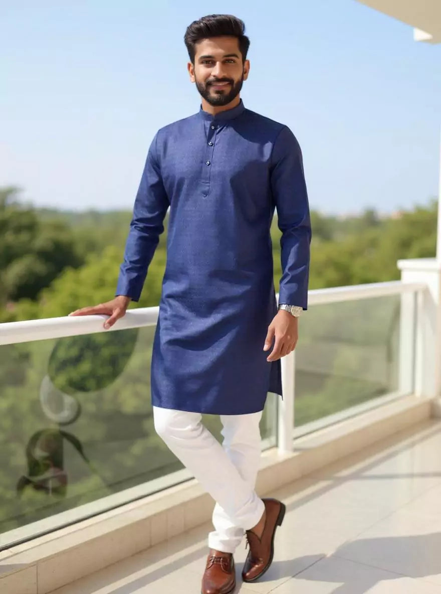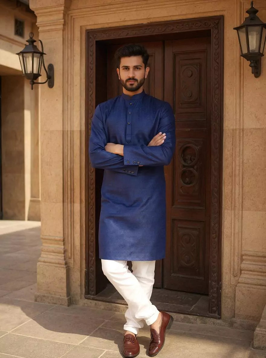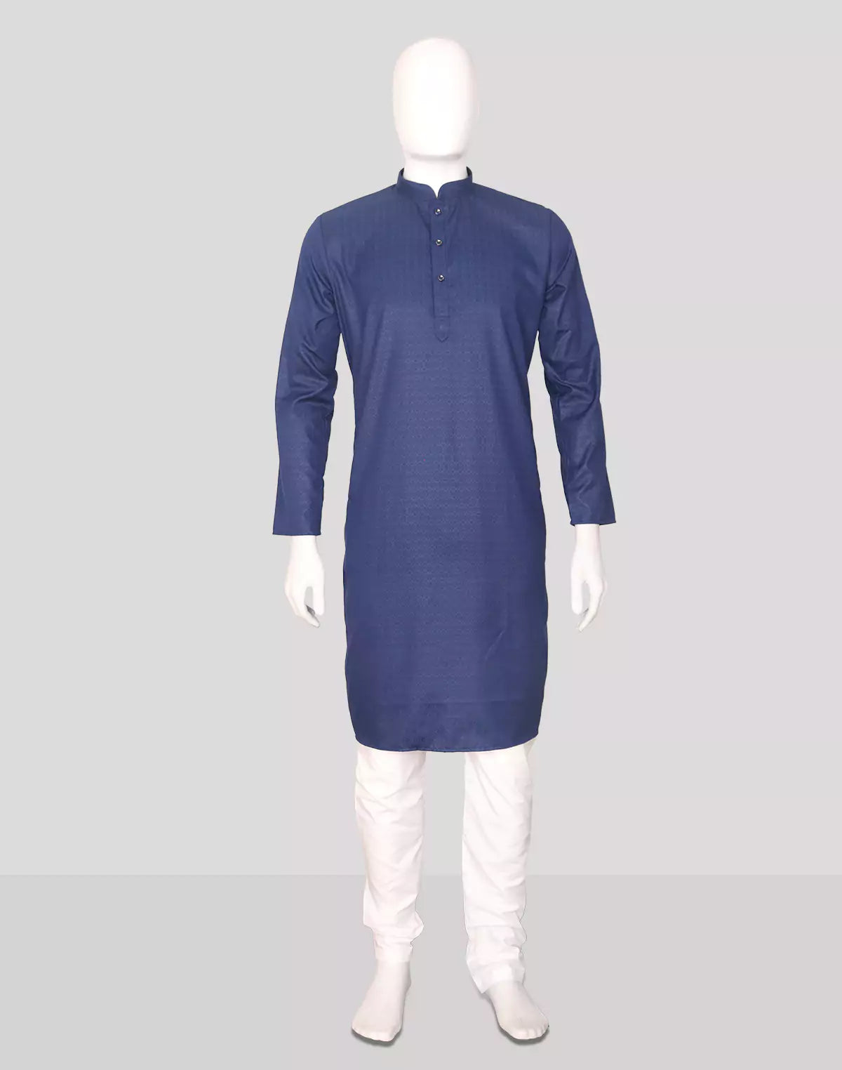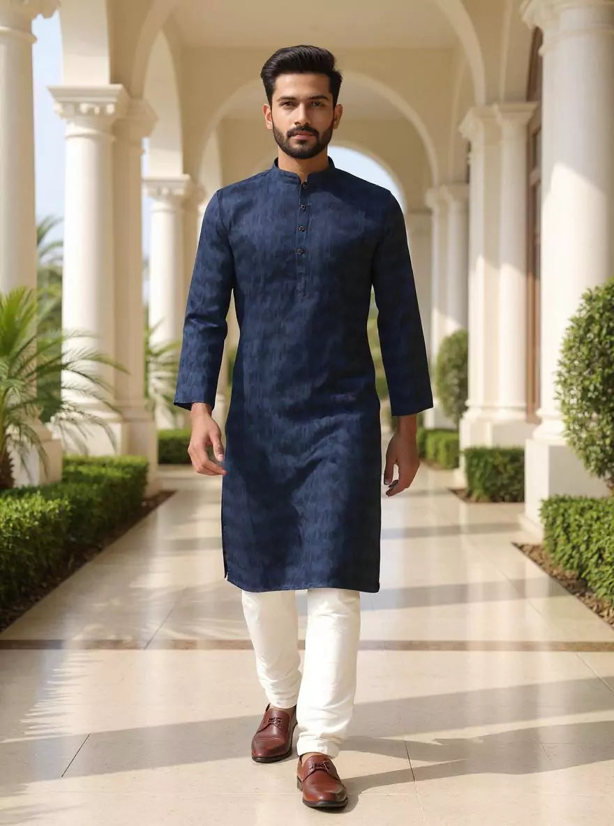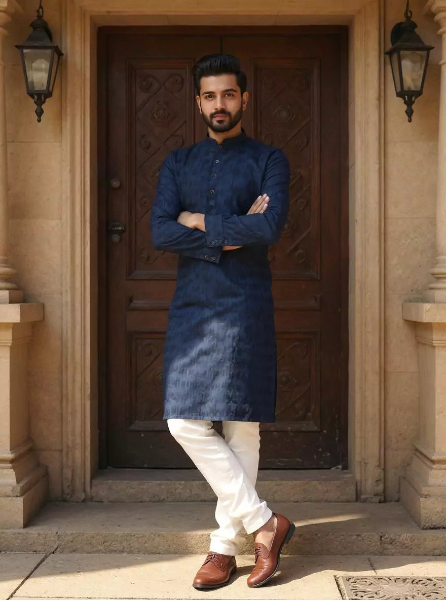 Navy Blue Graphic Weaving Cotton Kurta Pajama