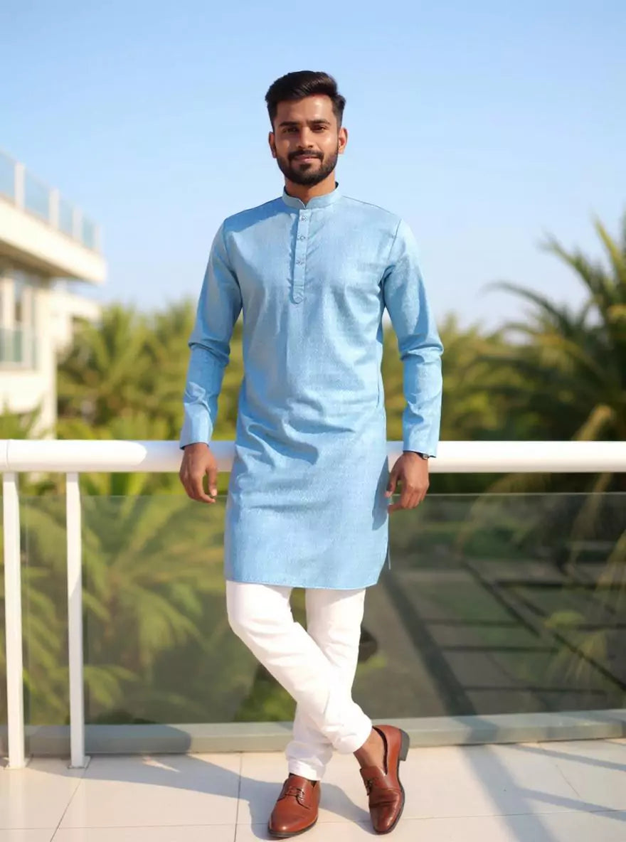 Men's Self Weaving Design Cotton Kurta Pajama Set