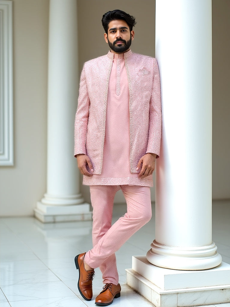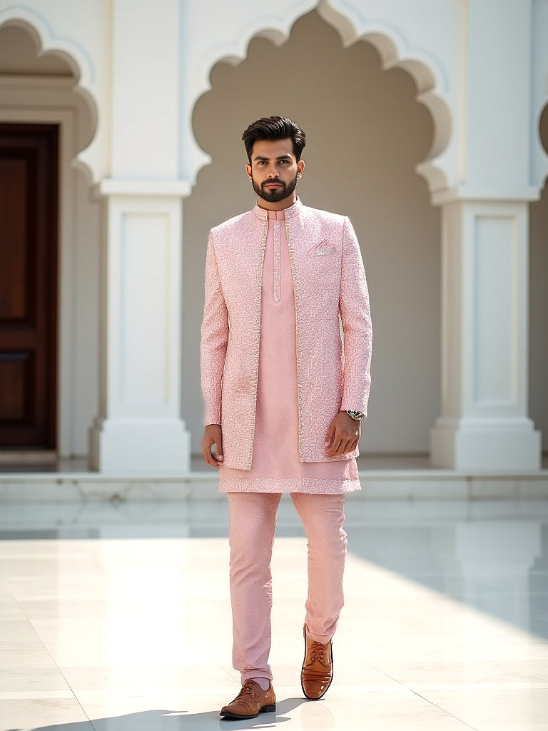 Onion Jacquard With Sequence Work Sherwani Set