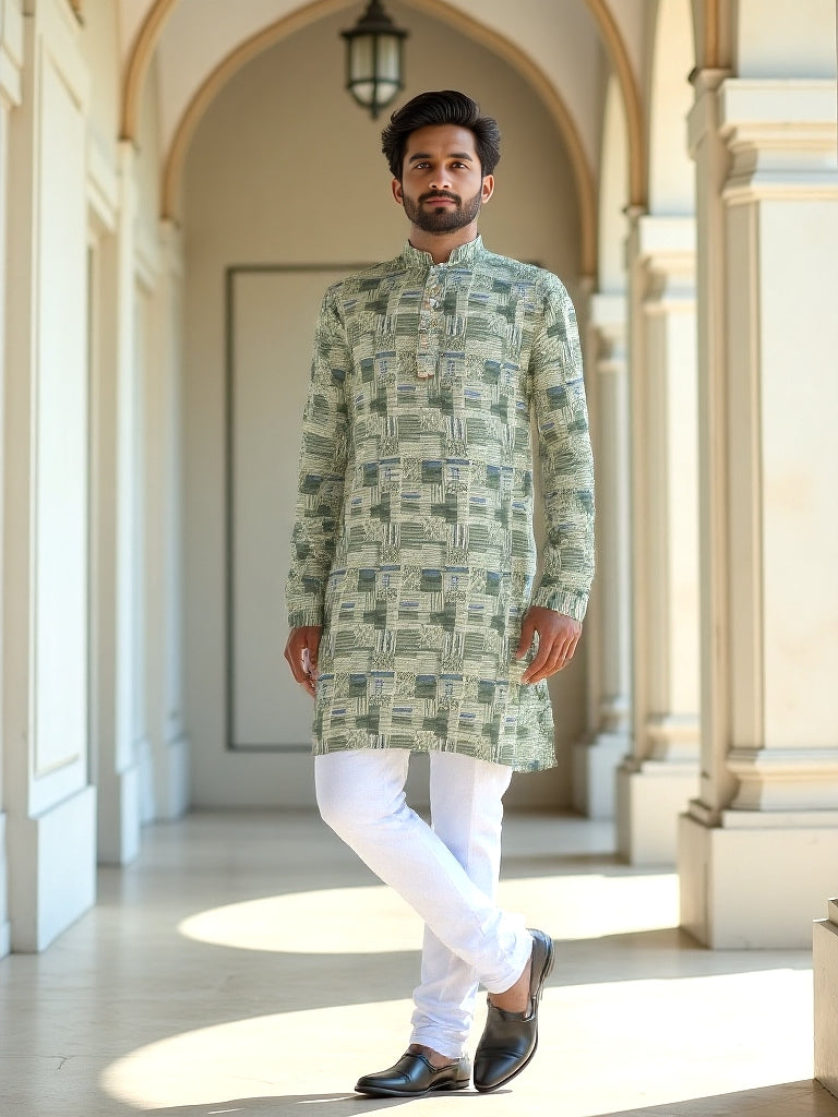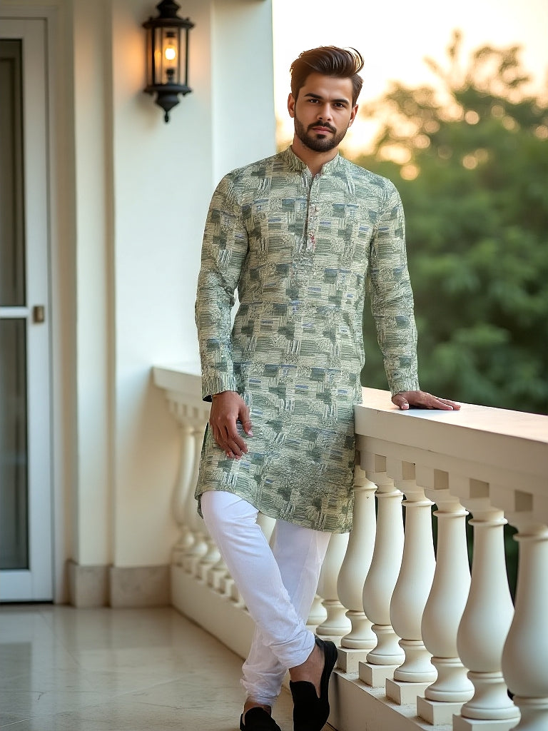 Pastel Green Graphic Print Cotton Silk Kurta
