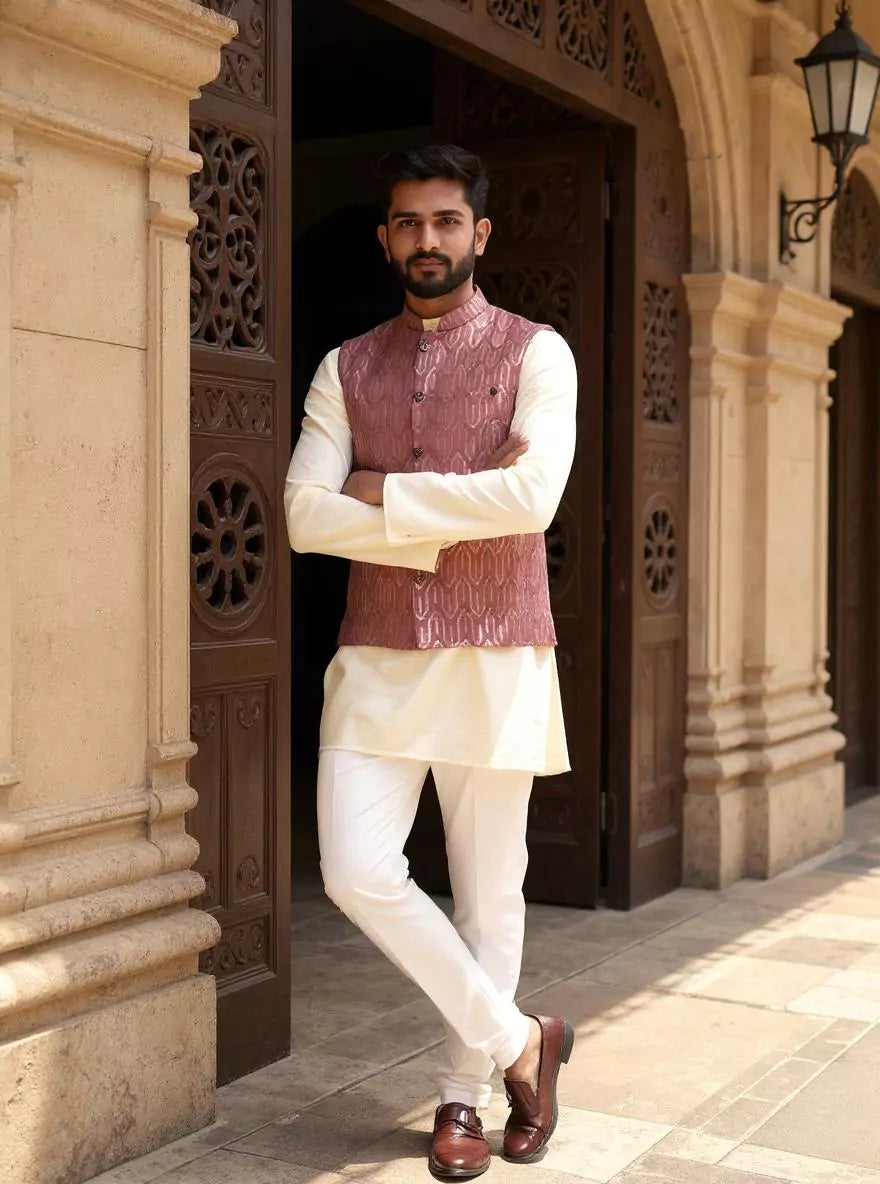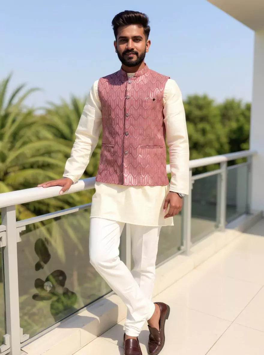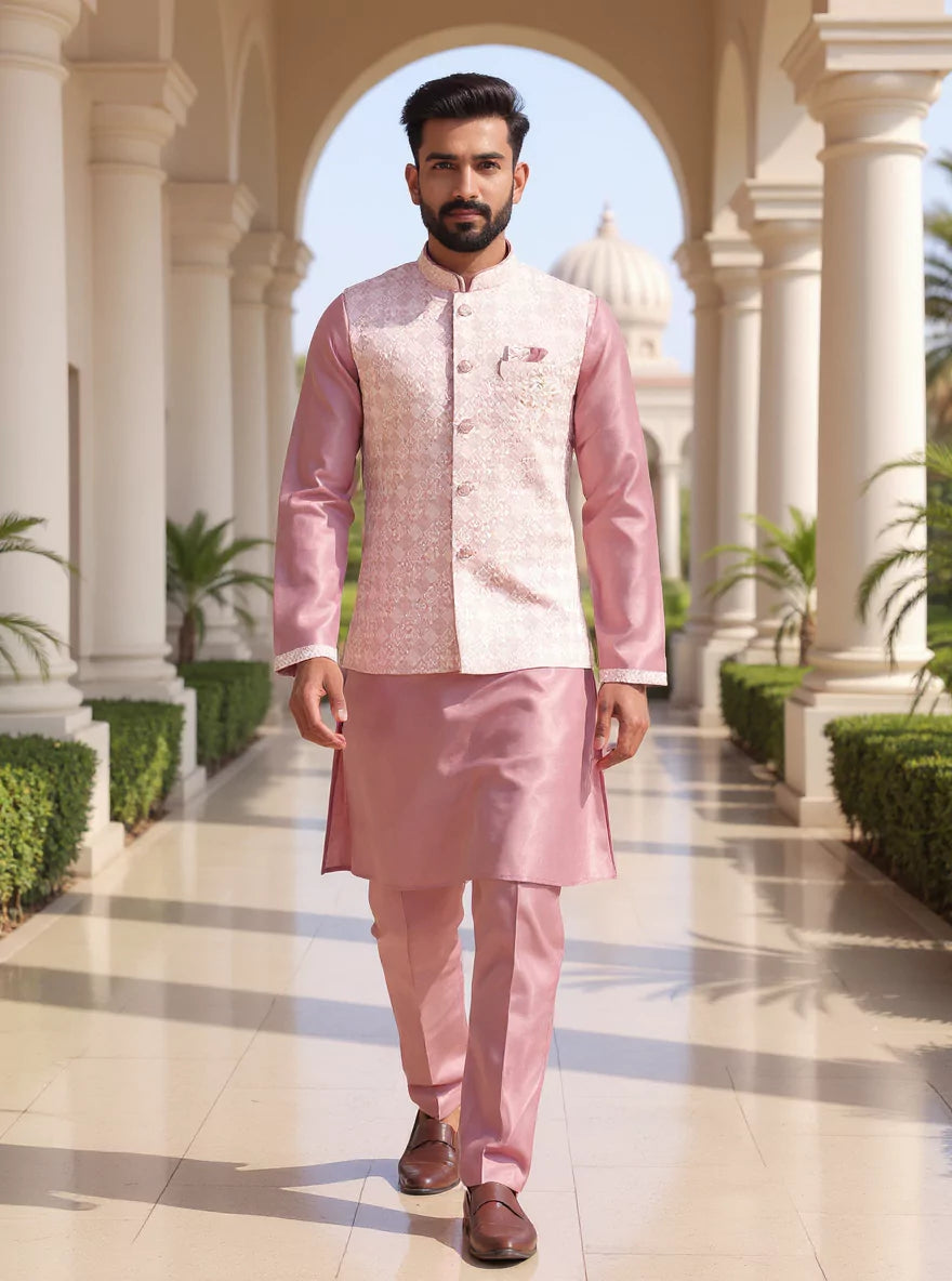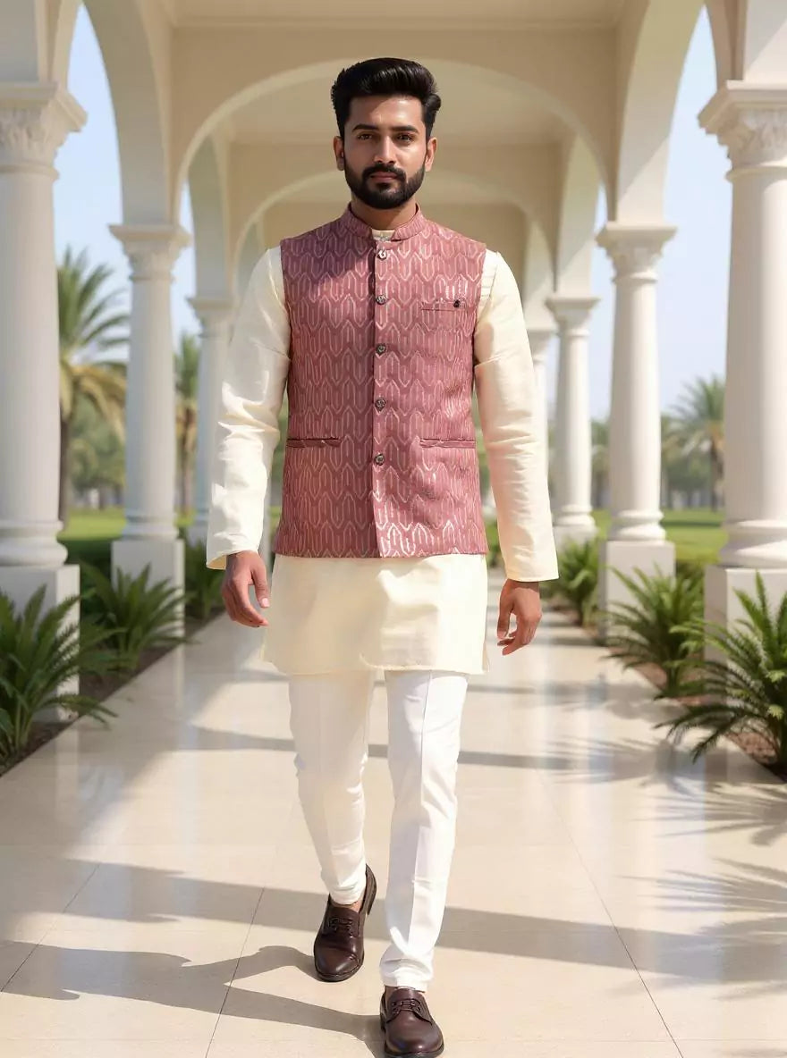Onion Floral Weaving Jacquard Kurta Jacket Set