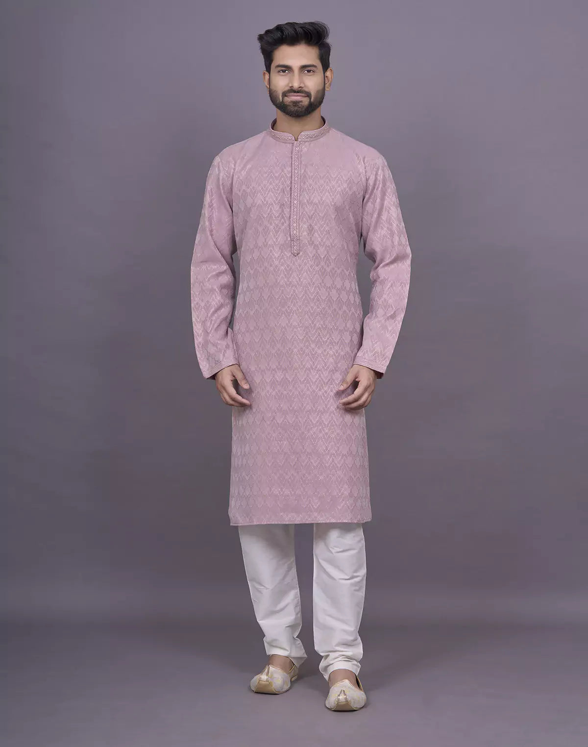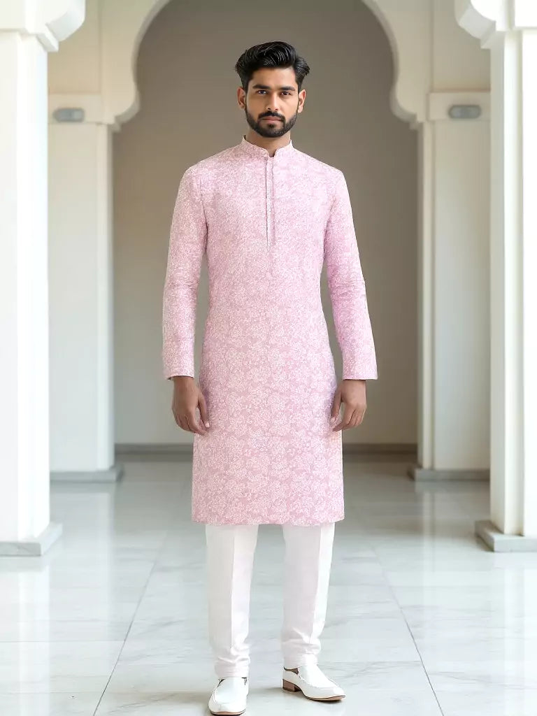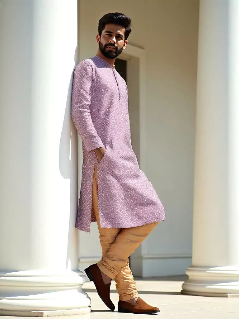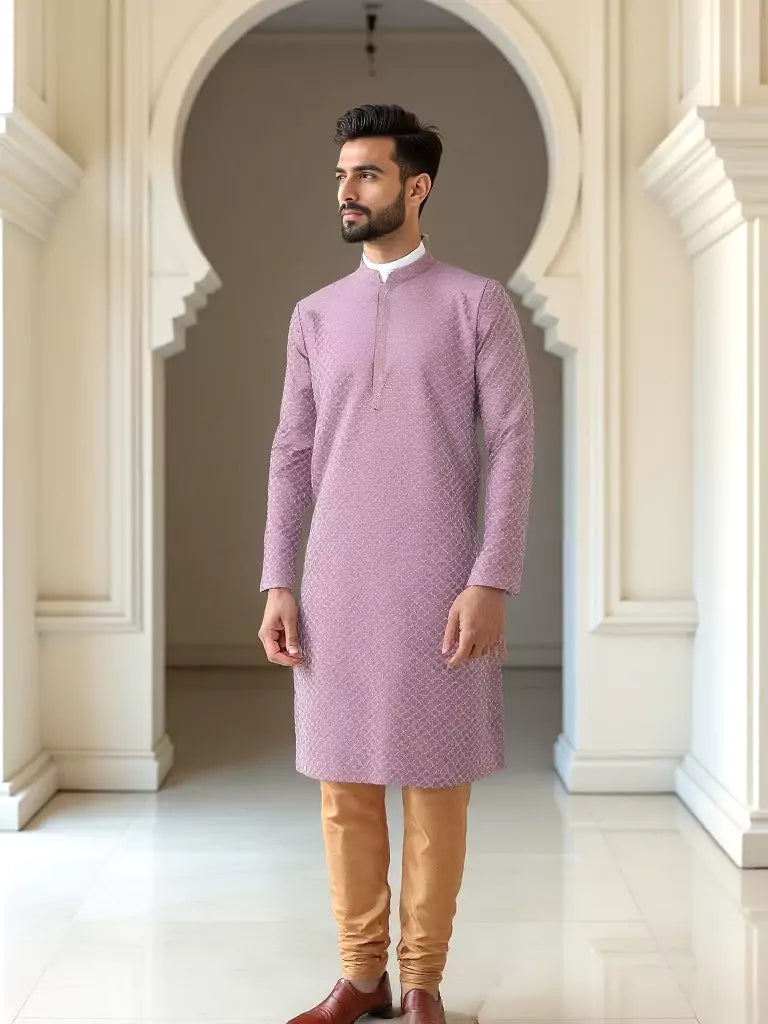 Onion Colour Self Brocade Thread work Jacquard Kurta Set