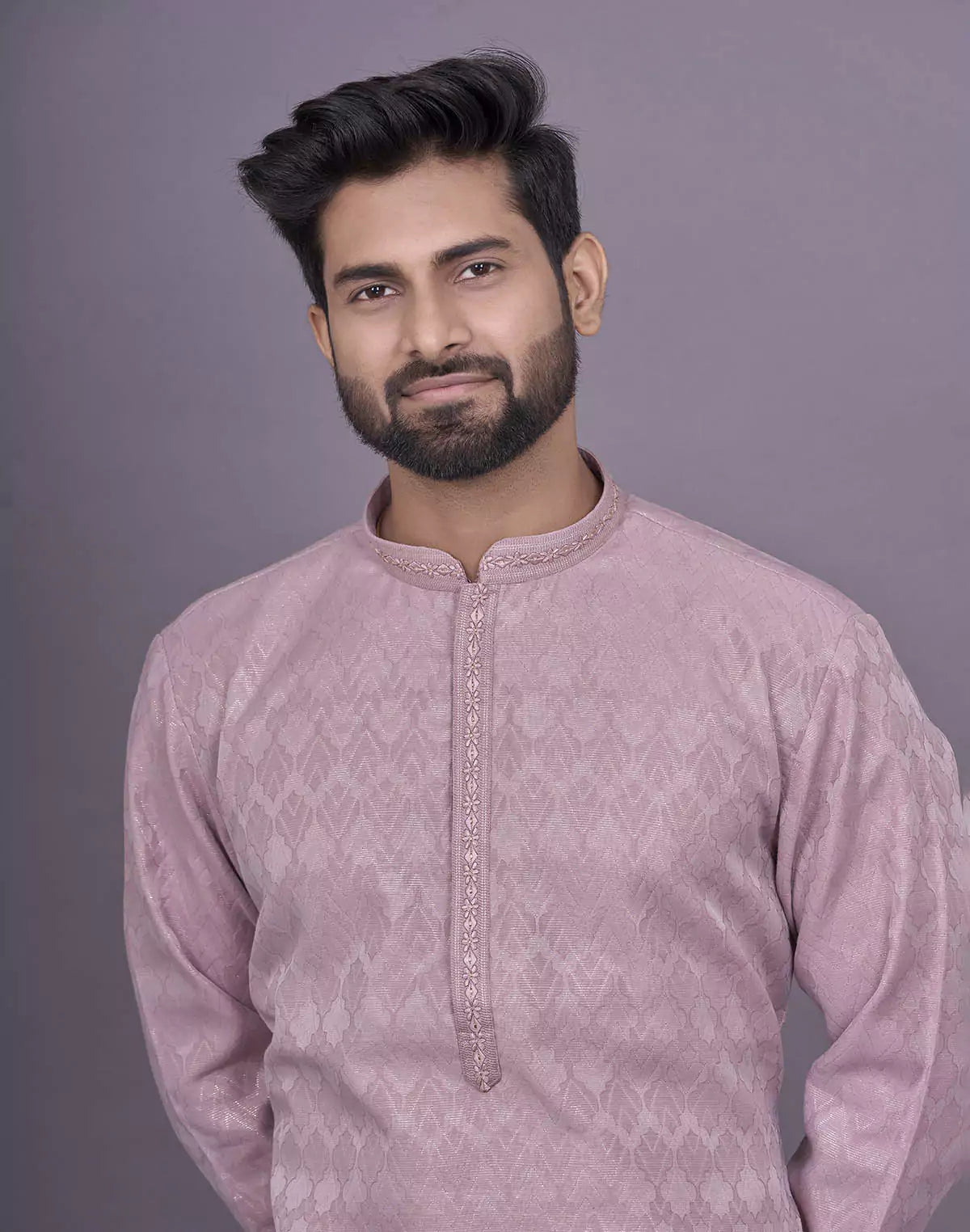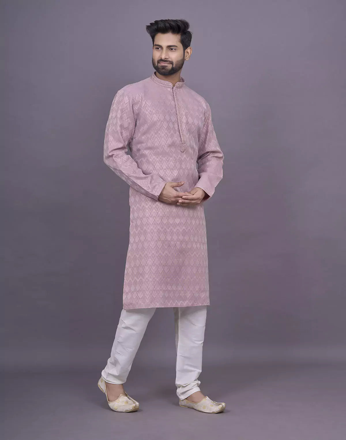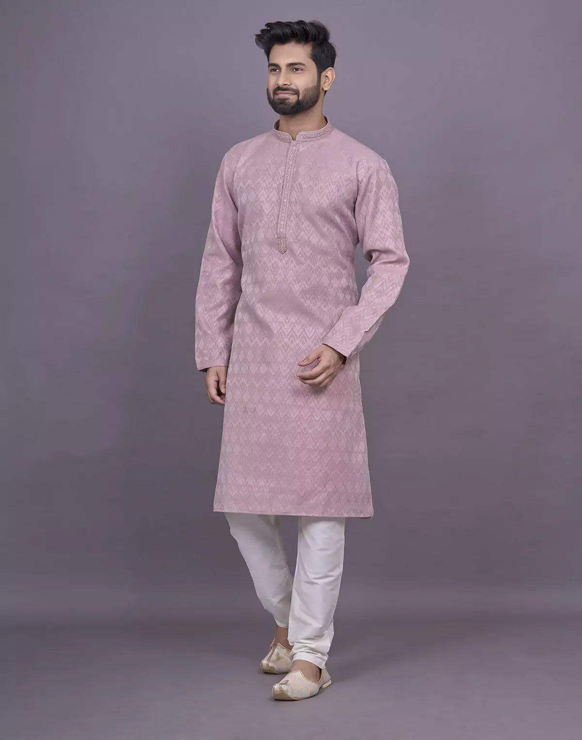 Onion Colour Self Brocade Thread work Jacquard Kurta Set