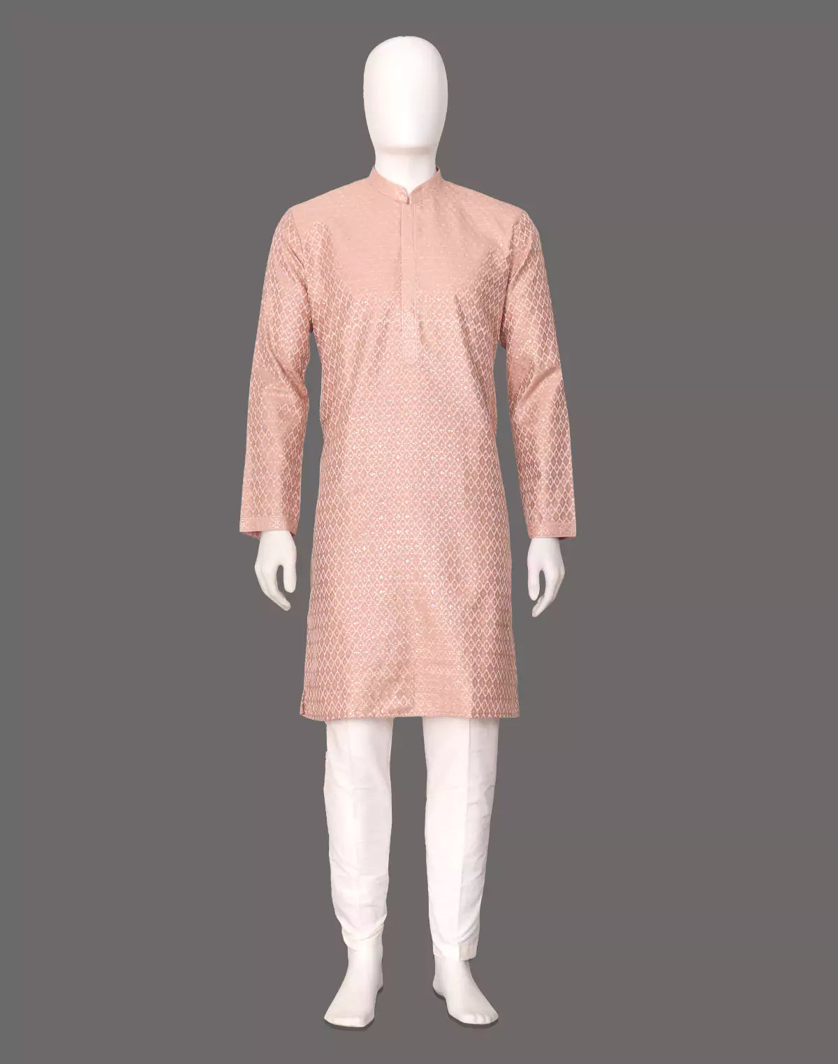 Peach Self Patterned Jacquard Semi-Indo