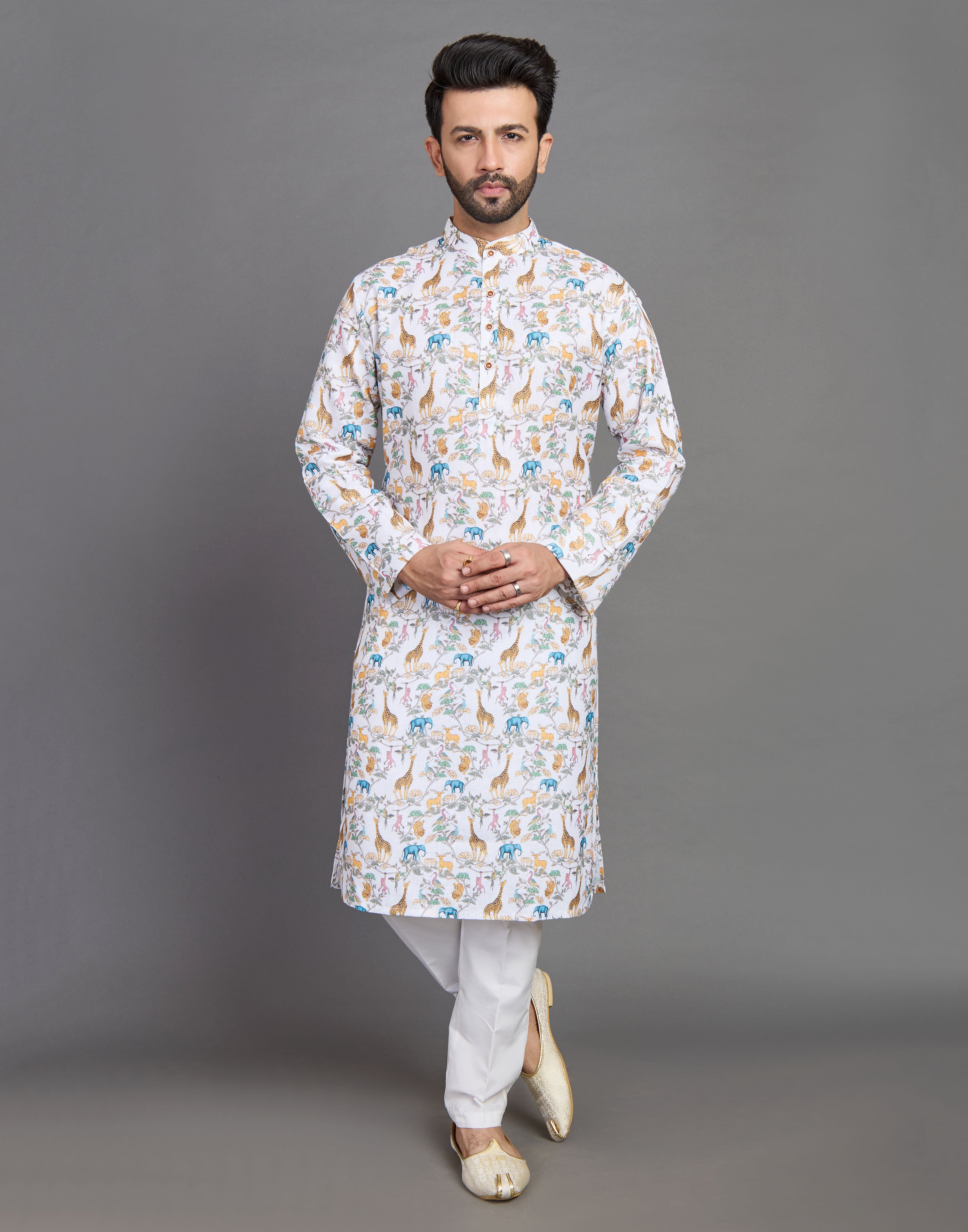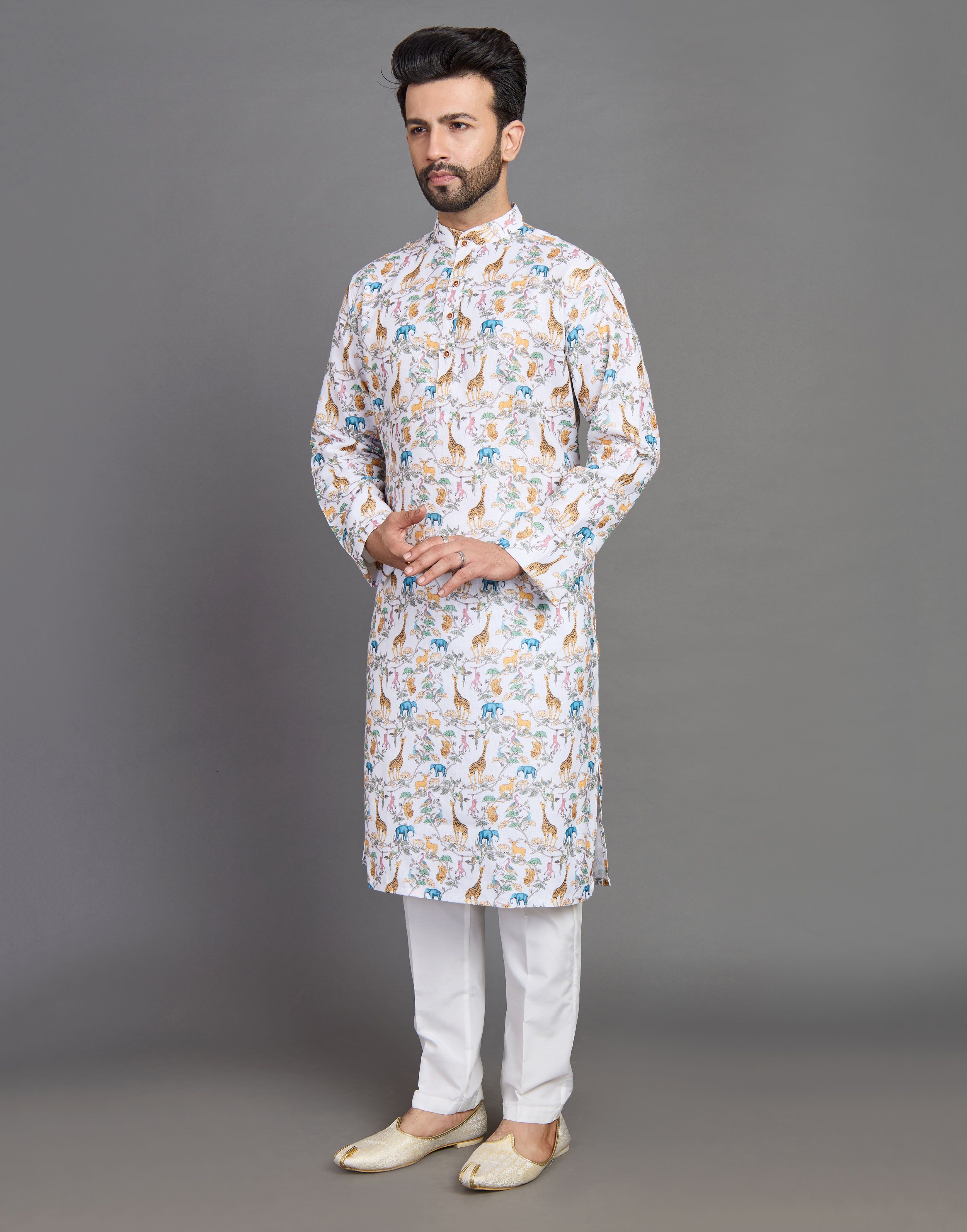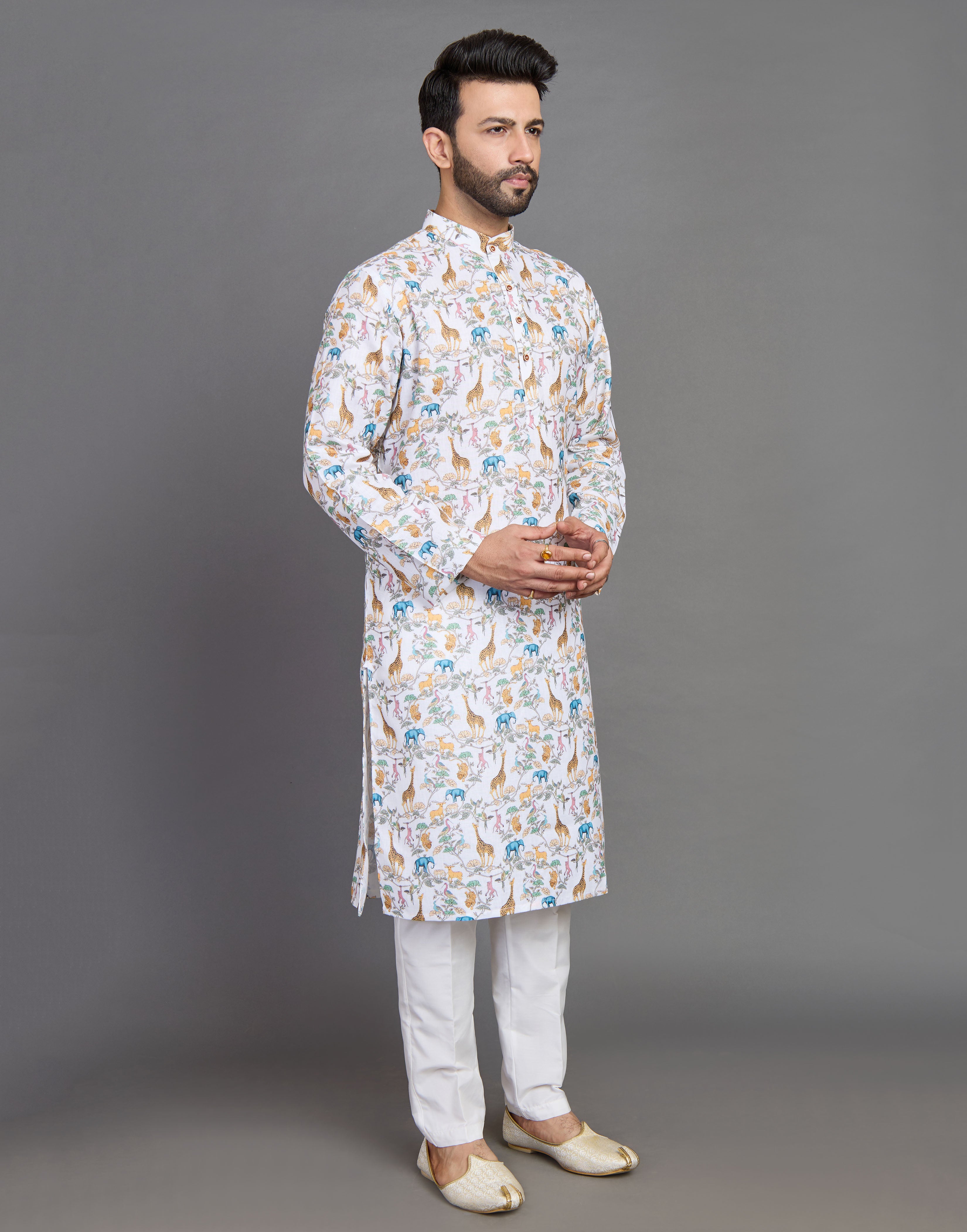 Stylish Digital Print Giza Cotton Kurta Set in Onion