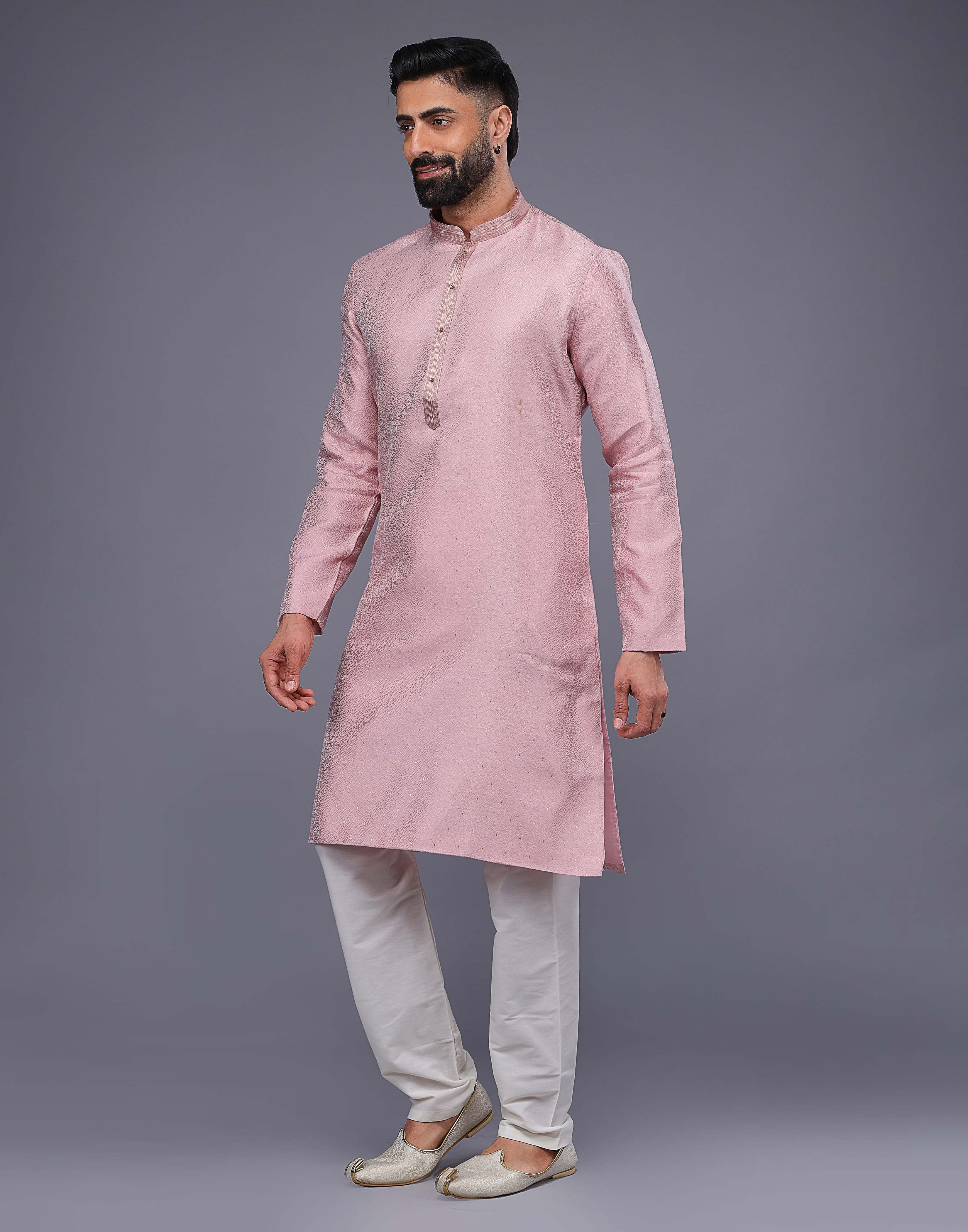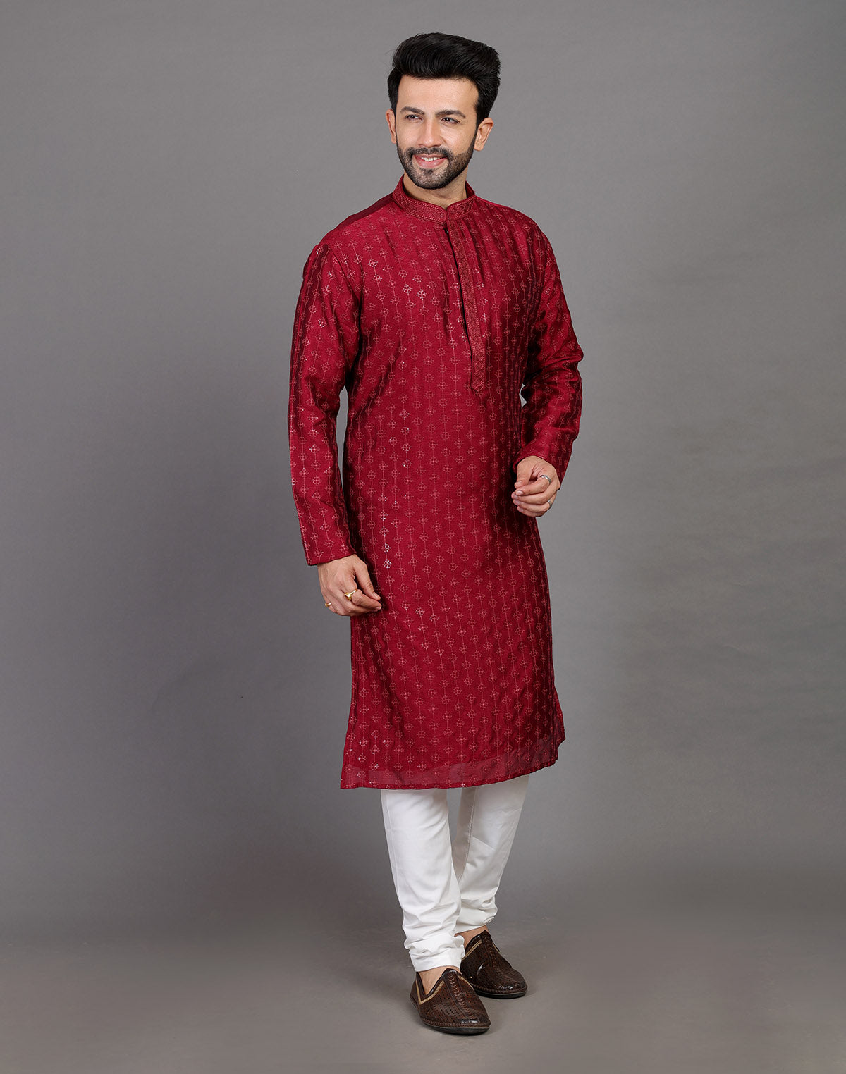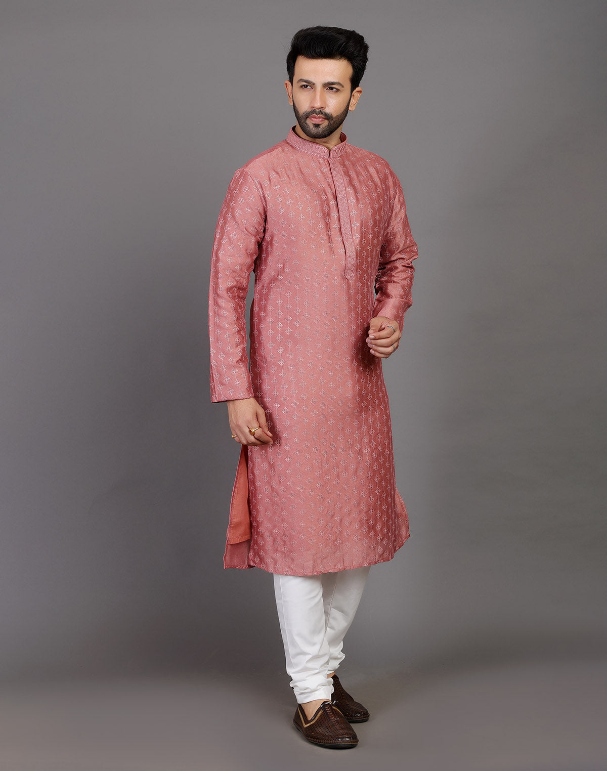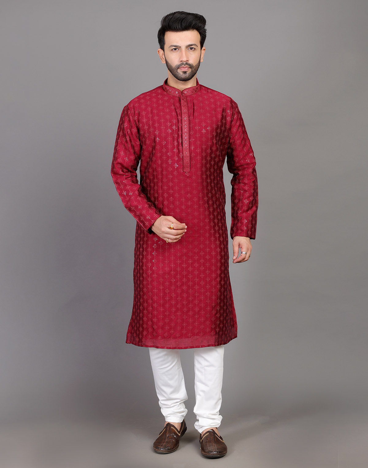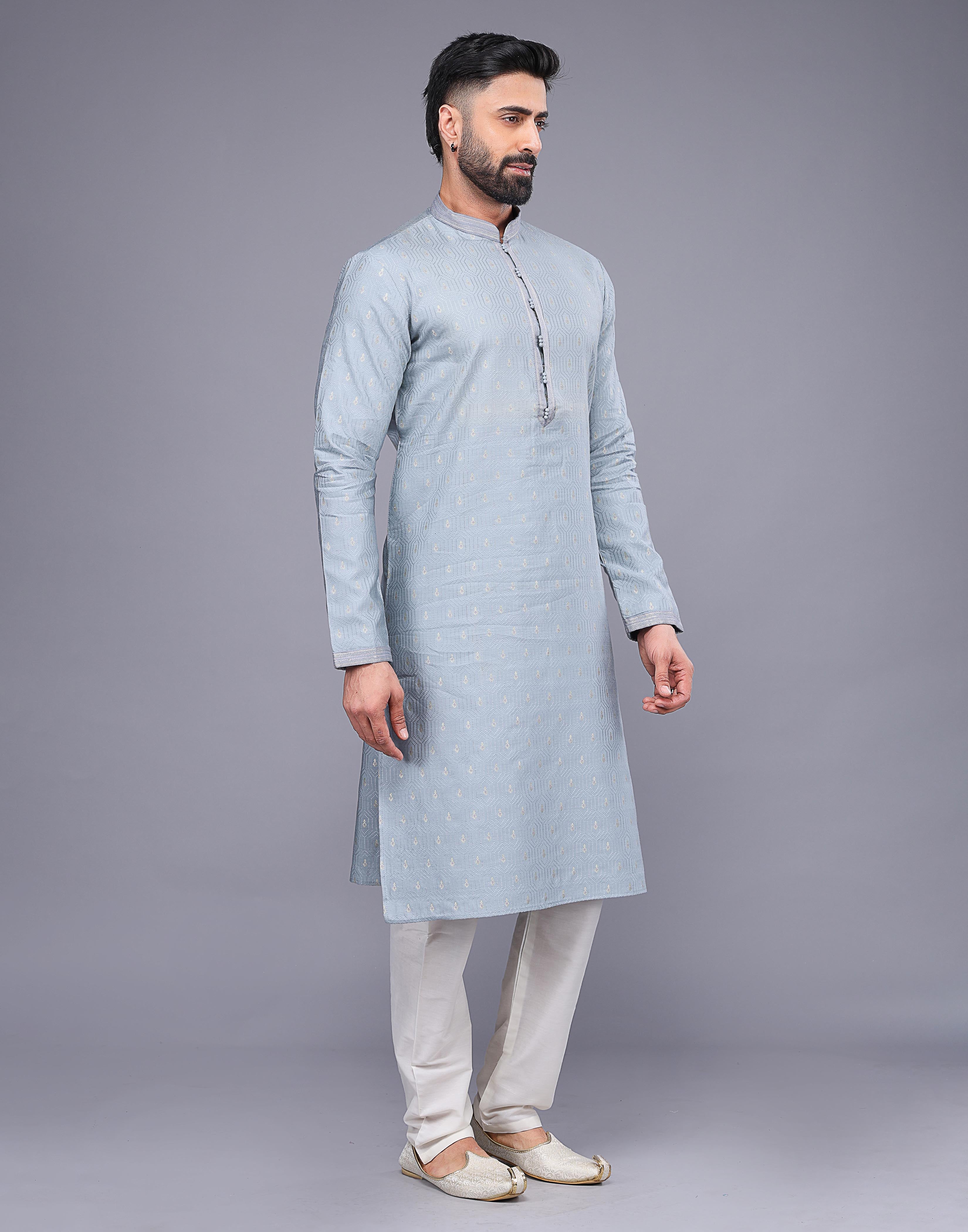 Stylish Small Embroidery Butta Design Soft Silk Kurta Pyjama Set
