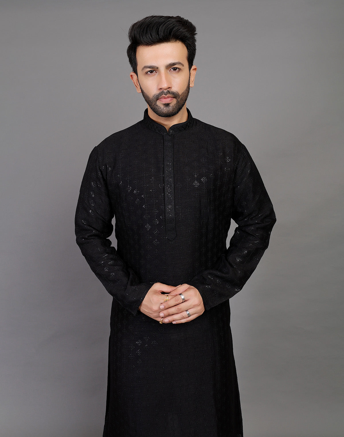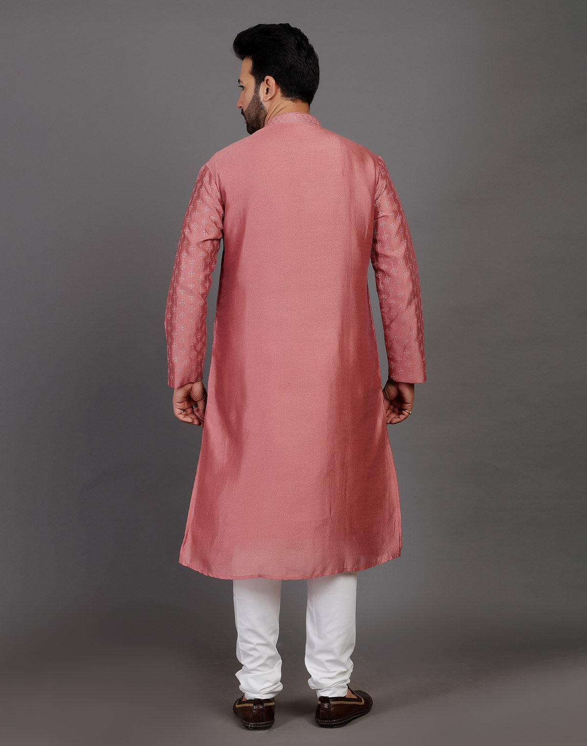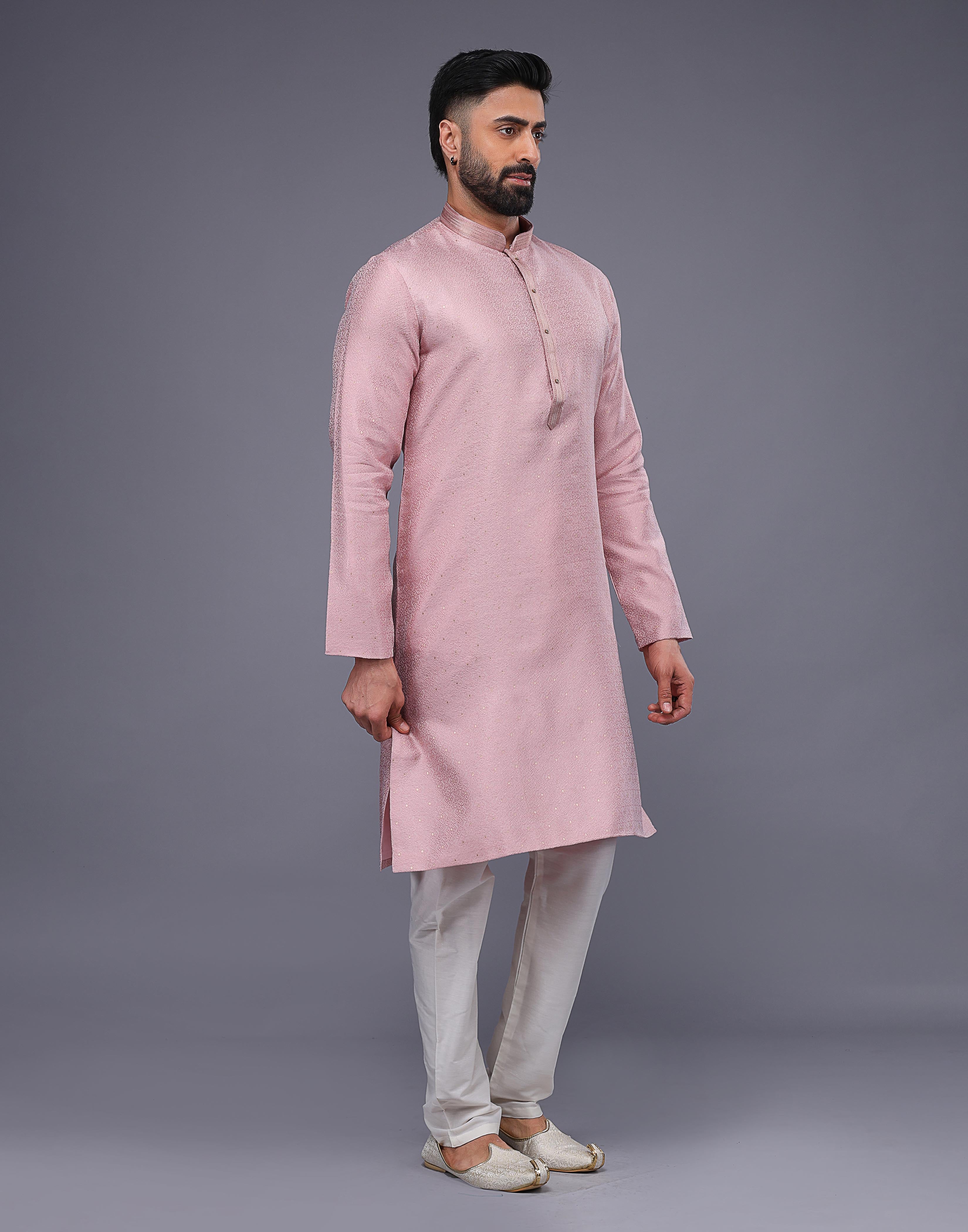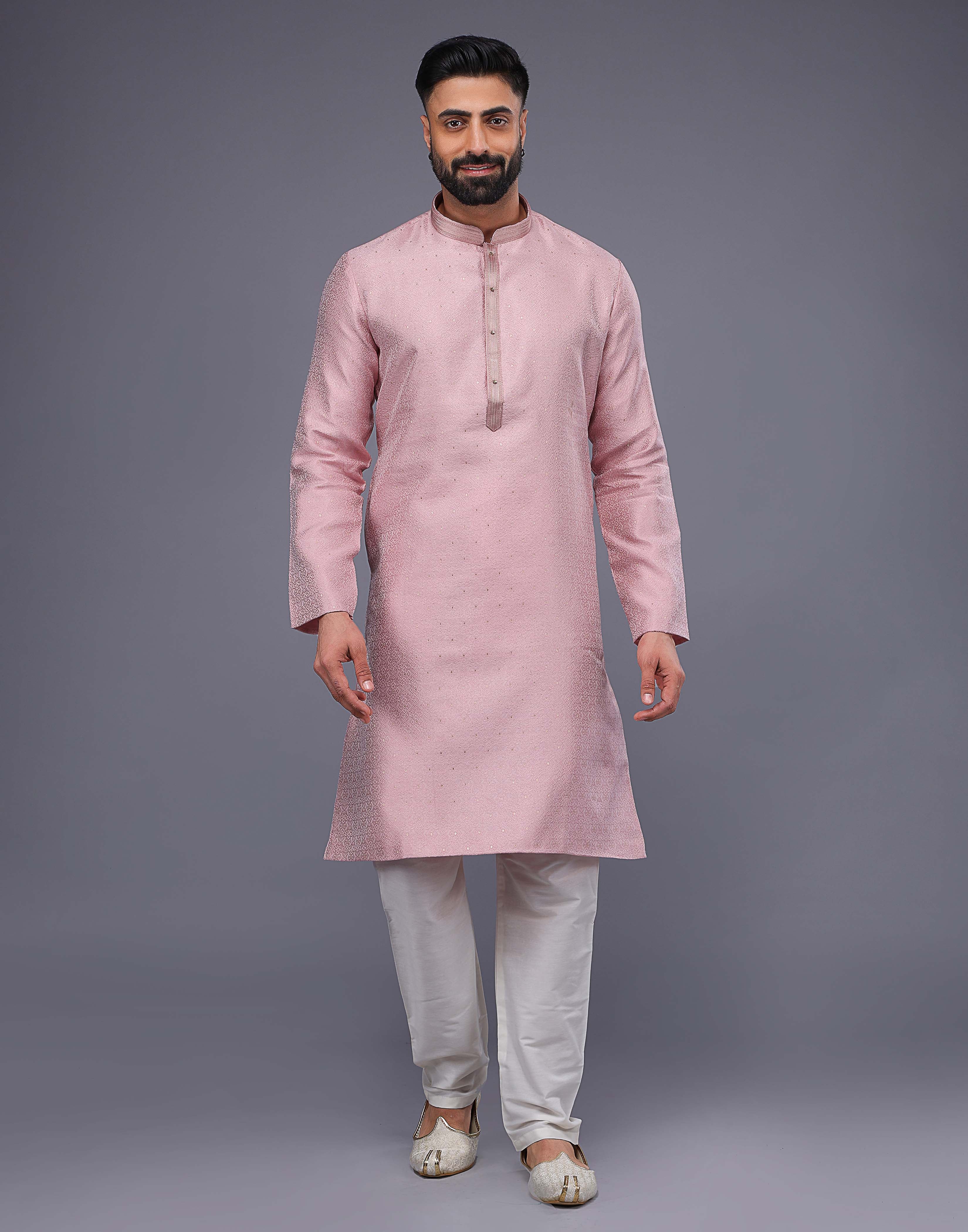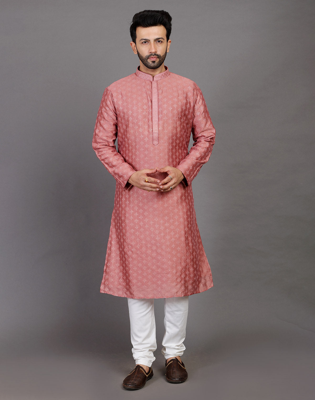 Stylish Small Embroidery Butta Design Soft Silk Kurta Pyjama Set