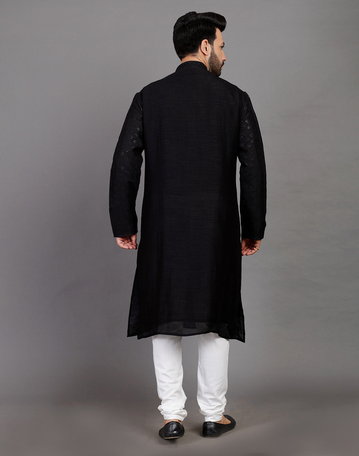 Solid Polynosic Stylish Black 5 Pc Designer Suit