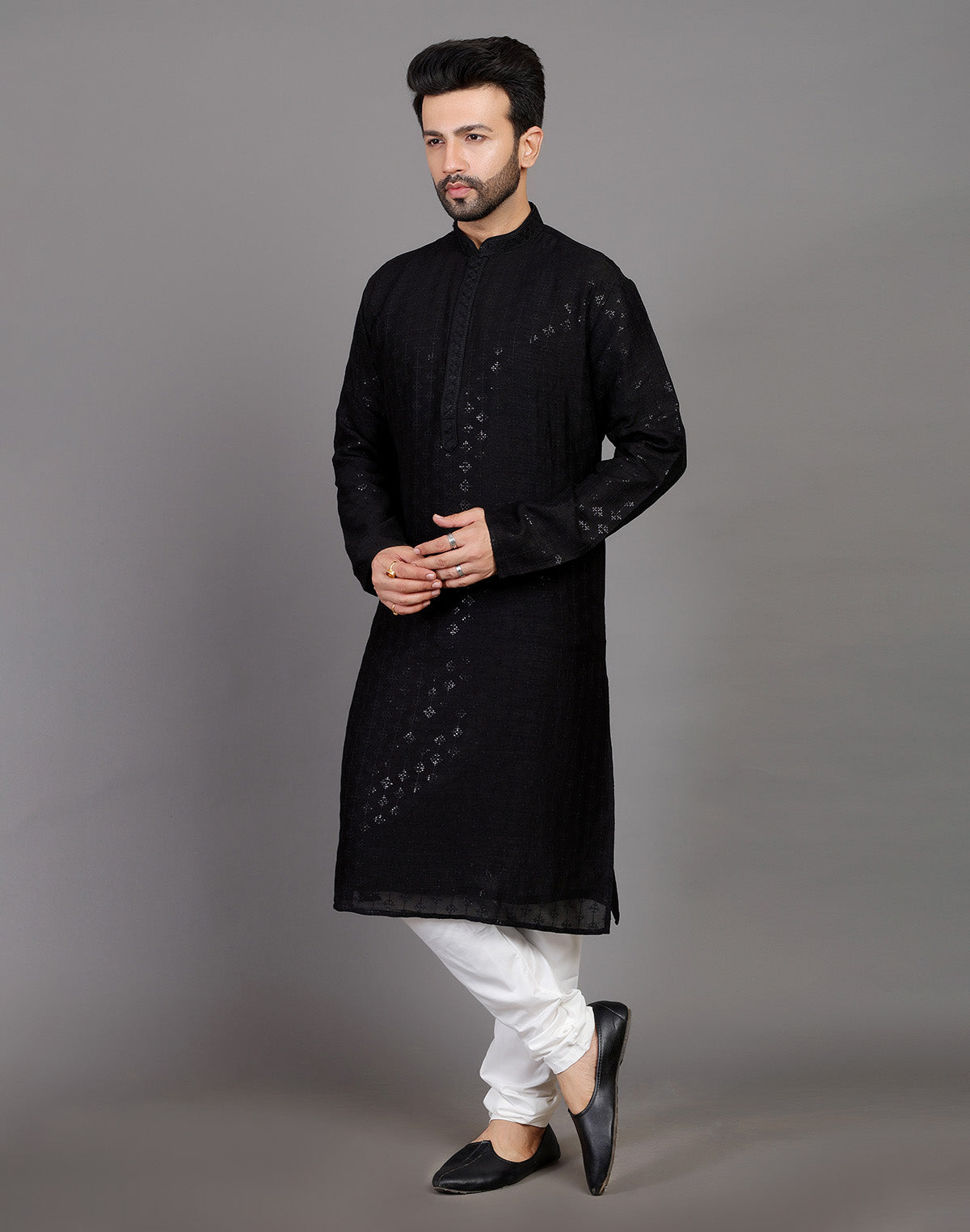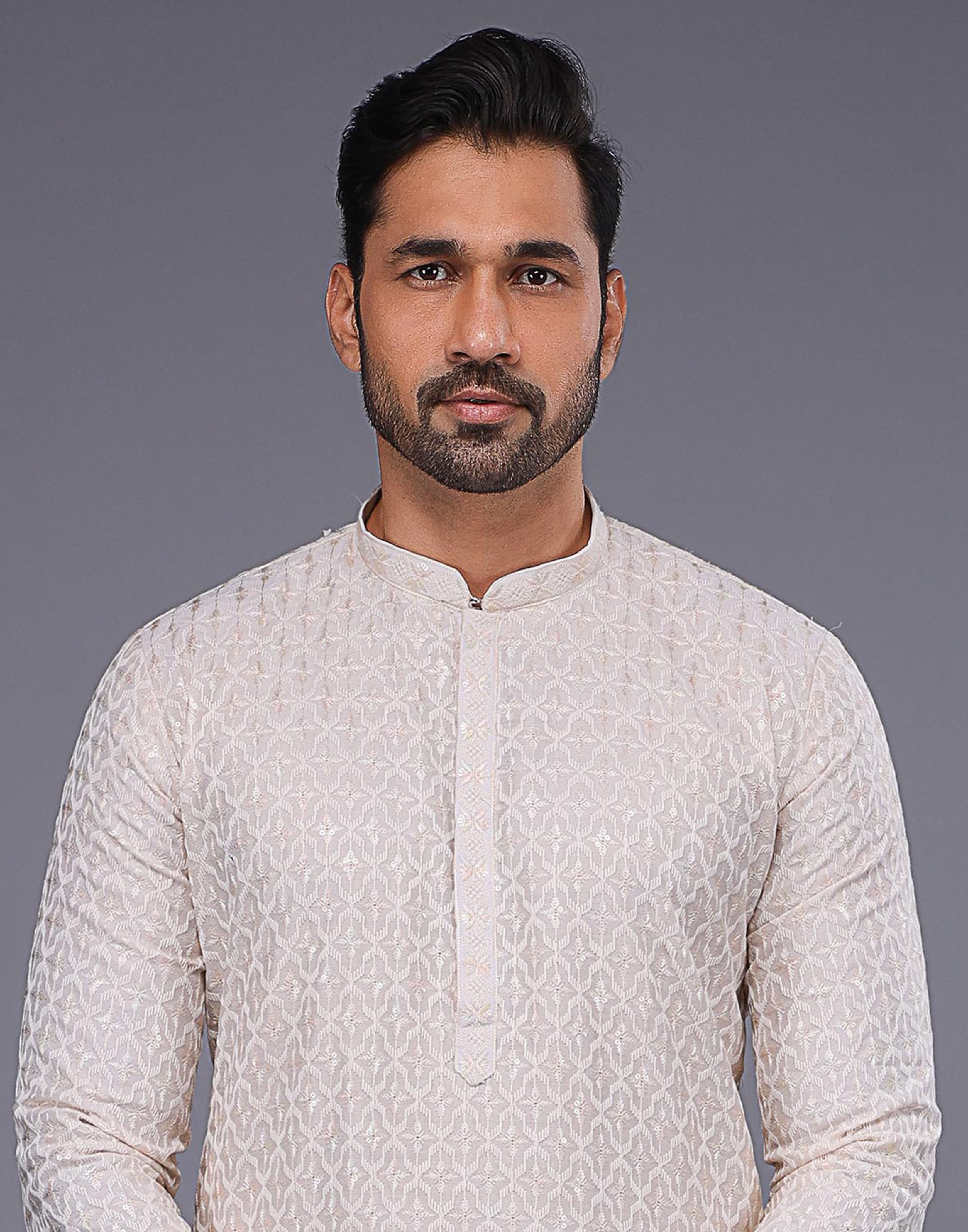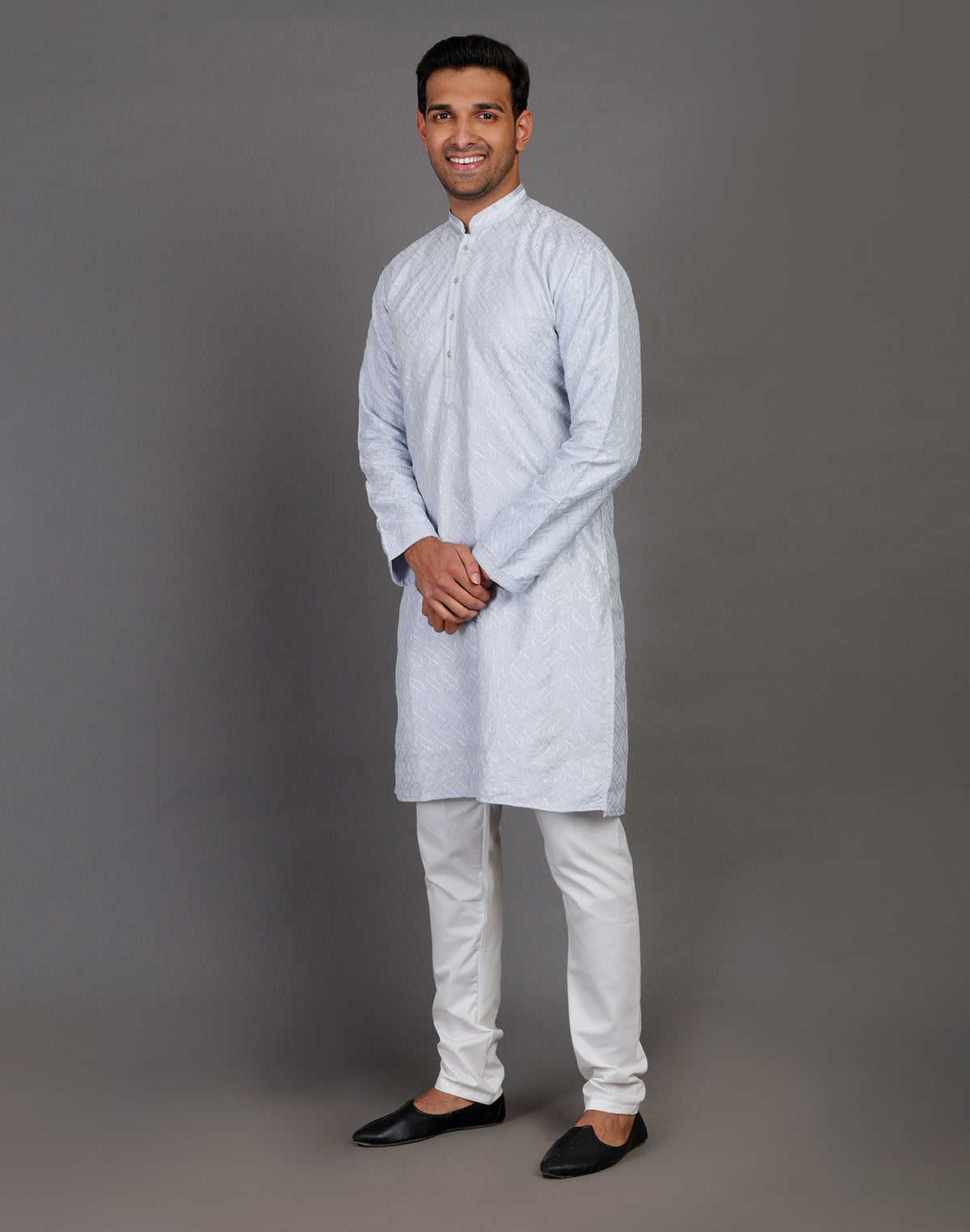 Striped Patterned Cotton Kurta Pajama with Thread work