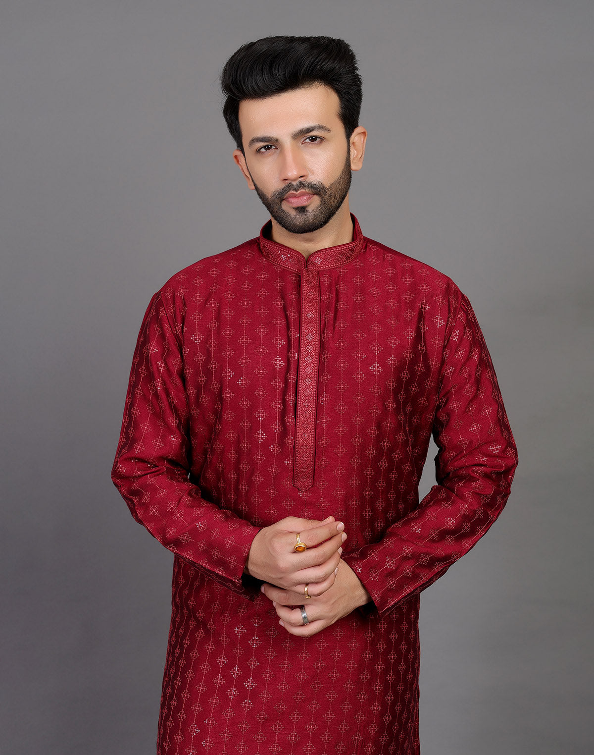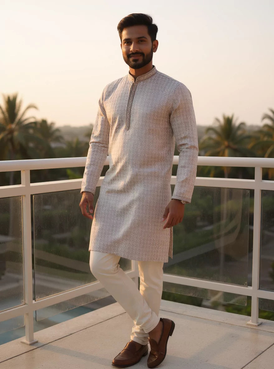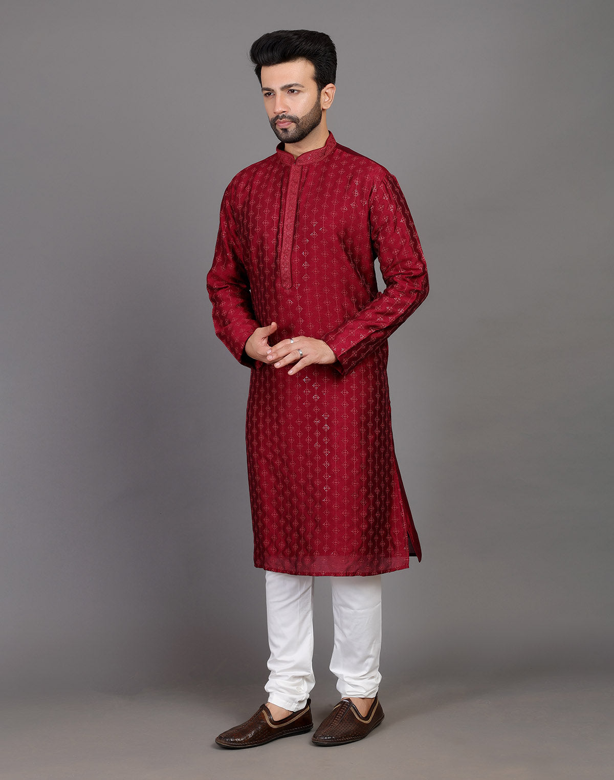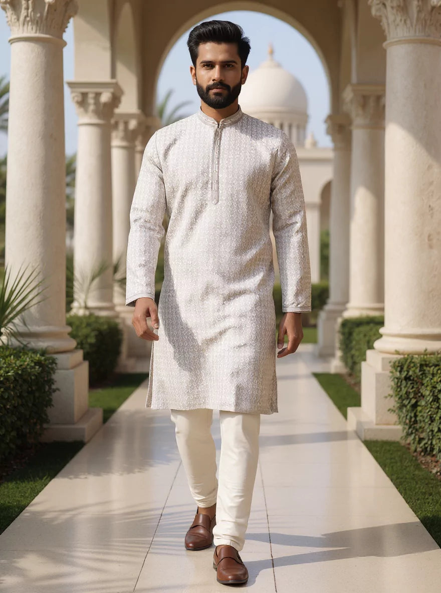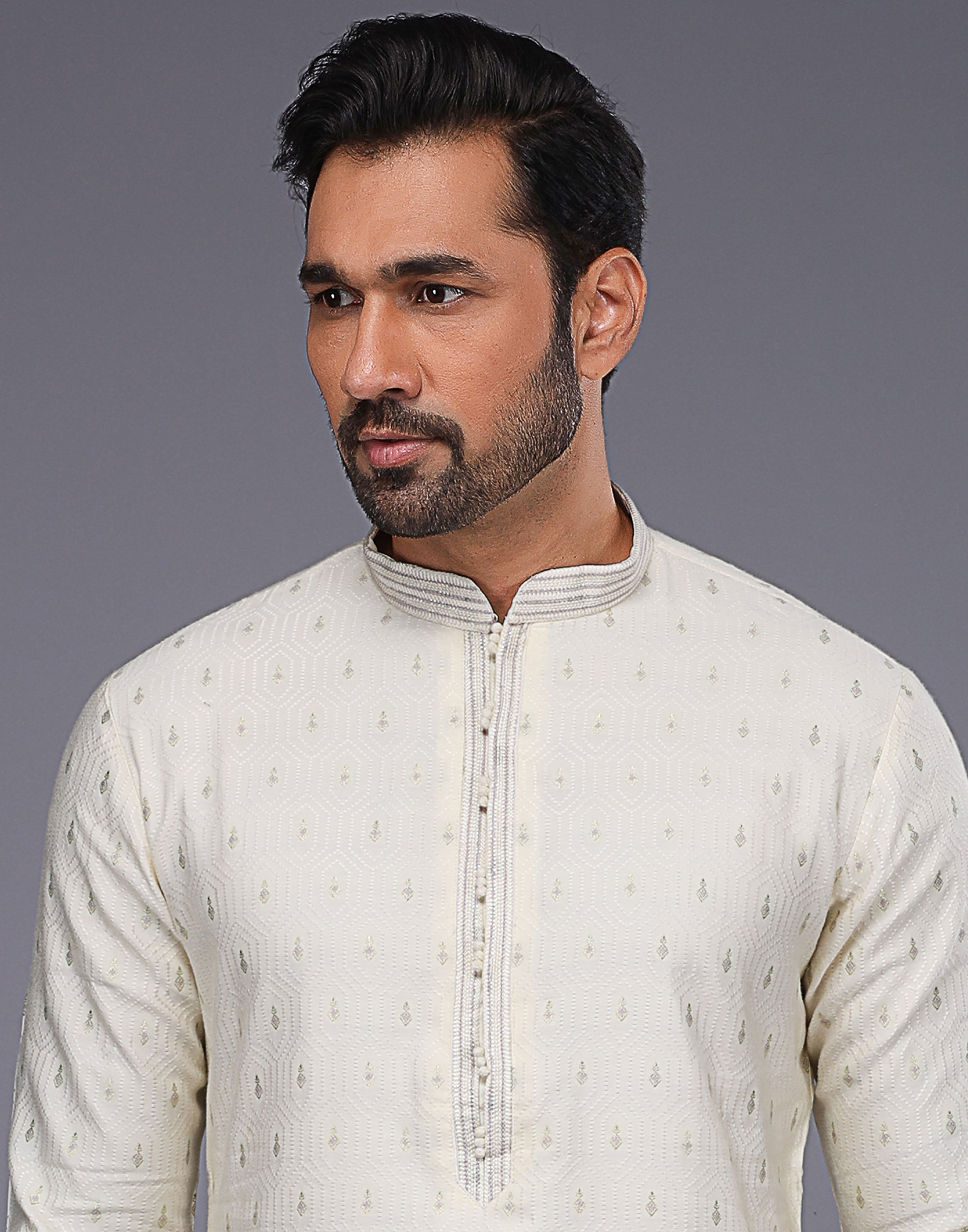 Stylish Brocade Design Thread work Jacquard Kurta Set