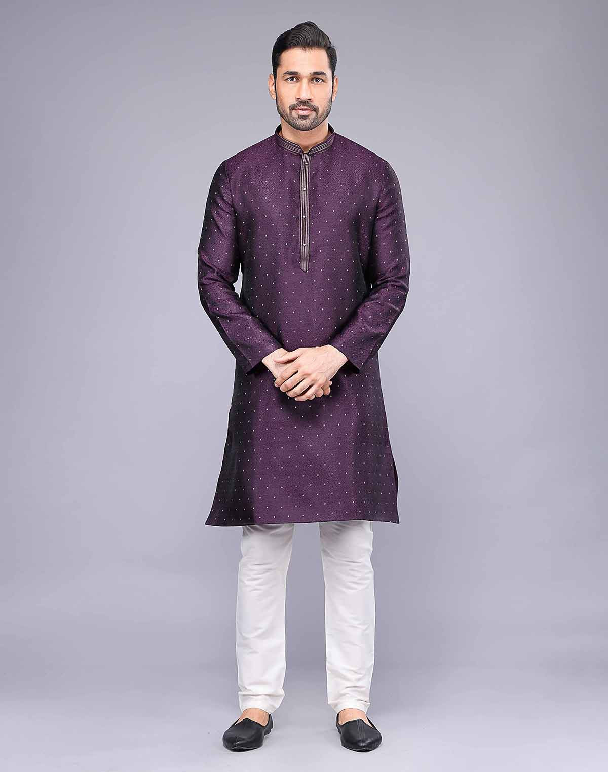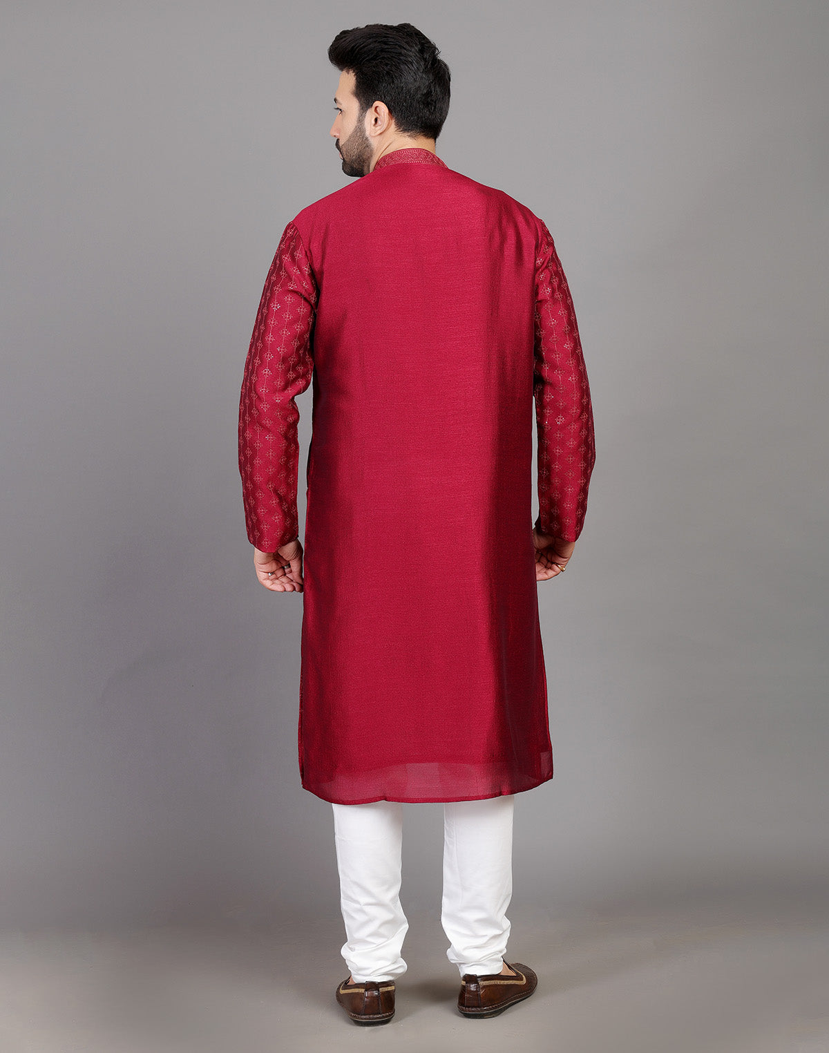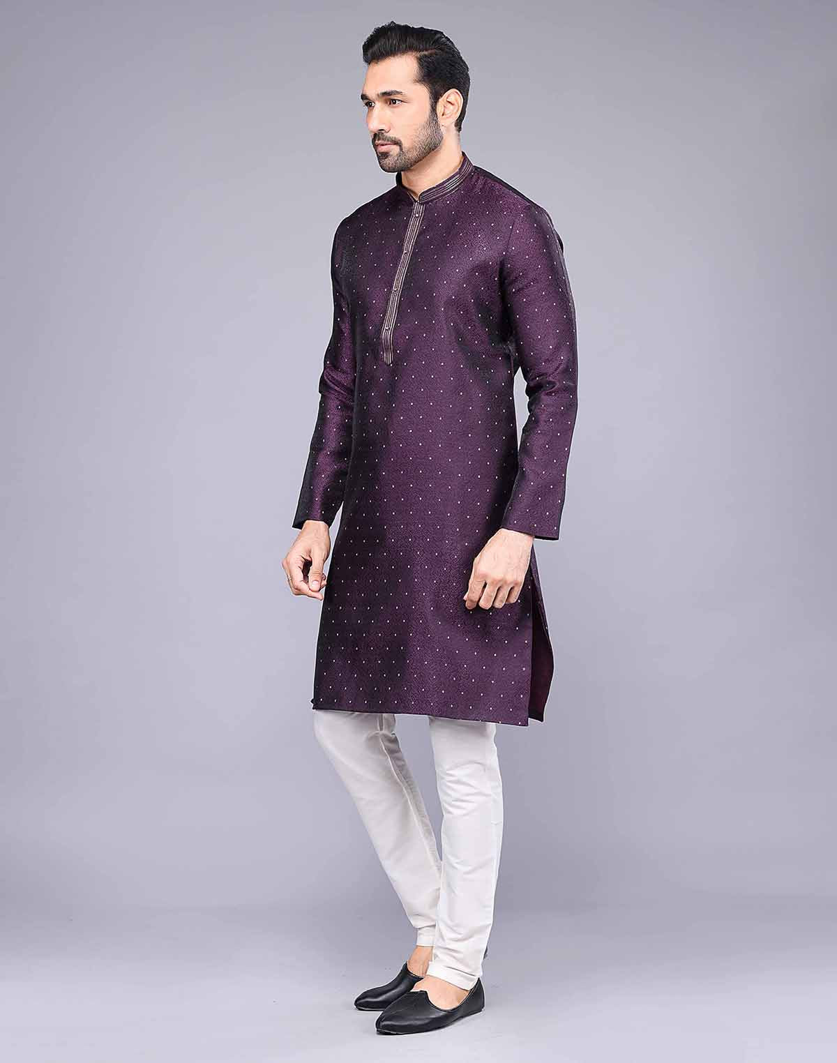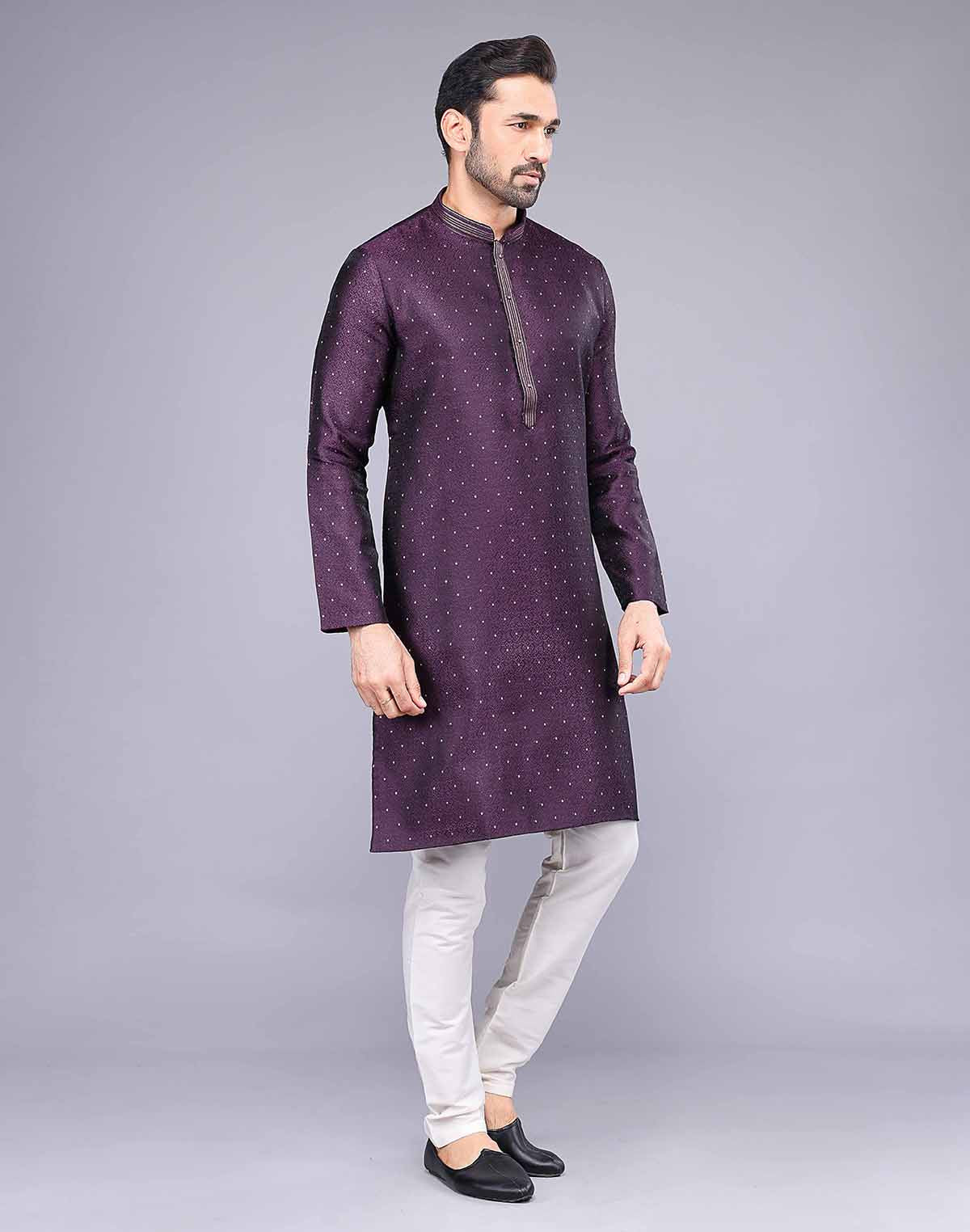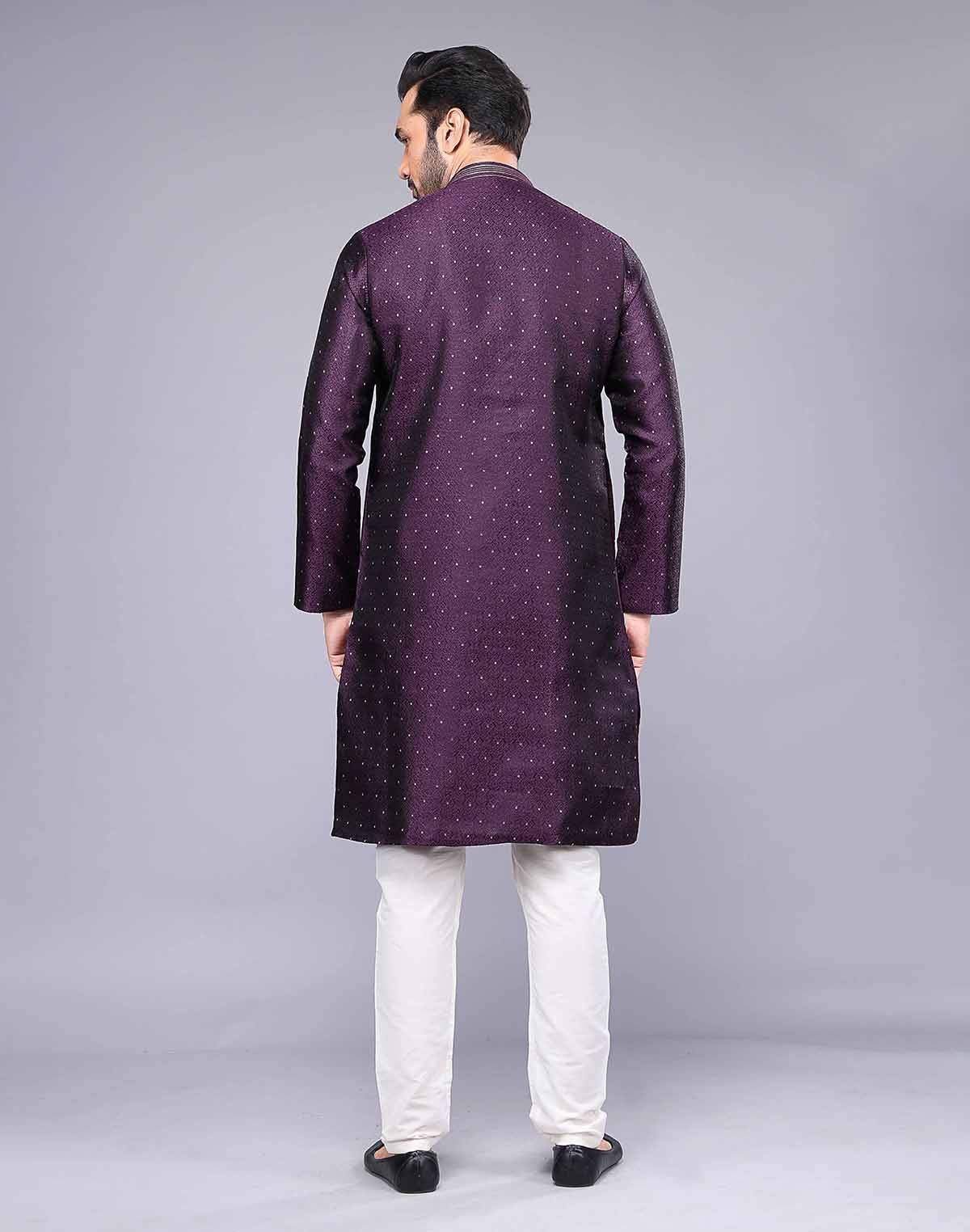 Solid Wine Polynosic Stones with Beads work Tuxido Suit