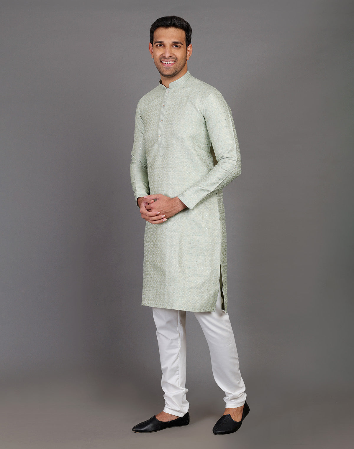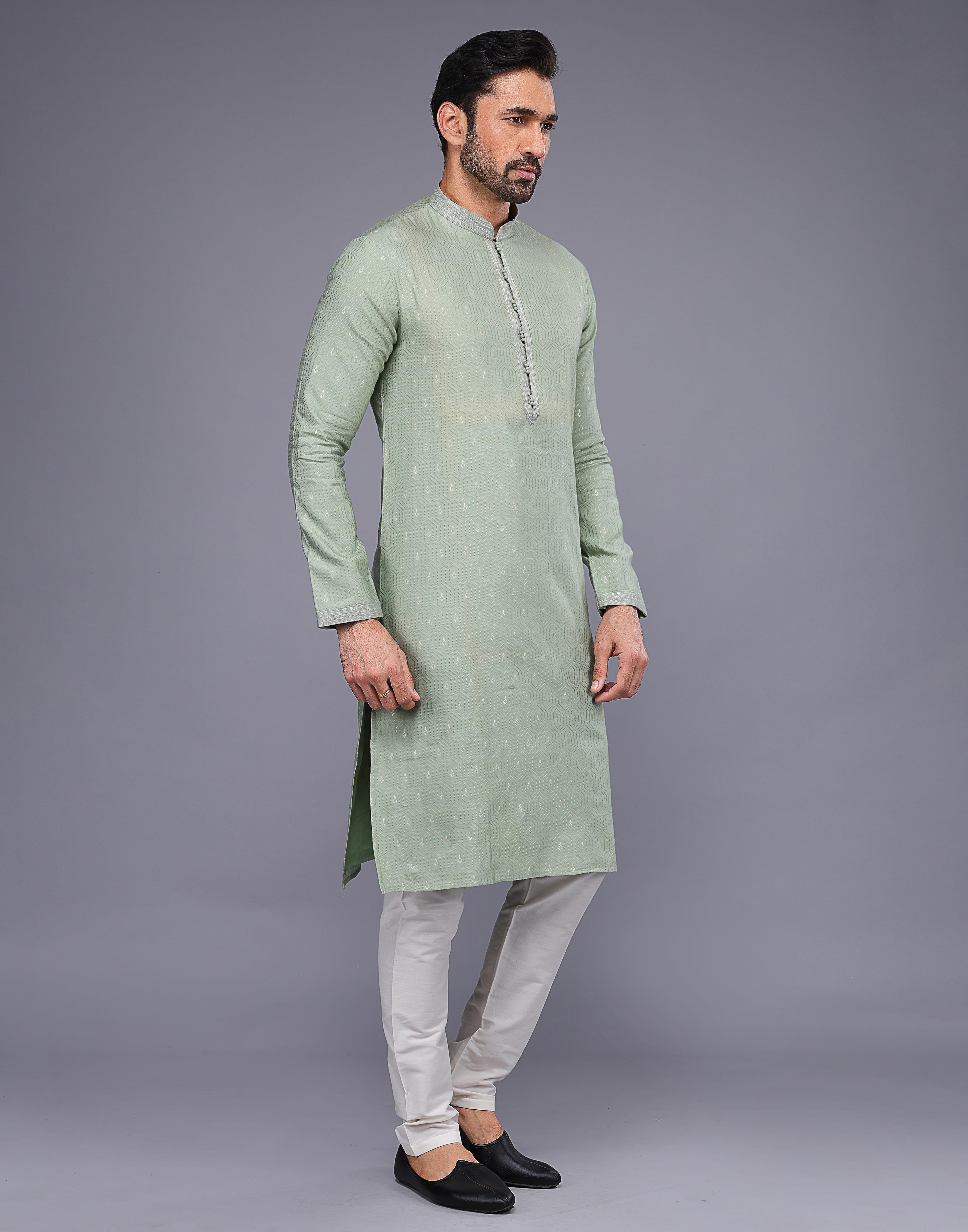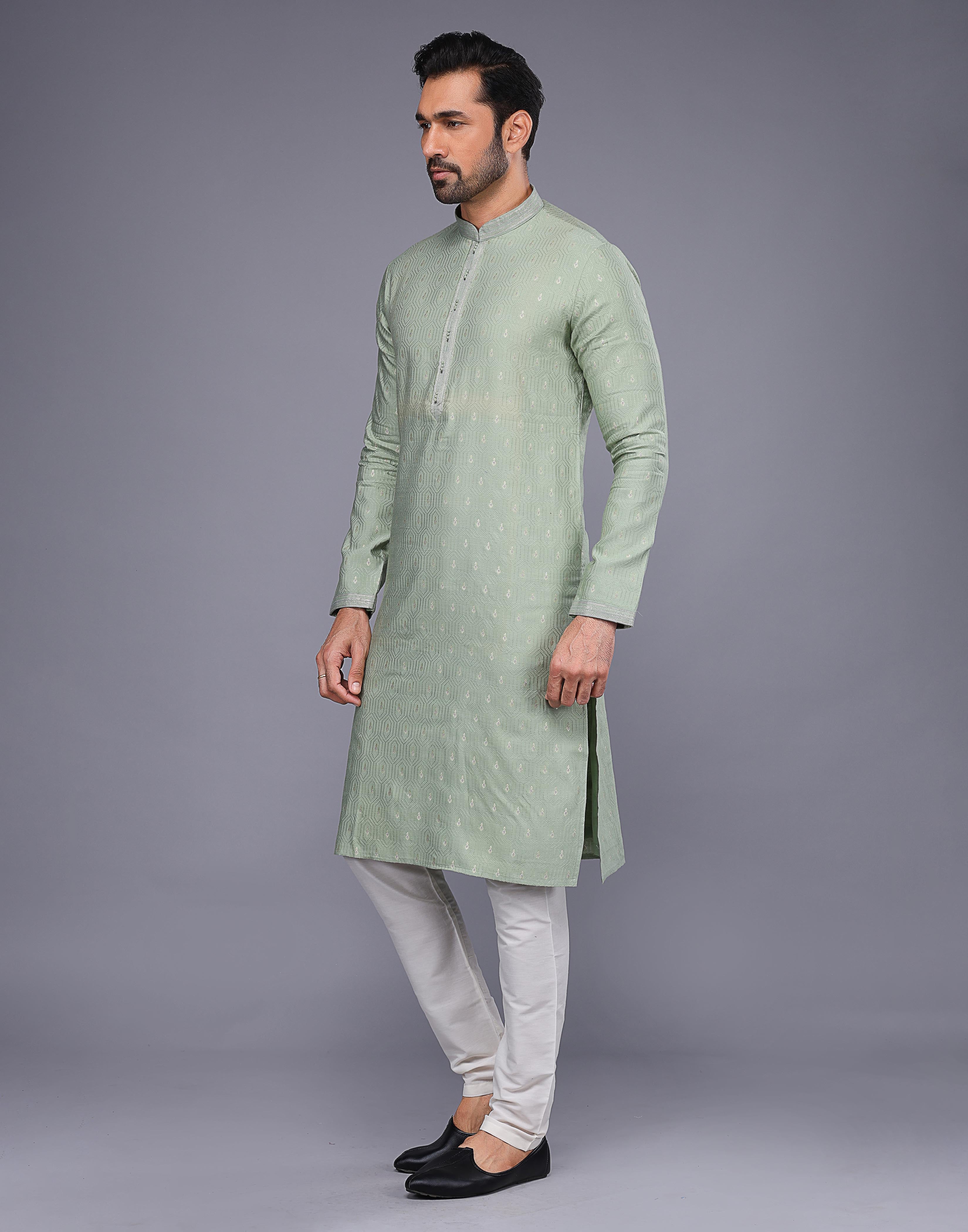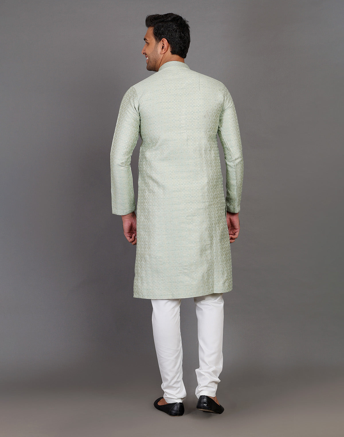 Stylish Pista Green Rawsilk Sequence Kurta Jacket