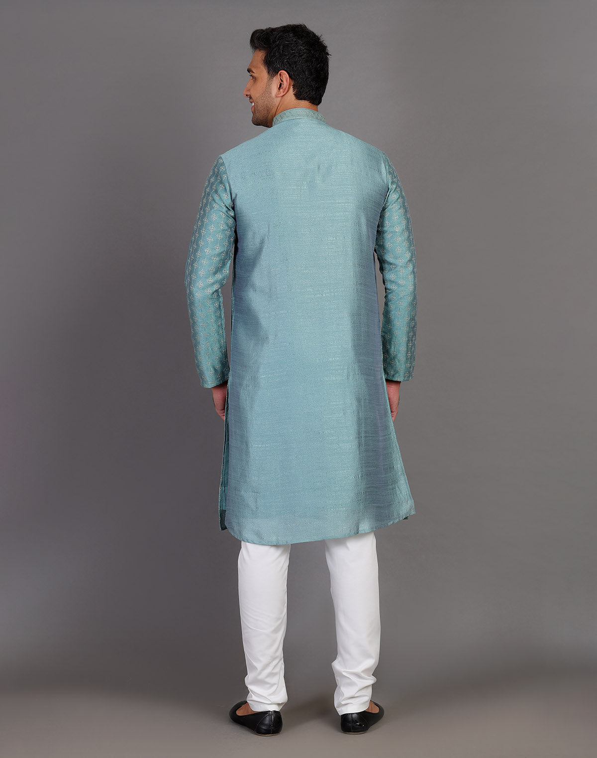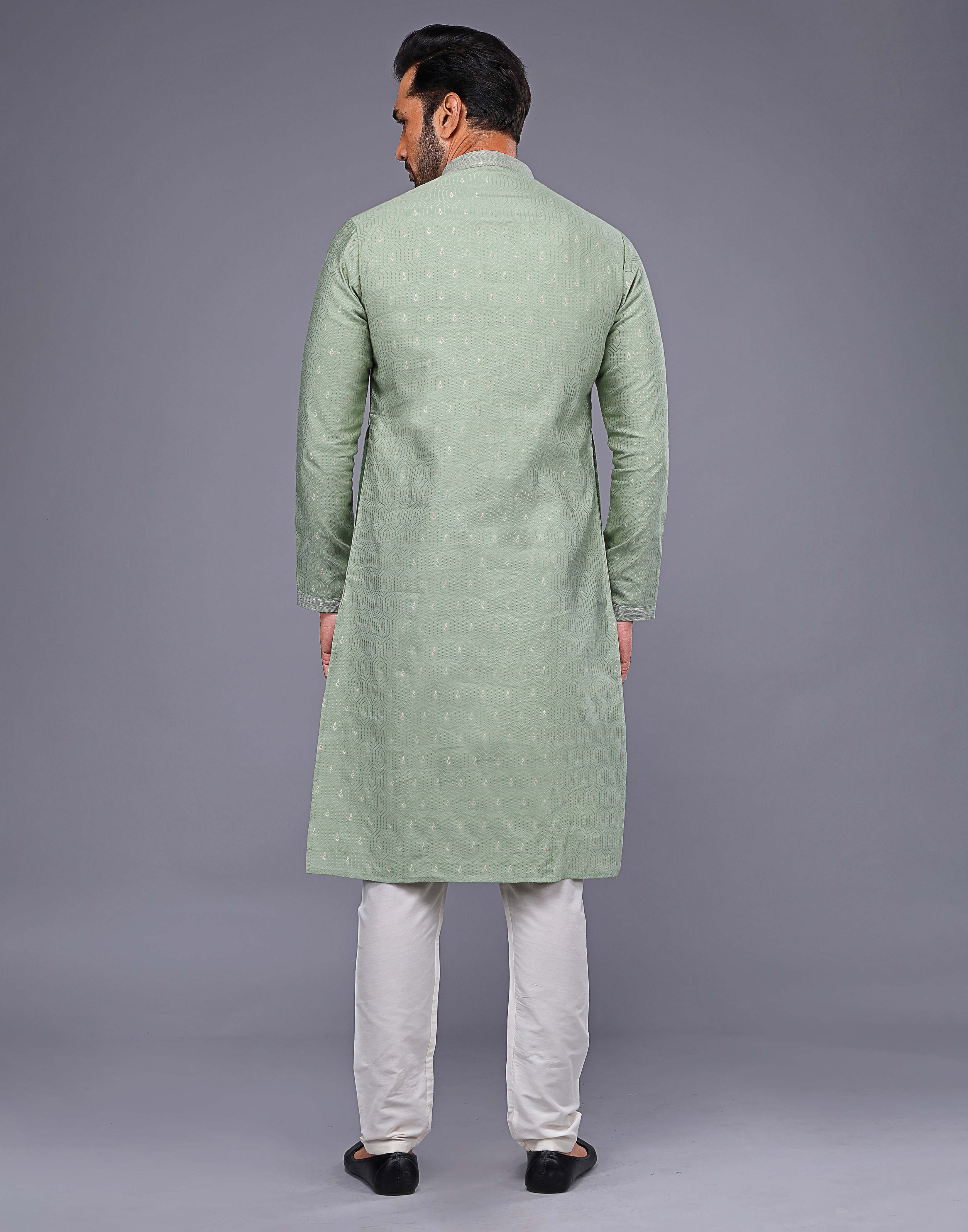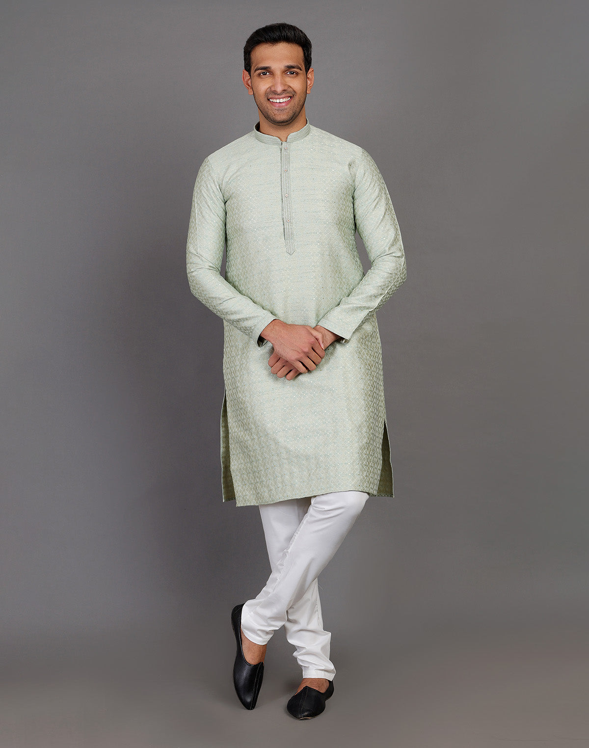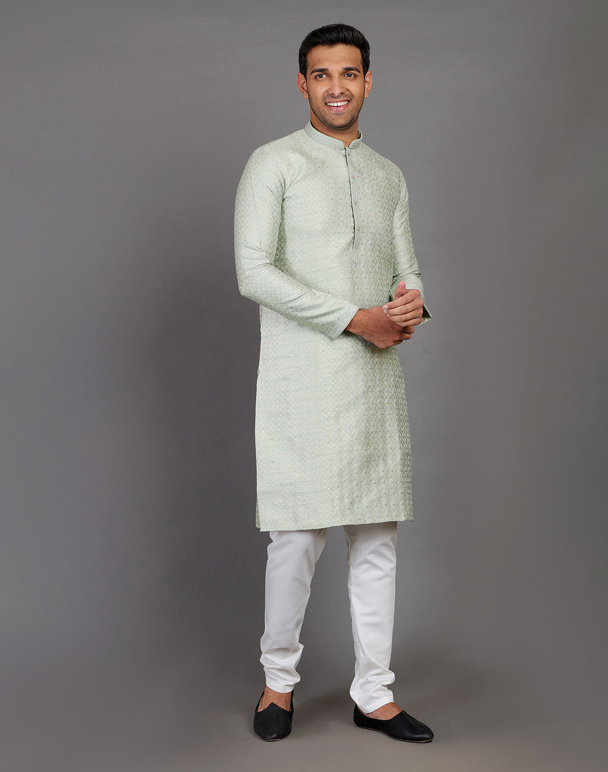 Stylish Pista Green Rawsilk Sequence Kurta Jacket