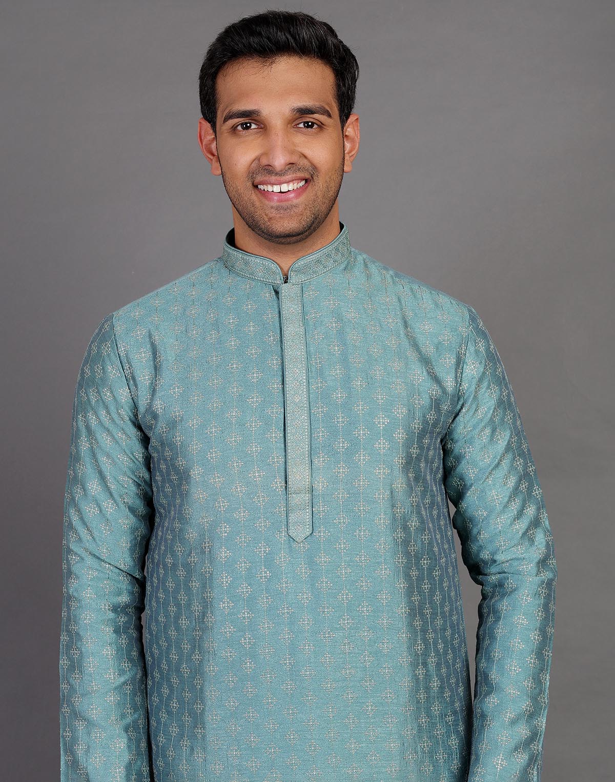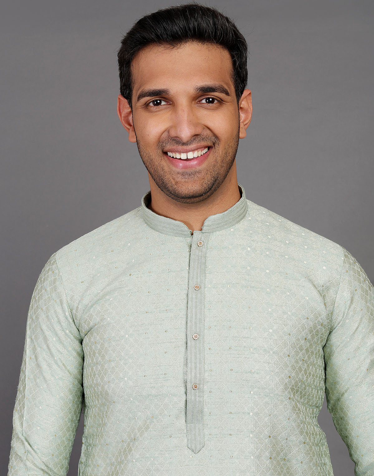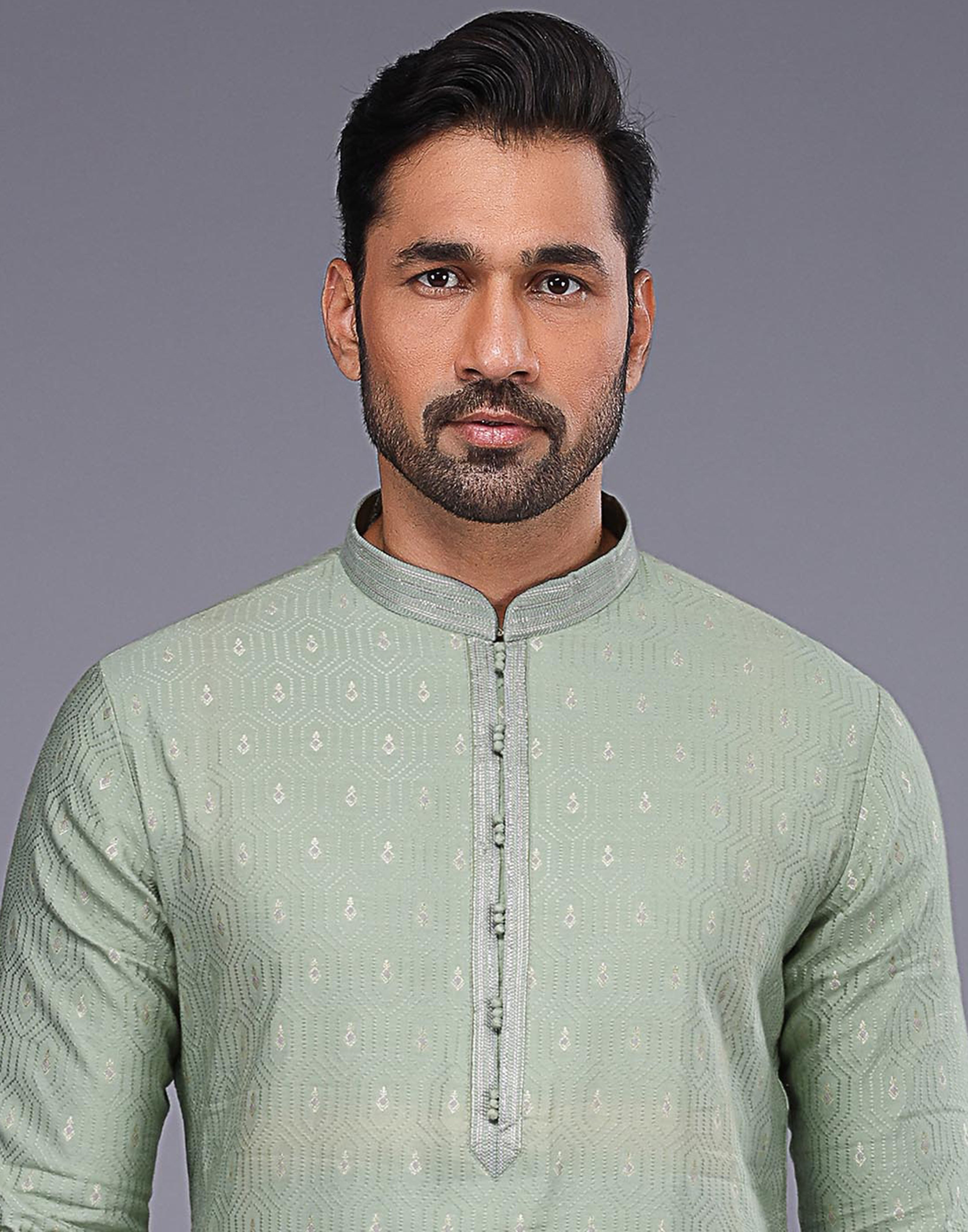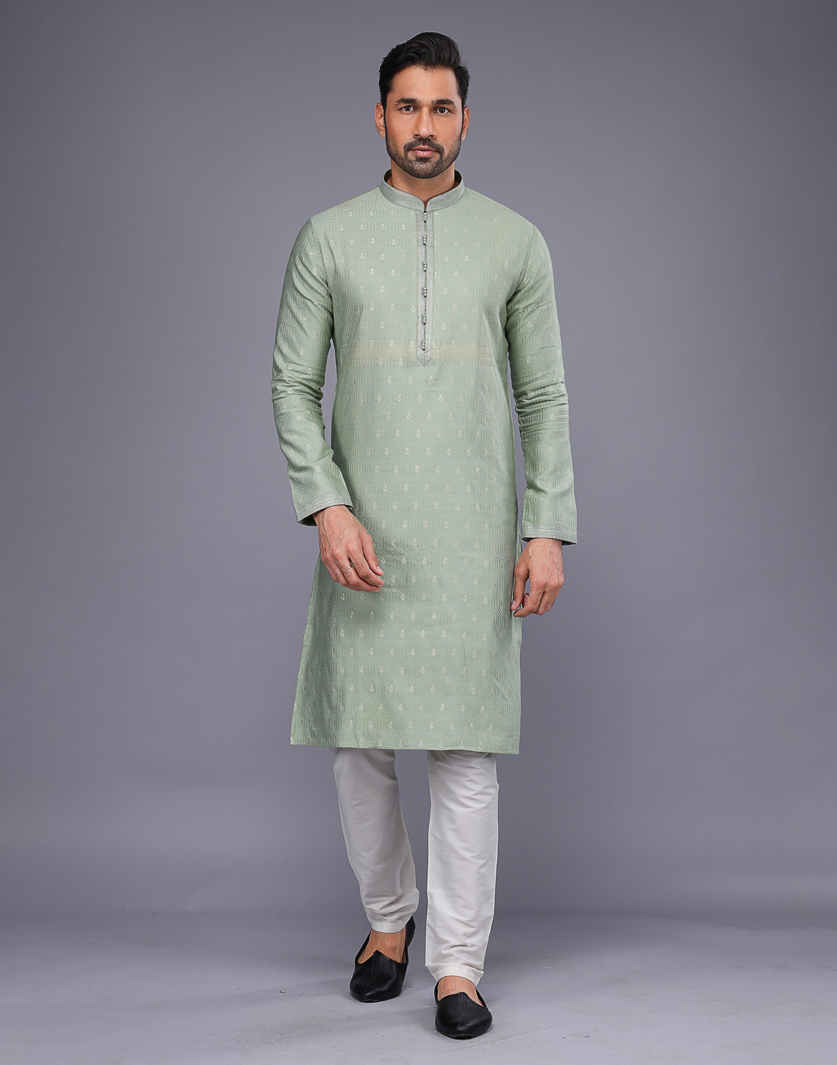 Stylish Pista Green Rawsilk Sequence Kurta Jacket