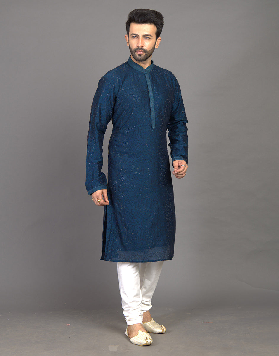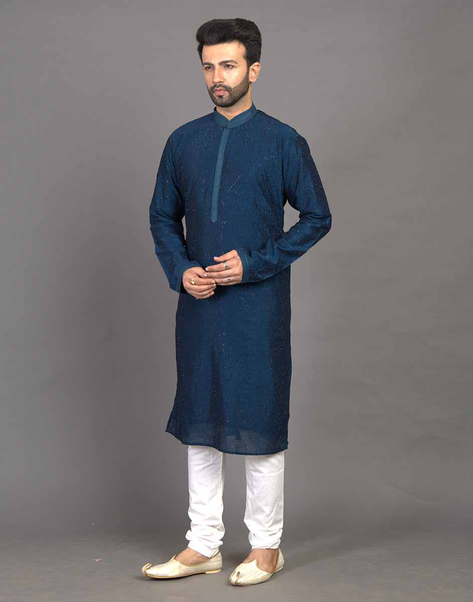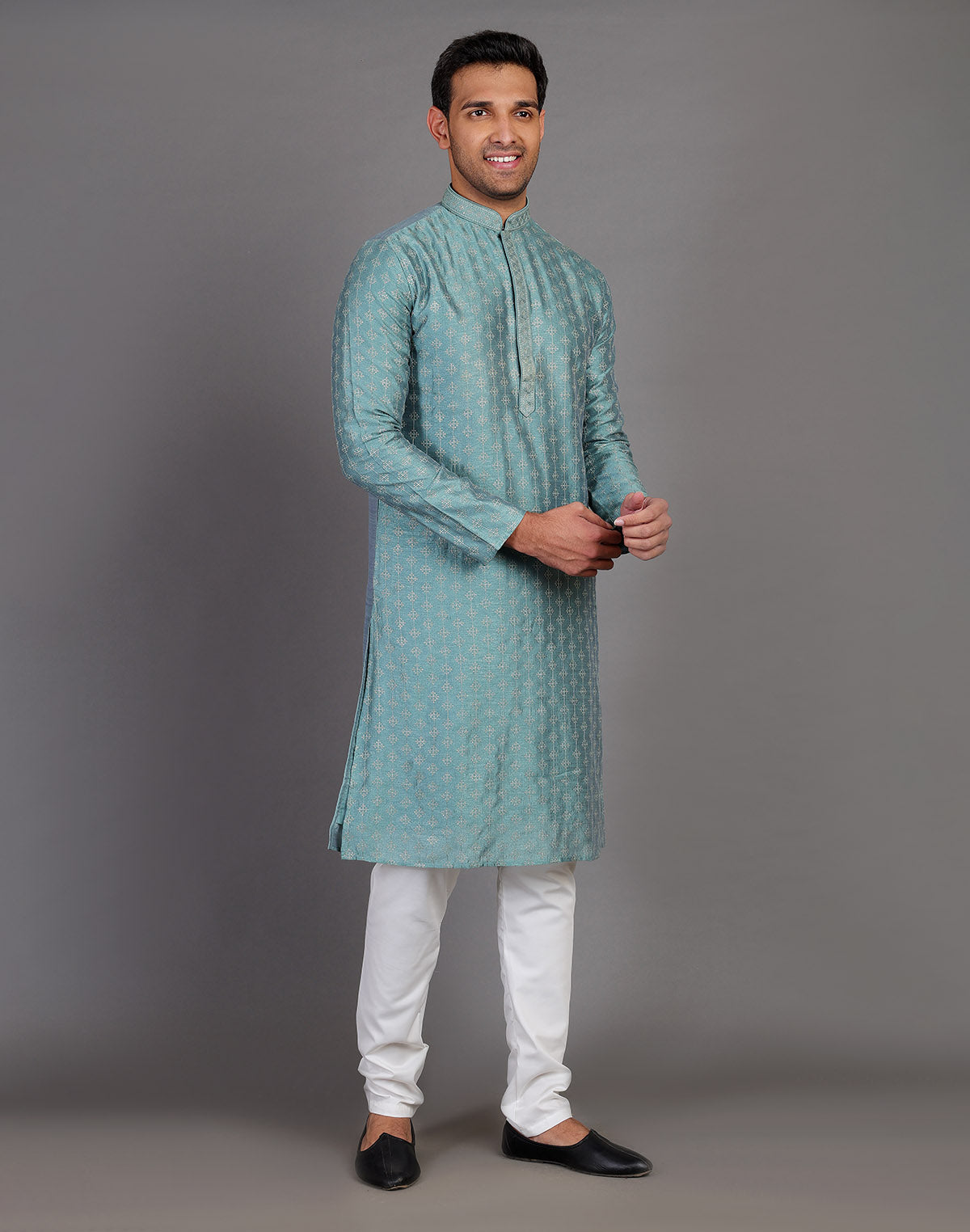 Terrific Rama Self Design Cotton Kurta with Pajama
