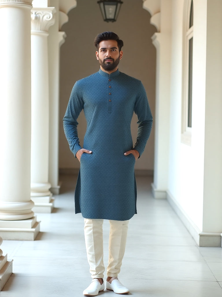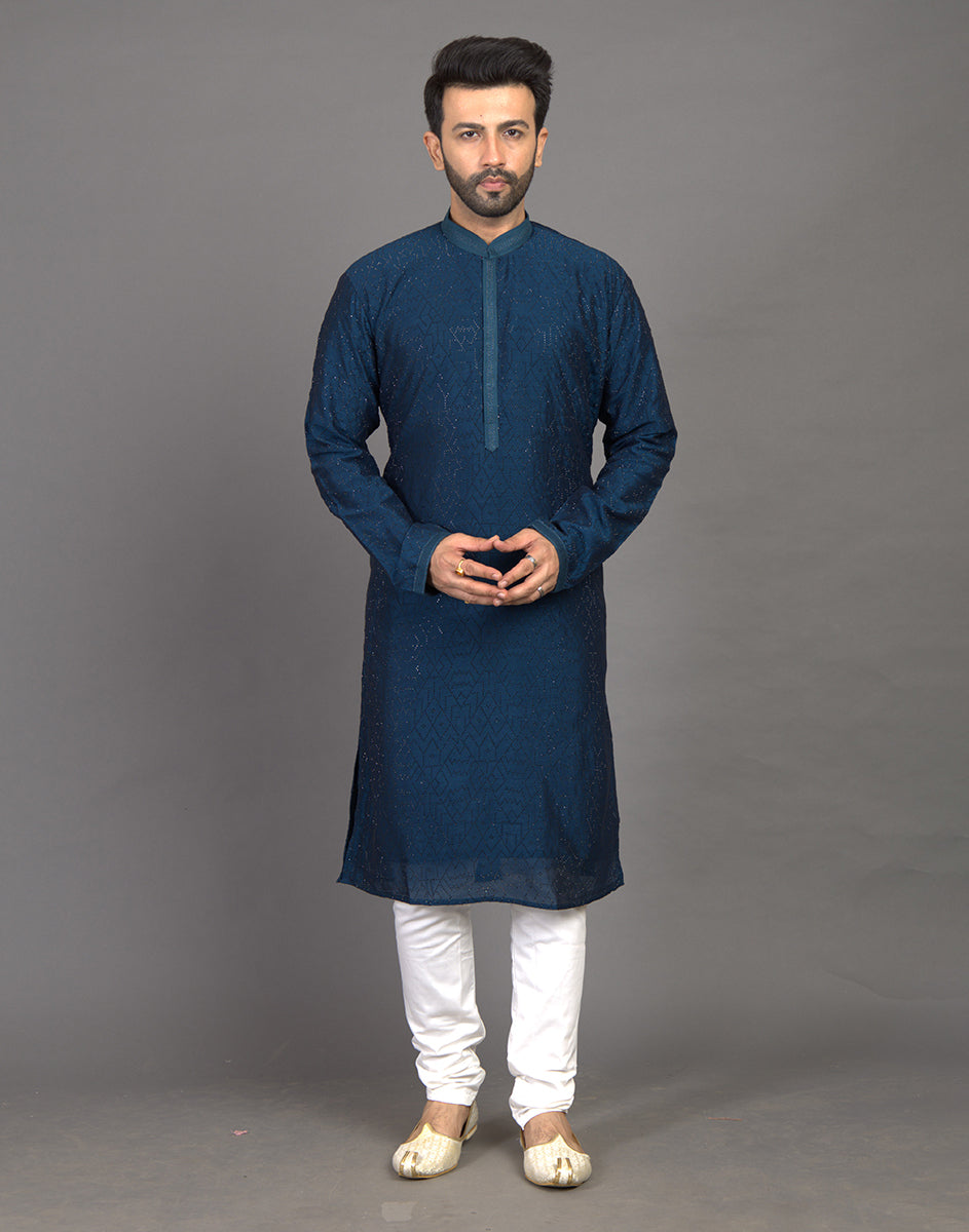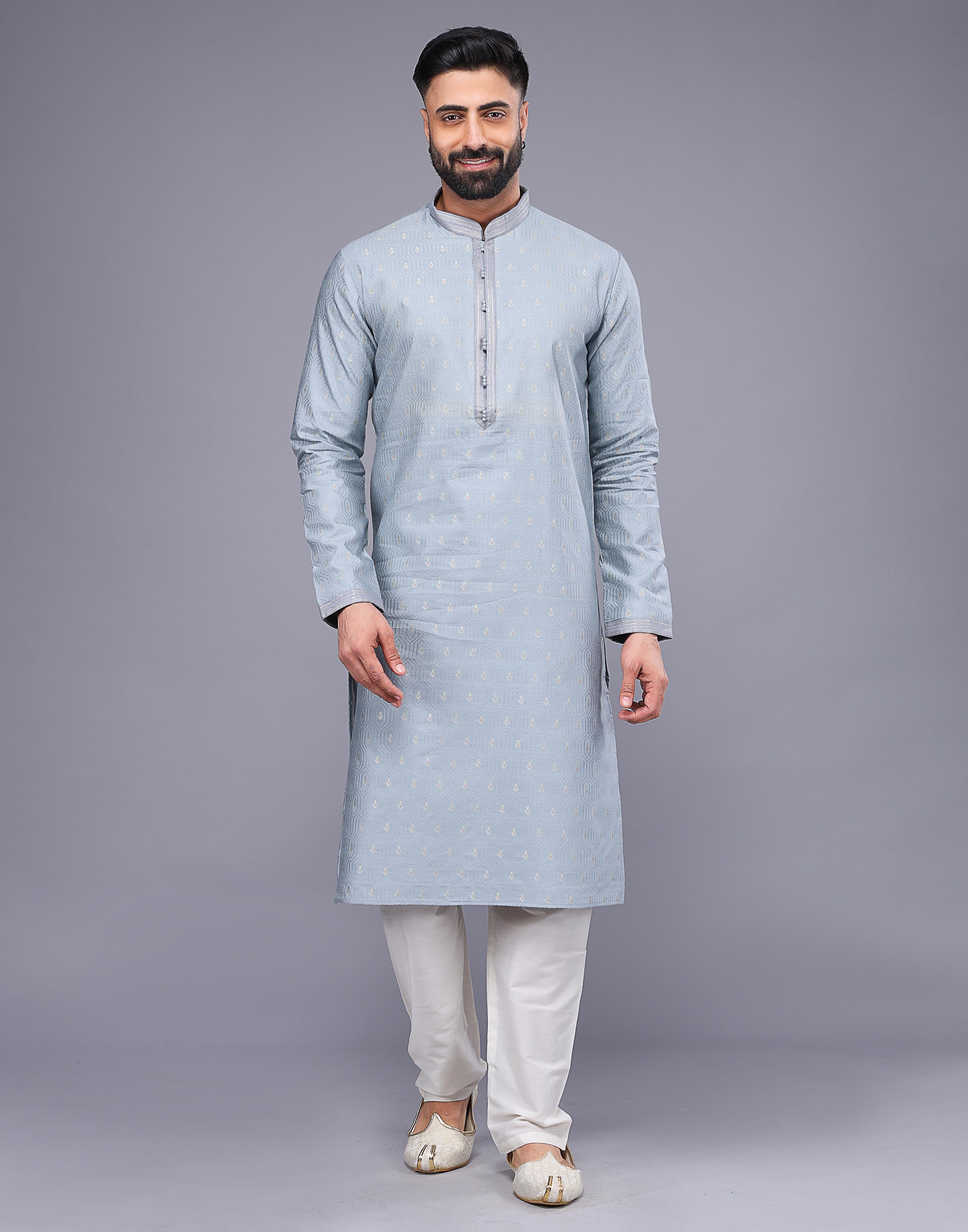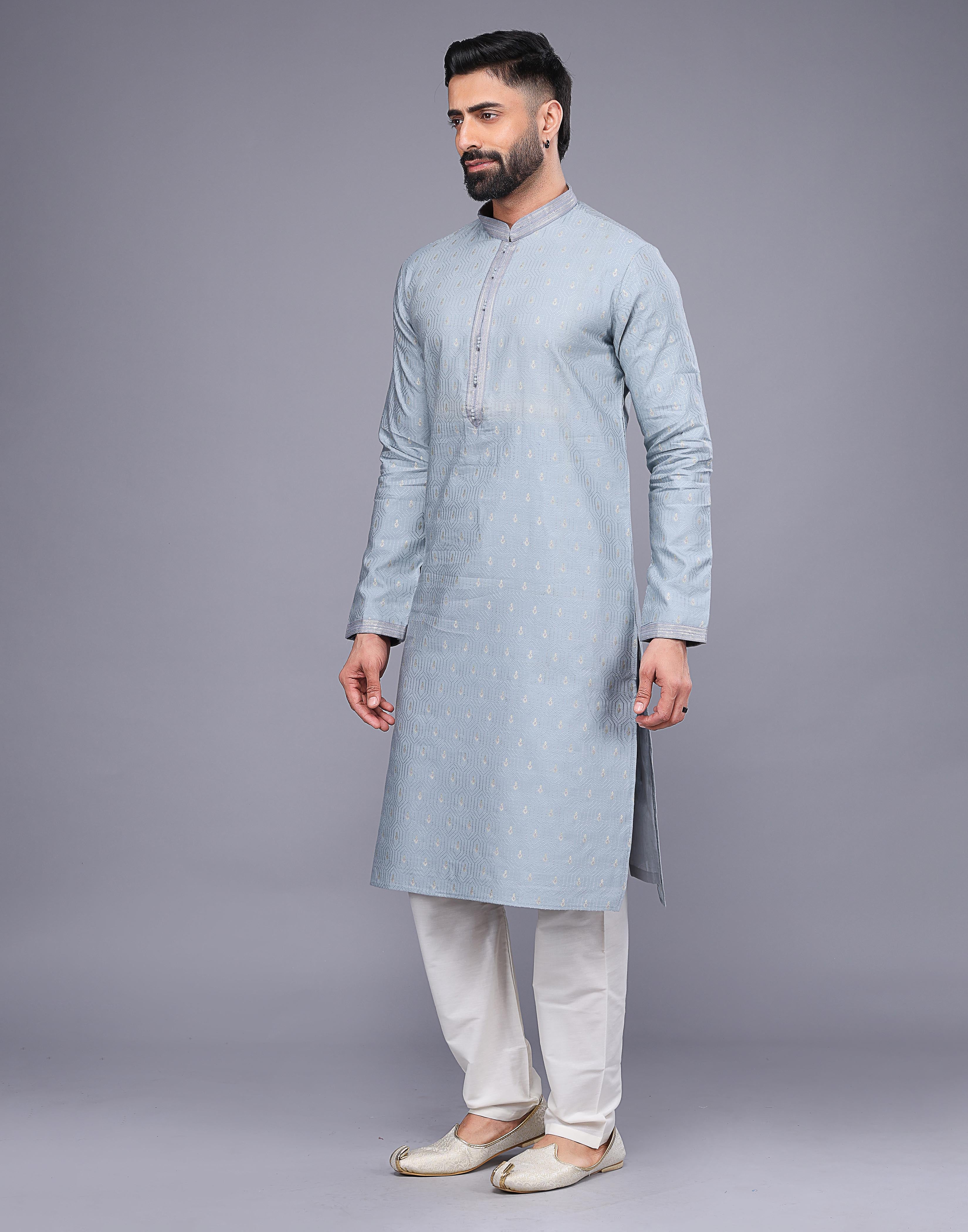 Terrific Rama Self Design Cotton Kurta with Pajama