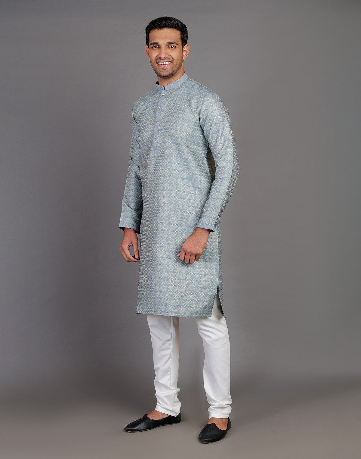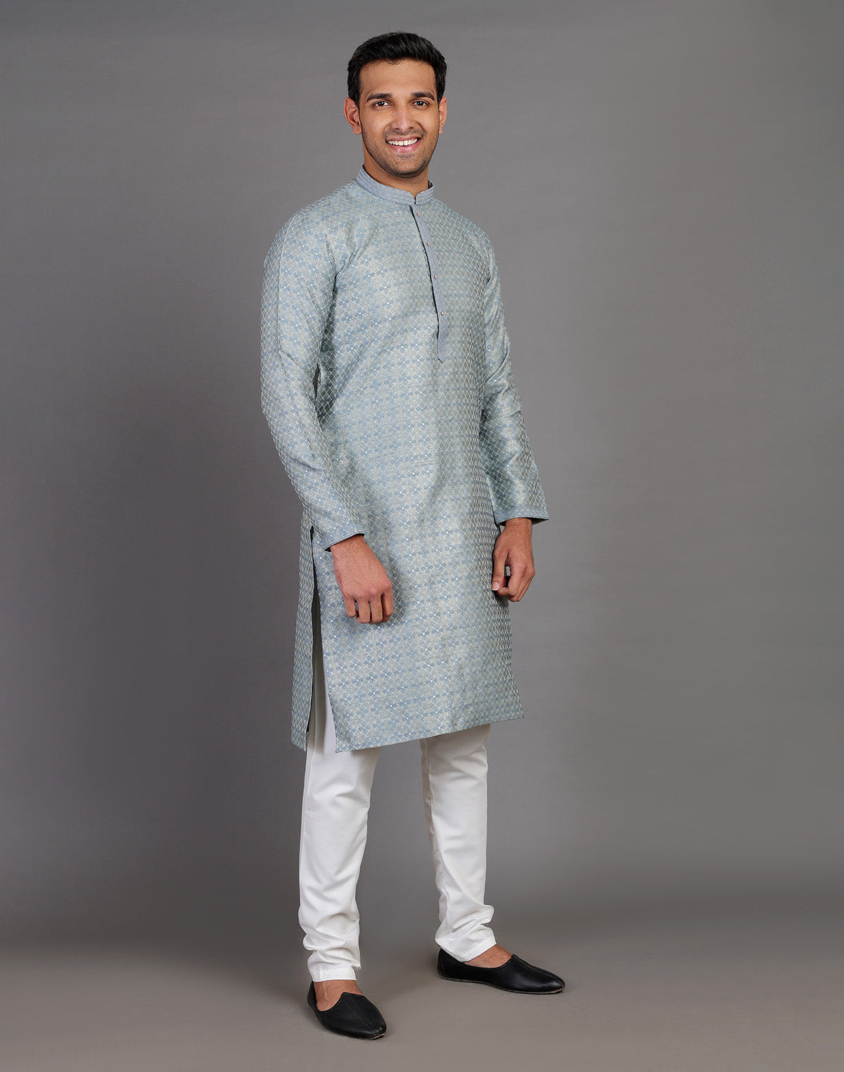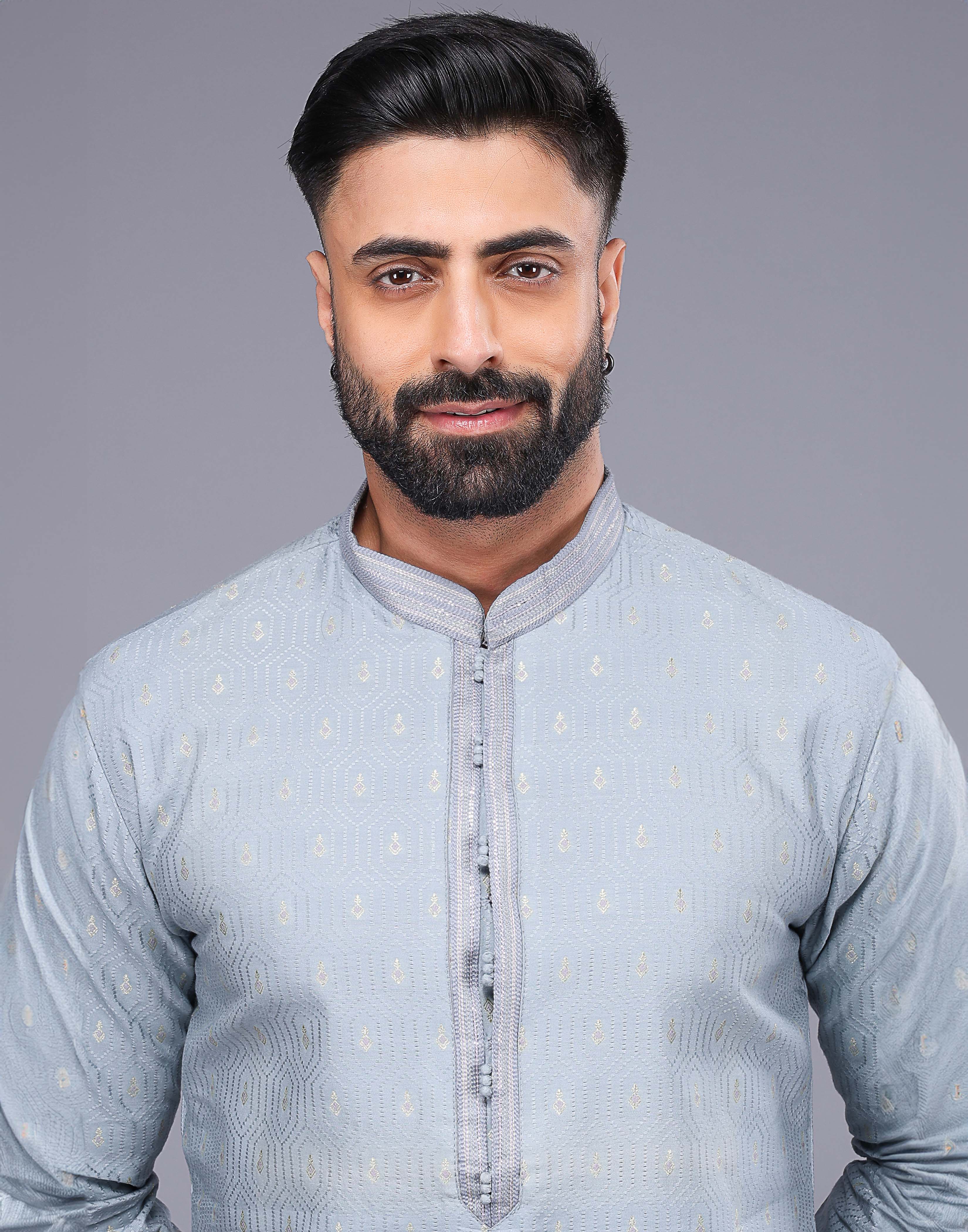 Steel Grey Floral Design Jacquard Semi-Indo Set