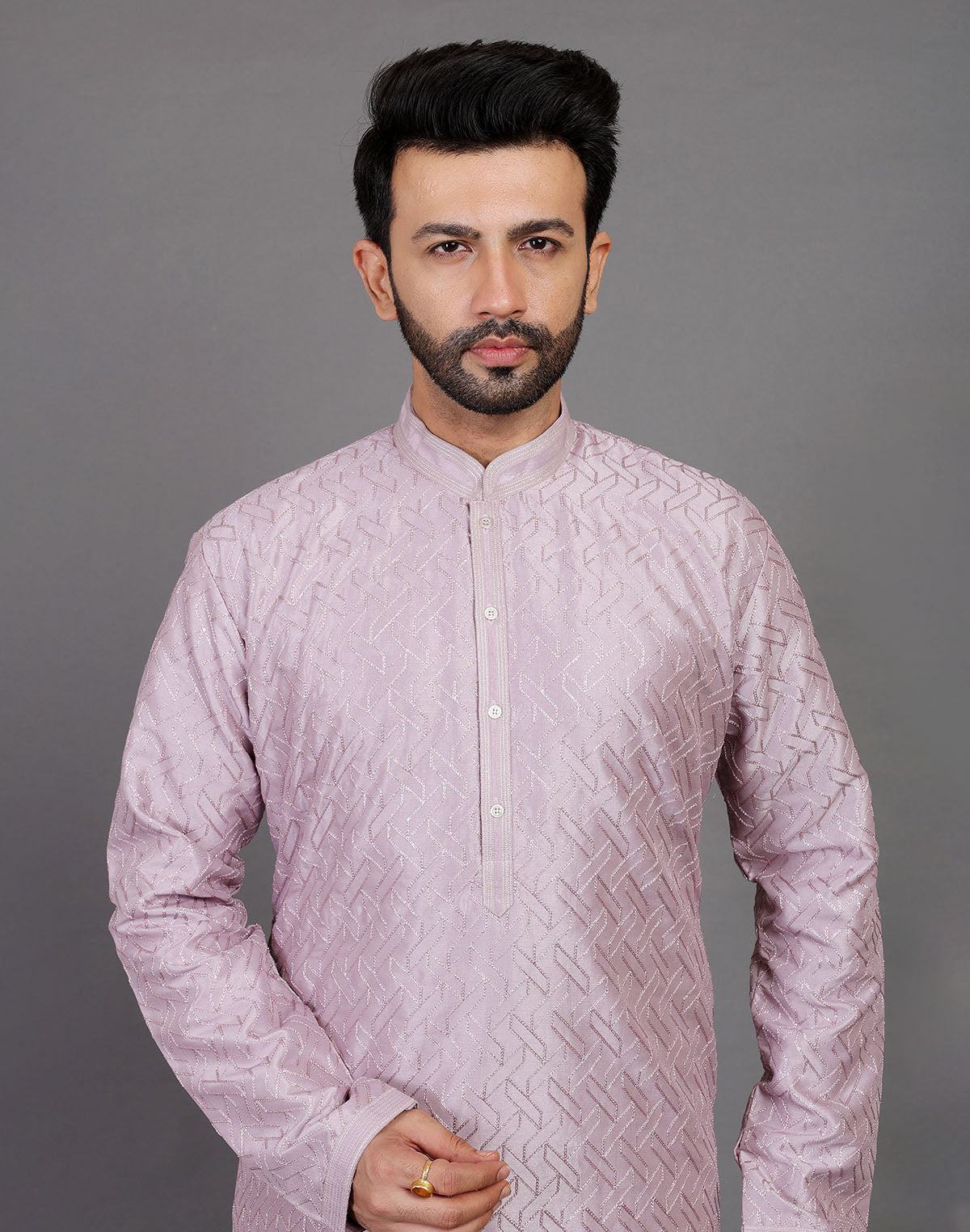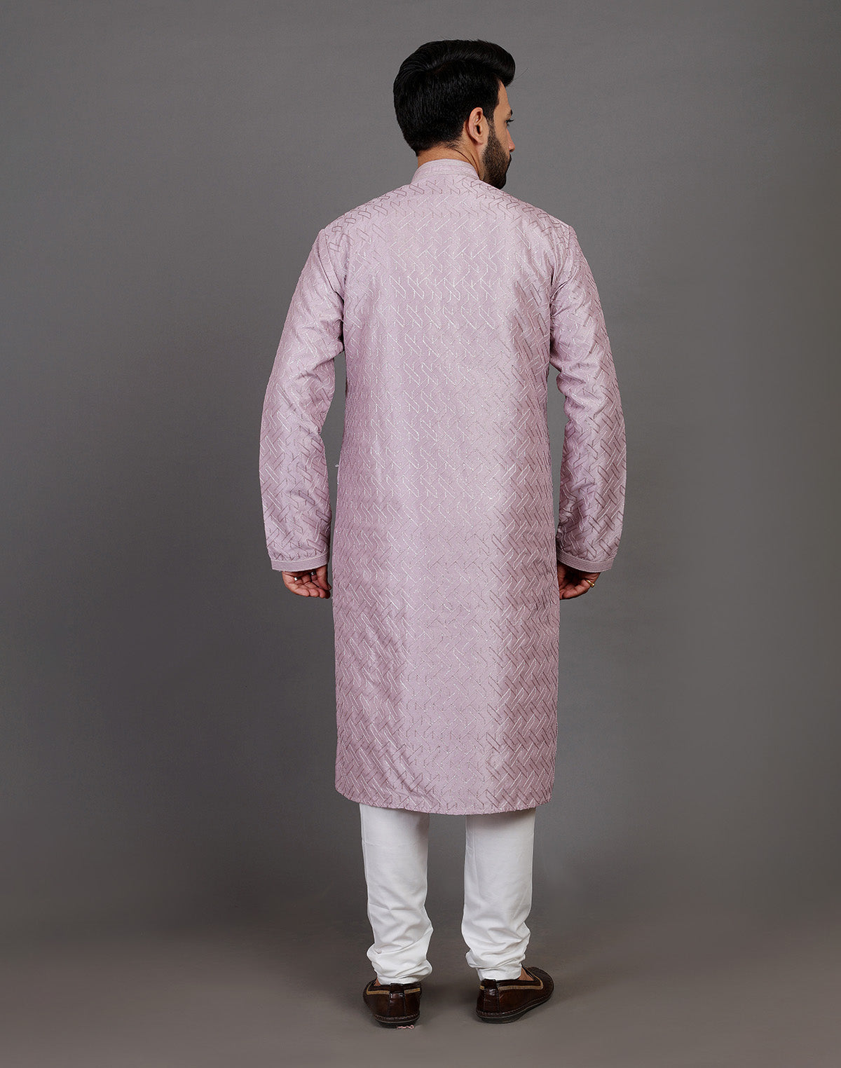 Stylish Lilac Coloured Raw Silk Embroidery work Floral Indo Western Open Jacket Set