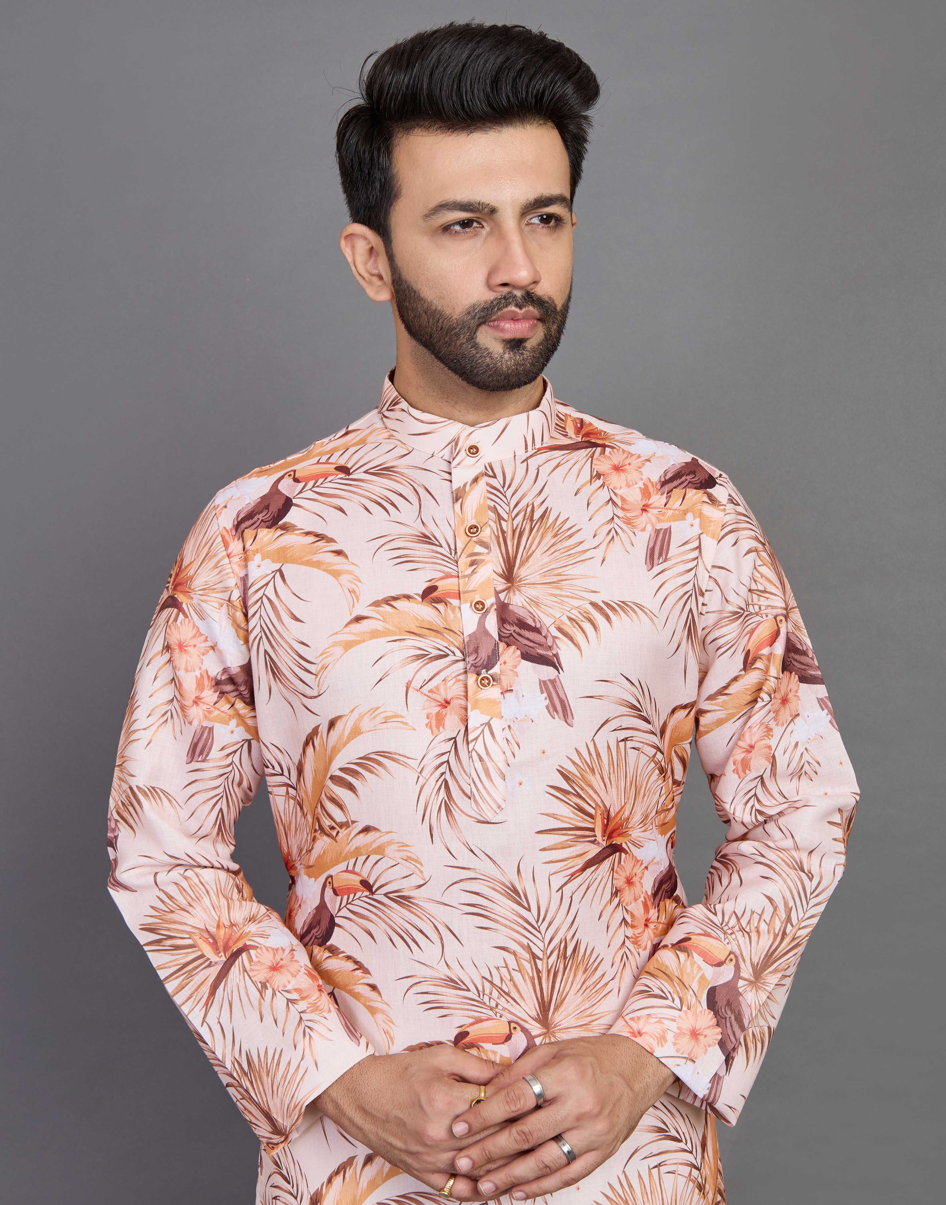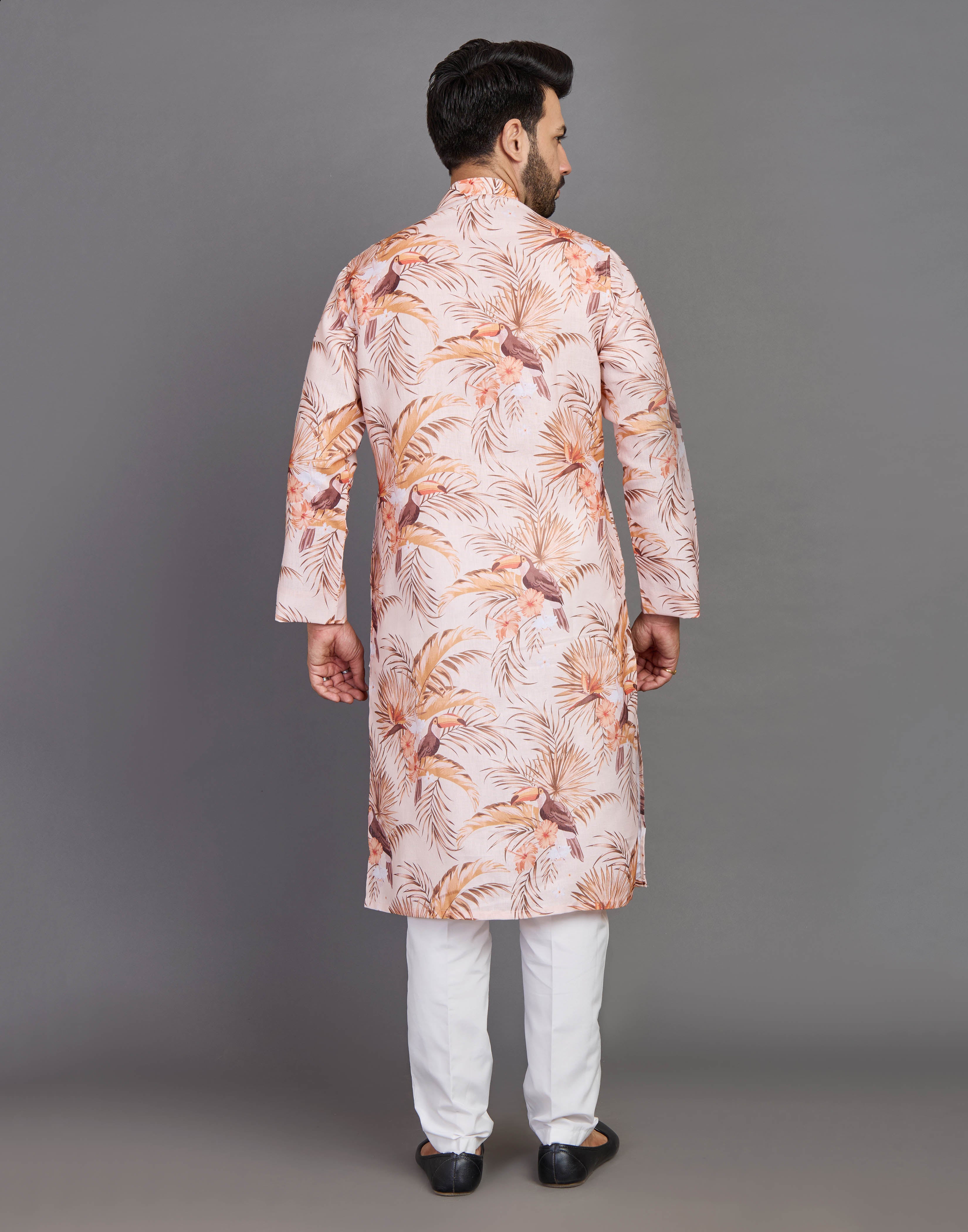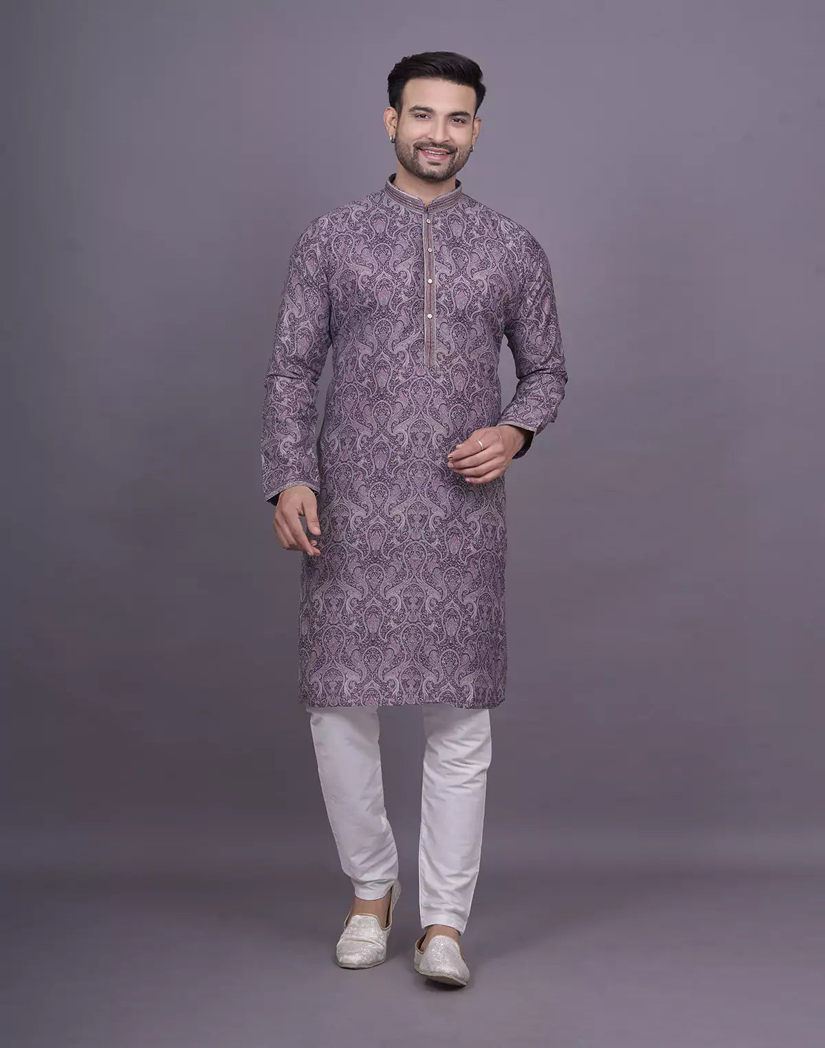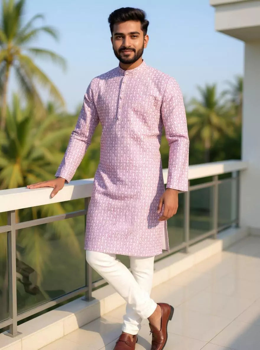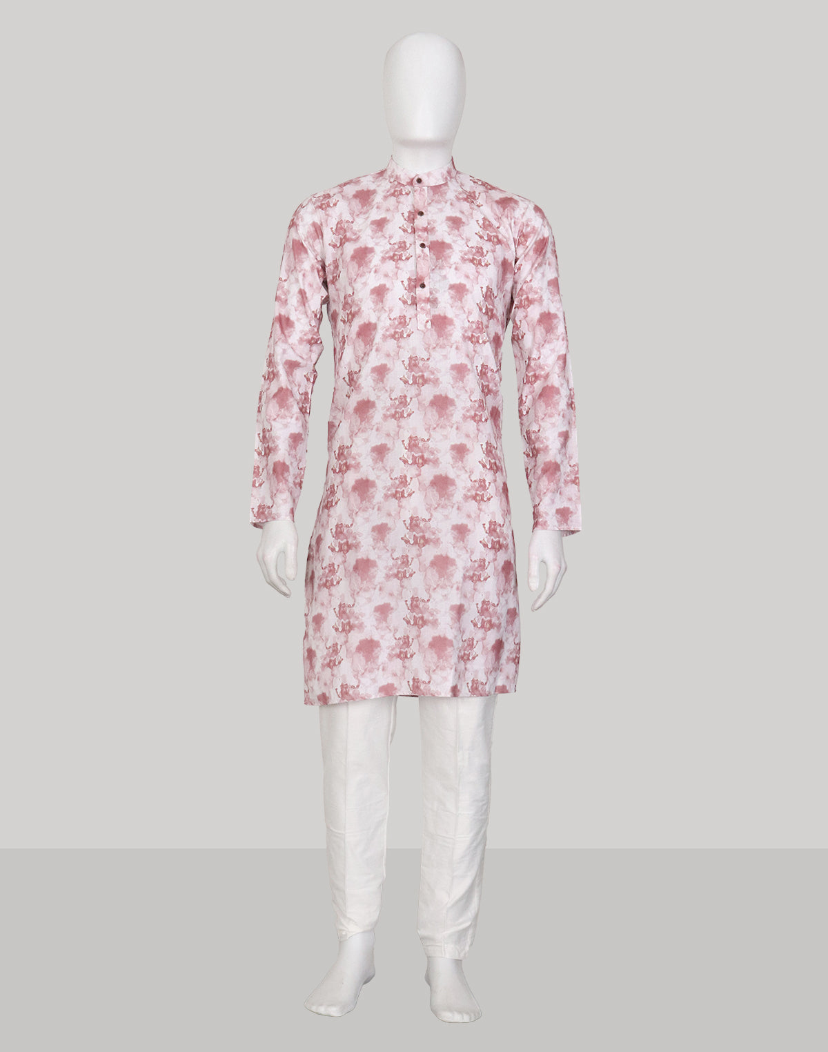 Giza Cotton Floral Printed Onion Color Kurta Set