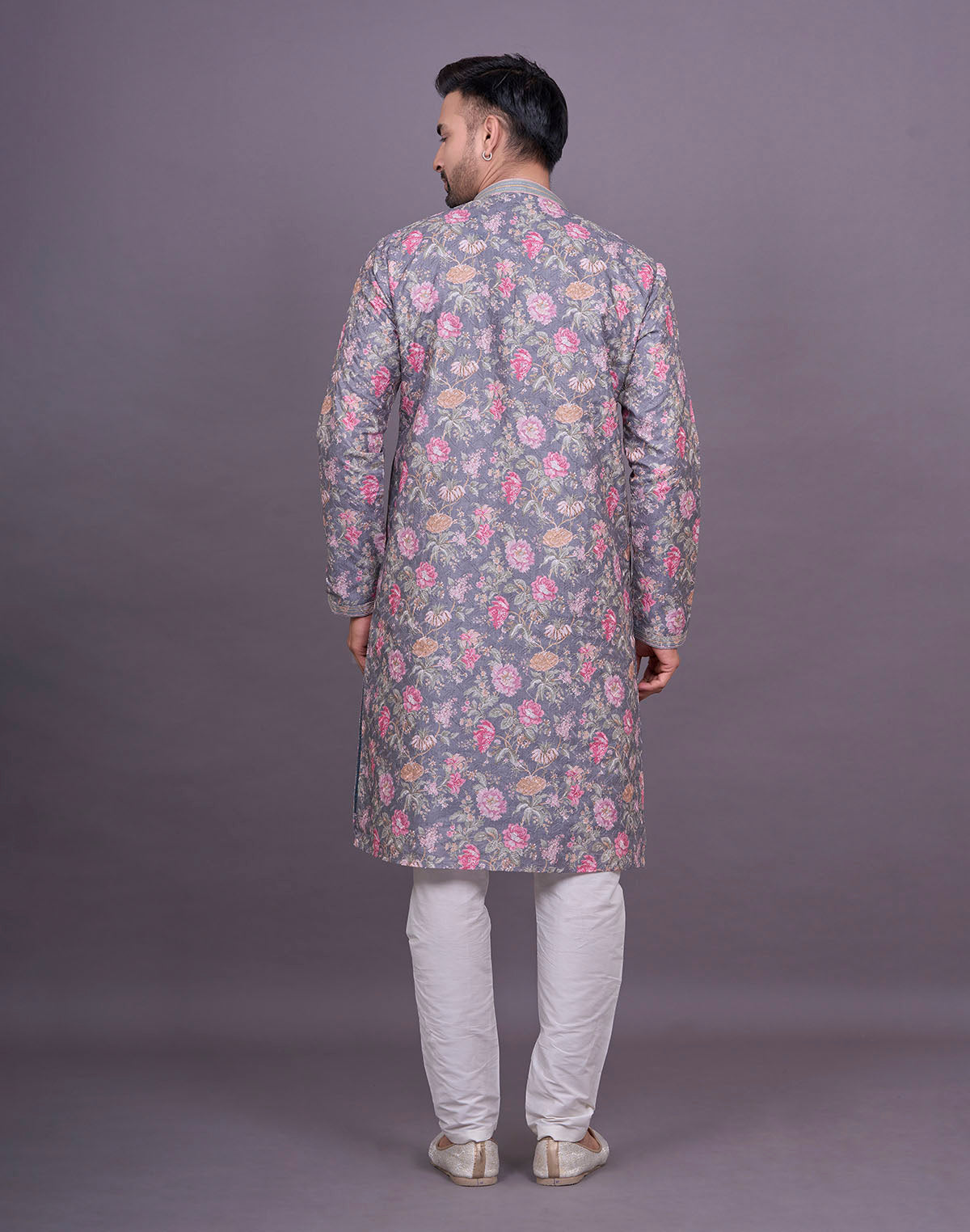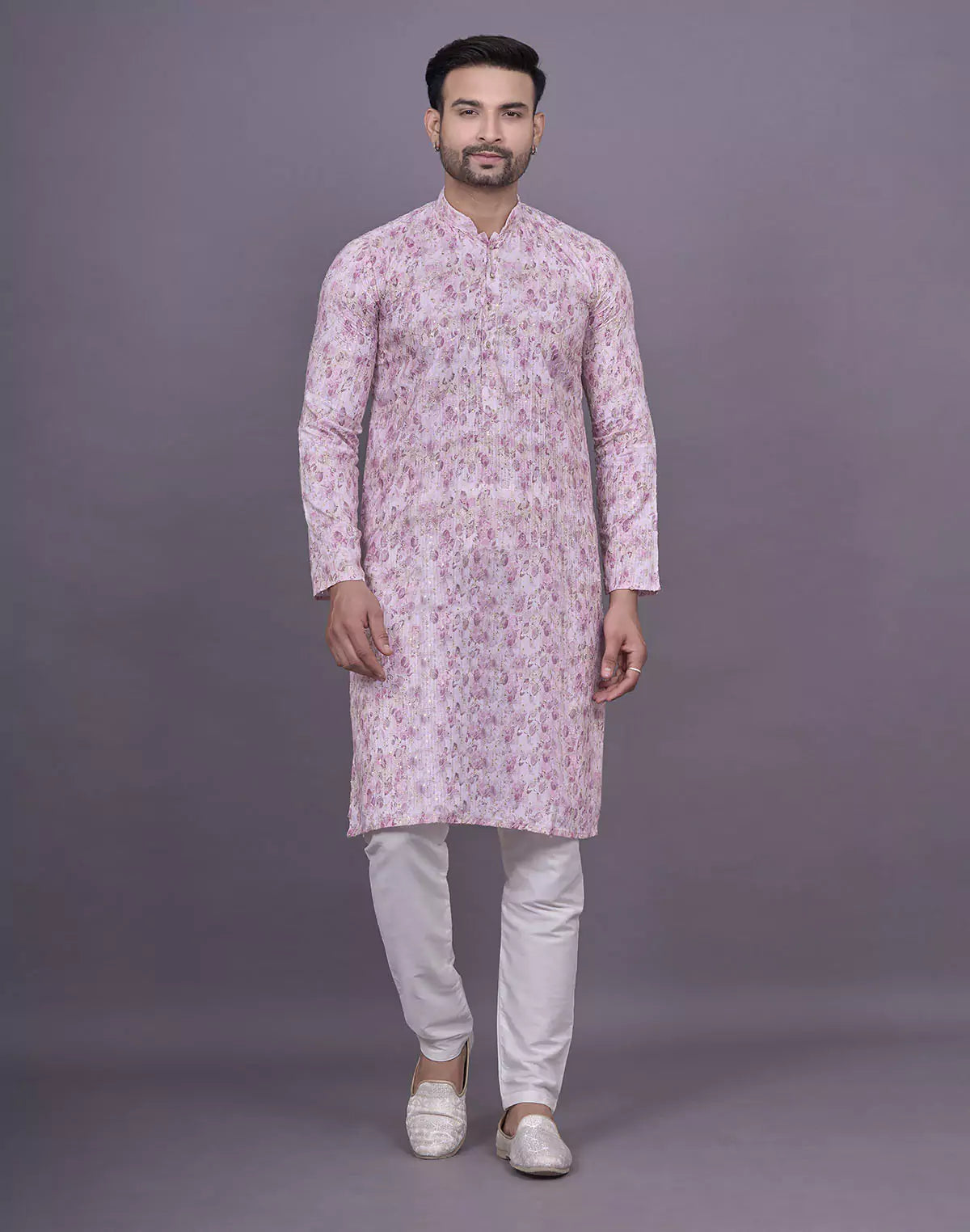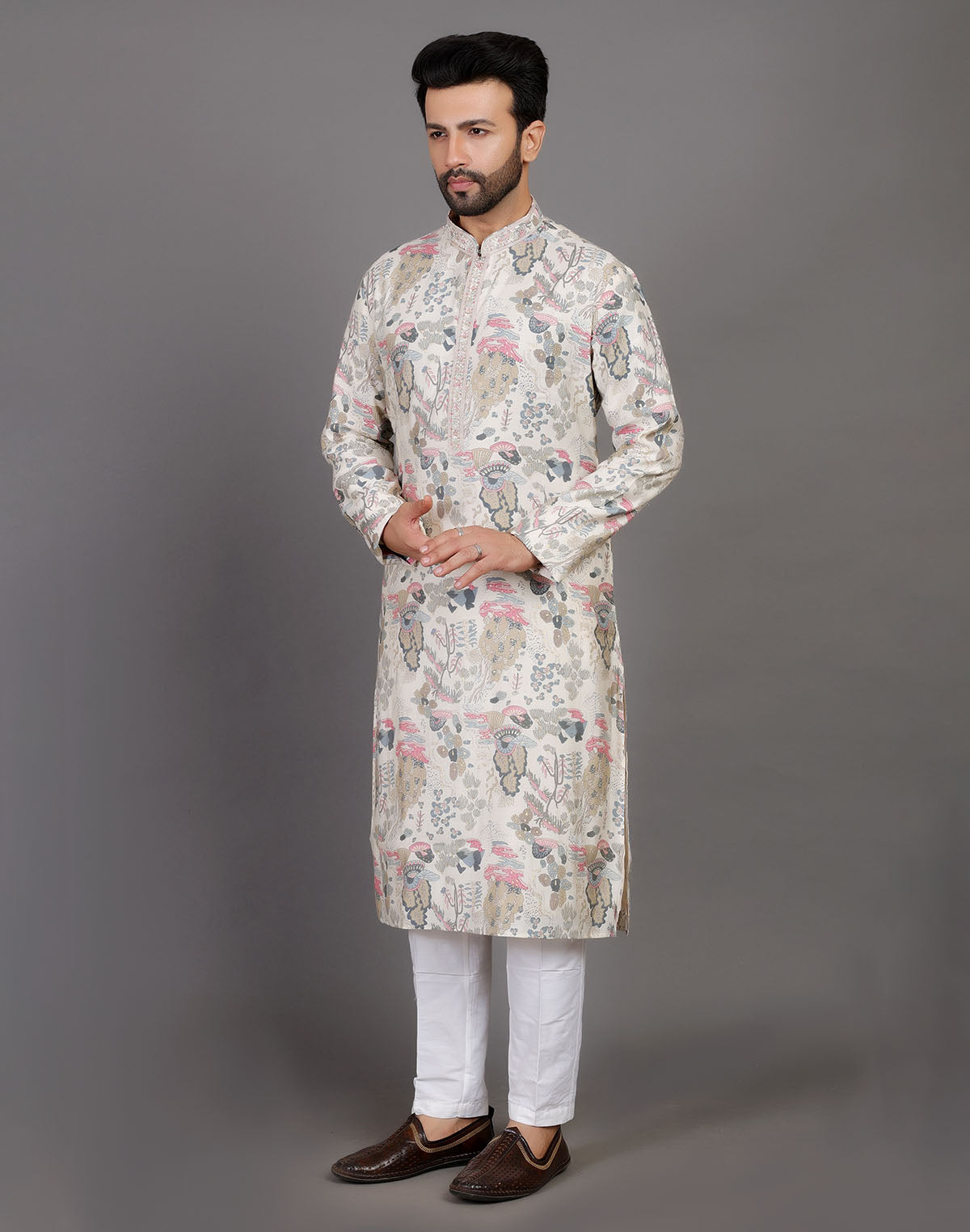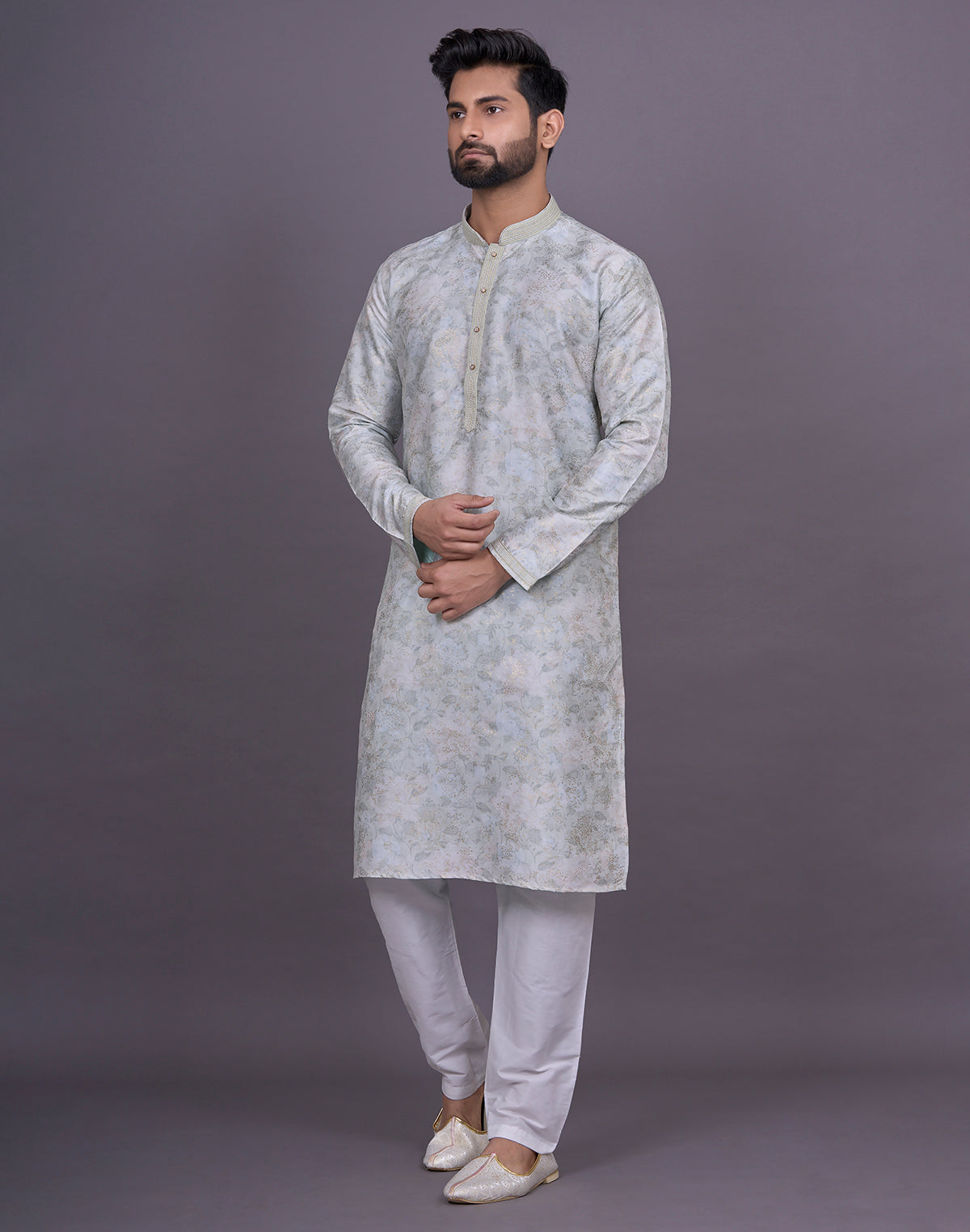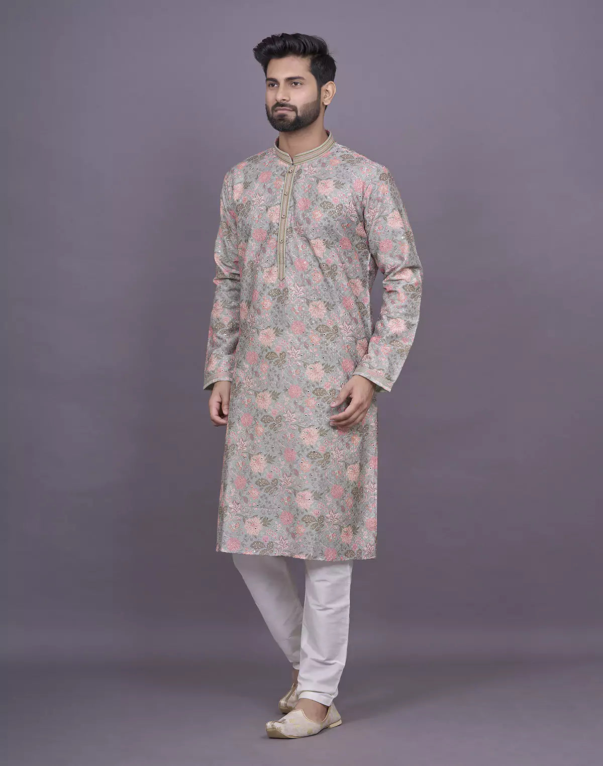 Graceful All Over Floral Print Raw Silk Kurta Pyjama Set