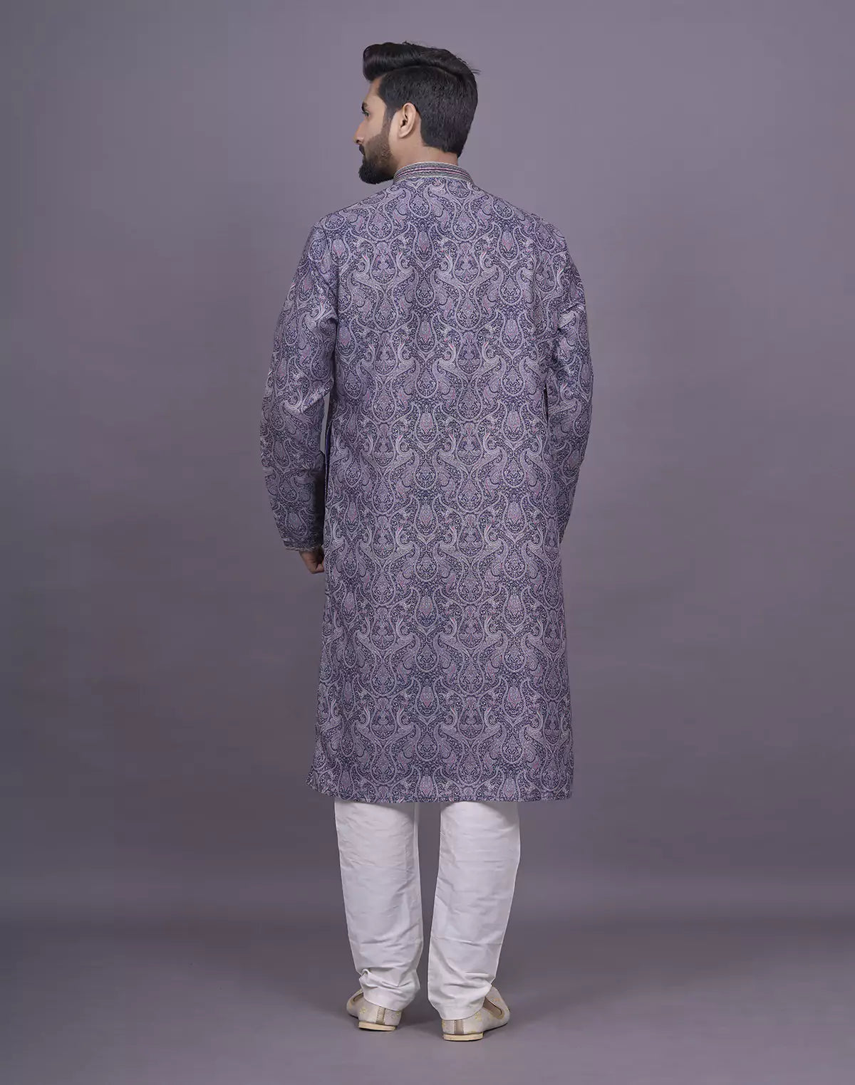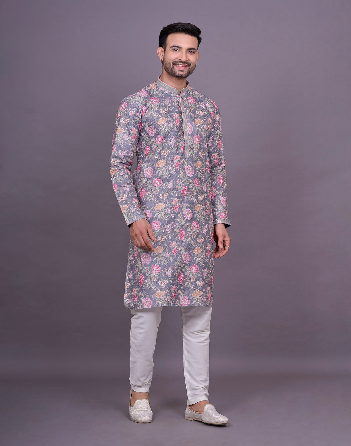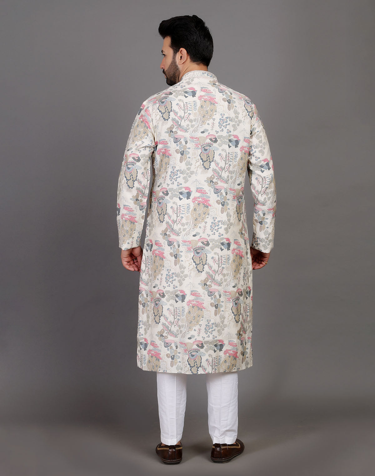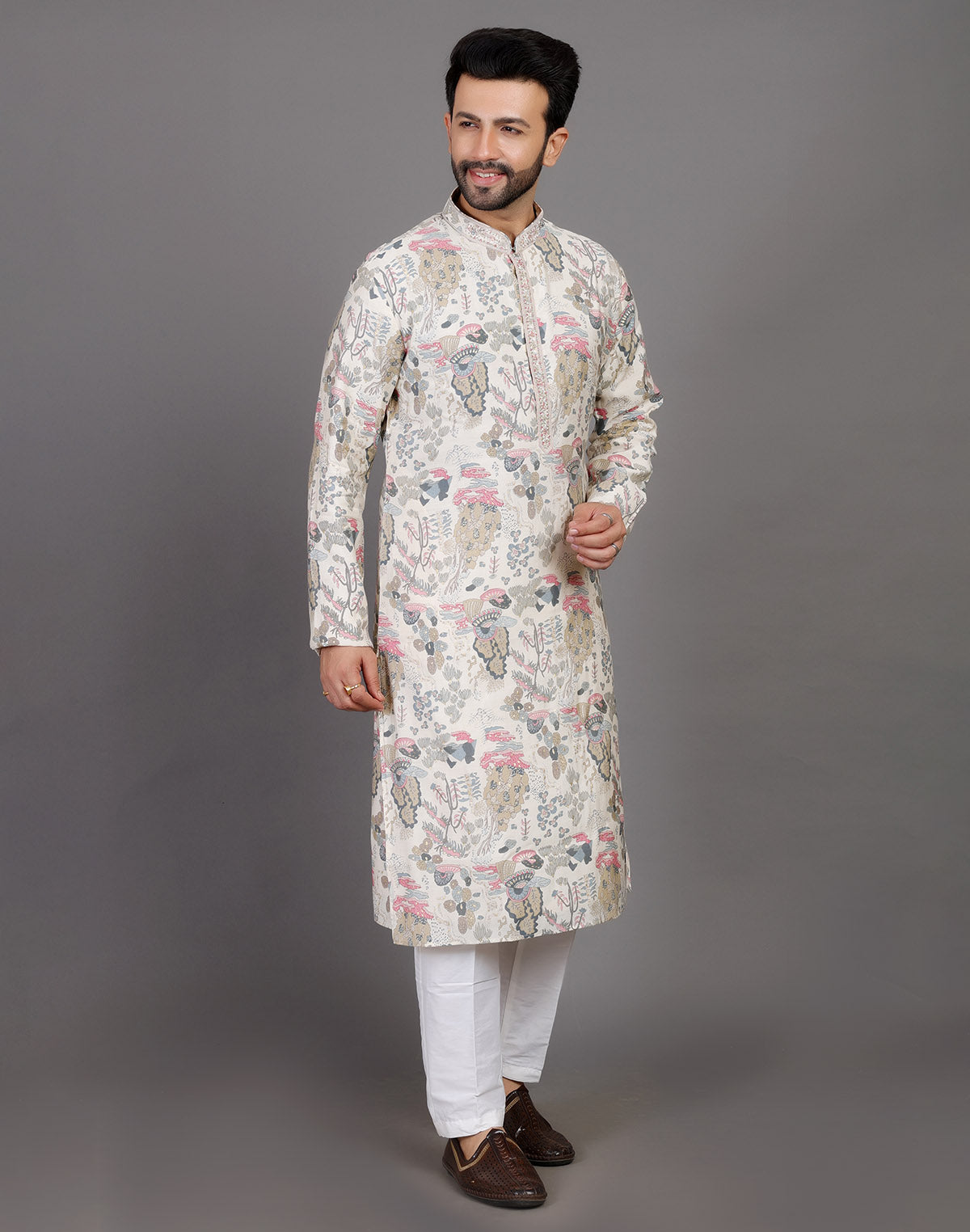 Graceful All Over Floral Print Raw Silk Kurta Pyjama Set