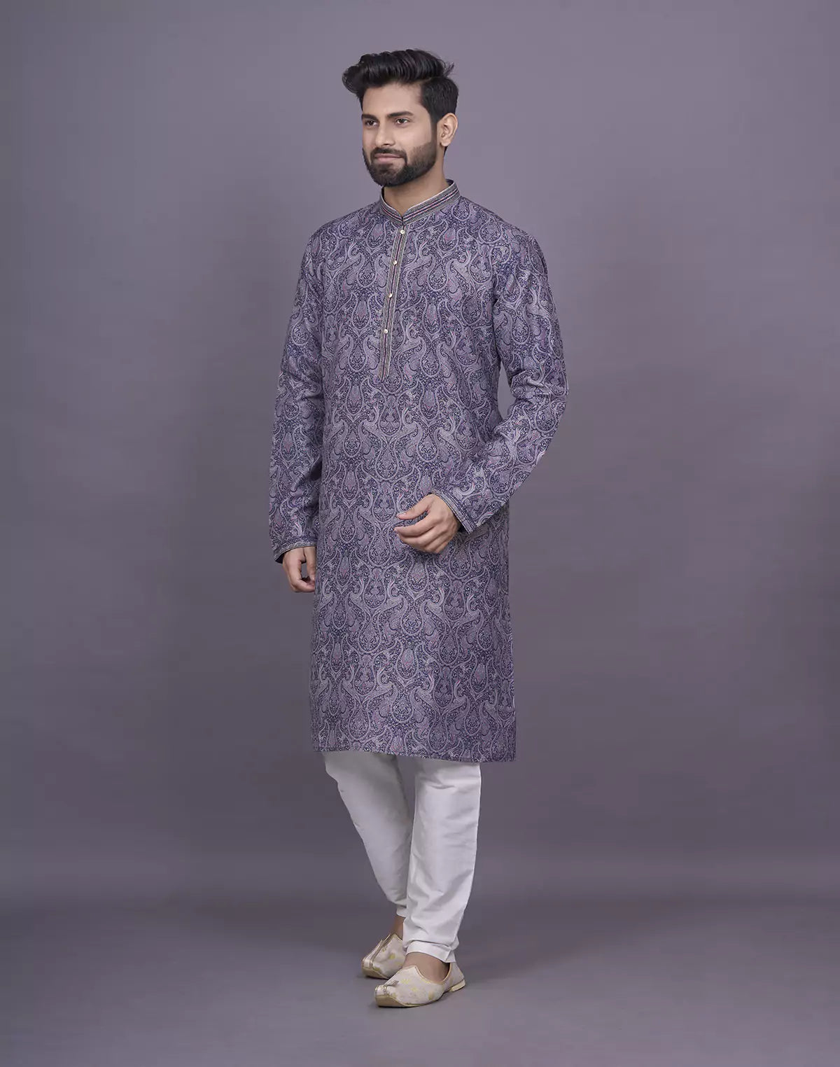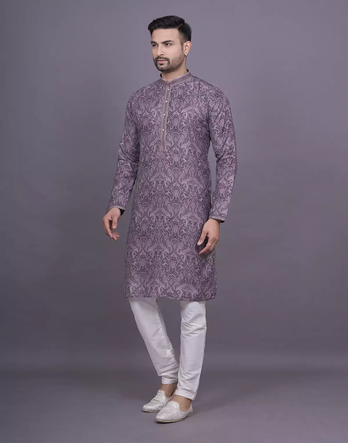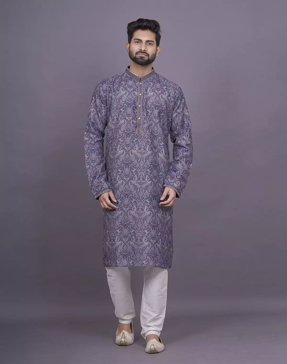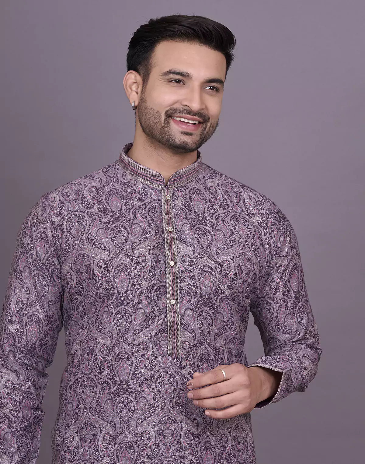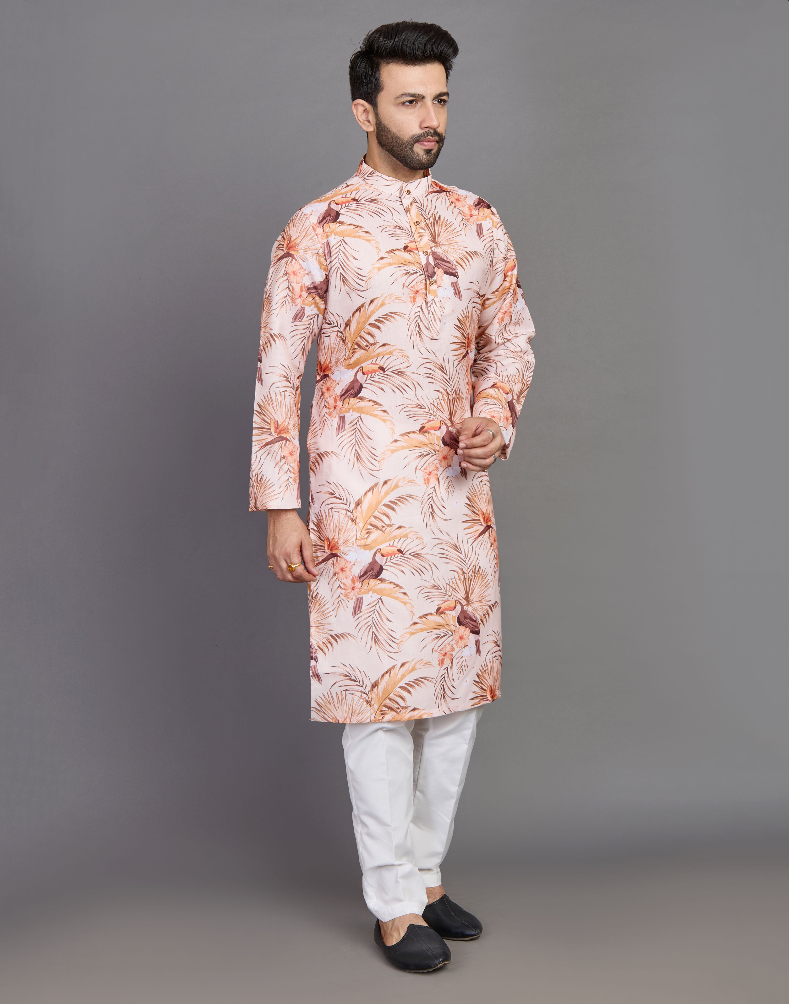 Graceful All Over Floral Print Raw Silk Kurta Pyjama Set