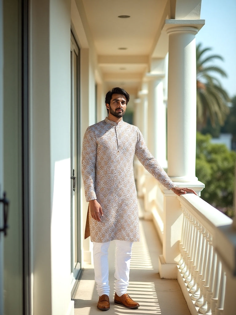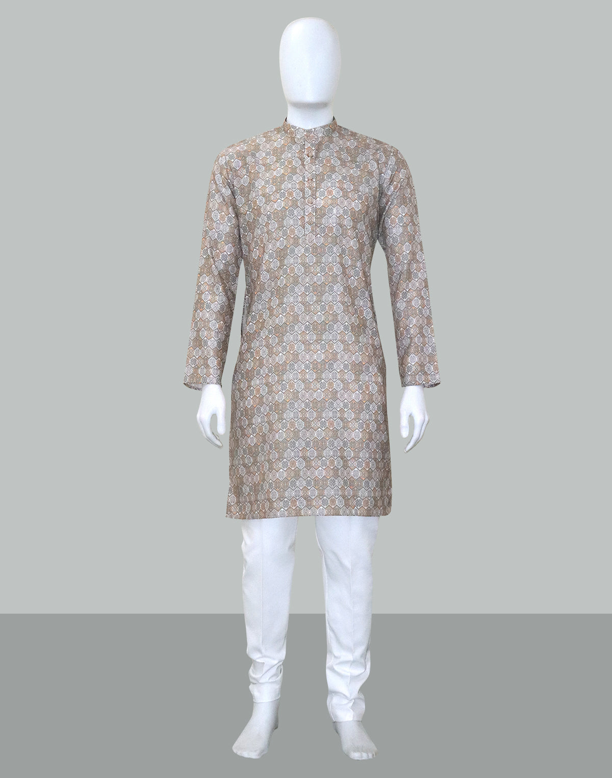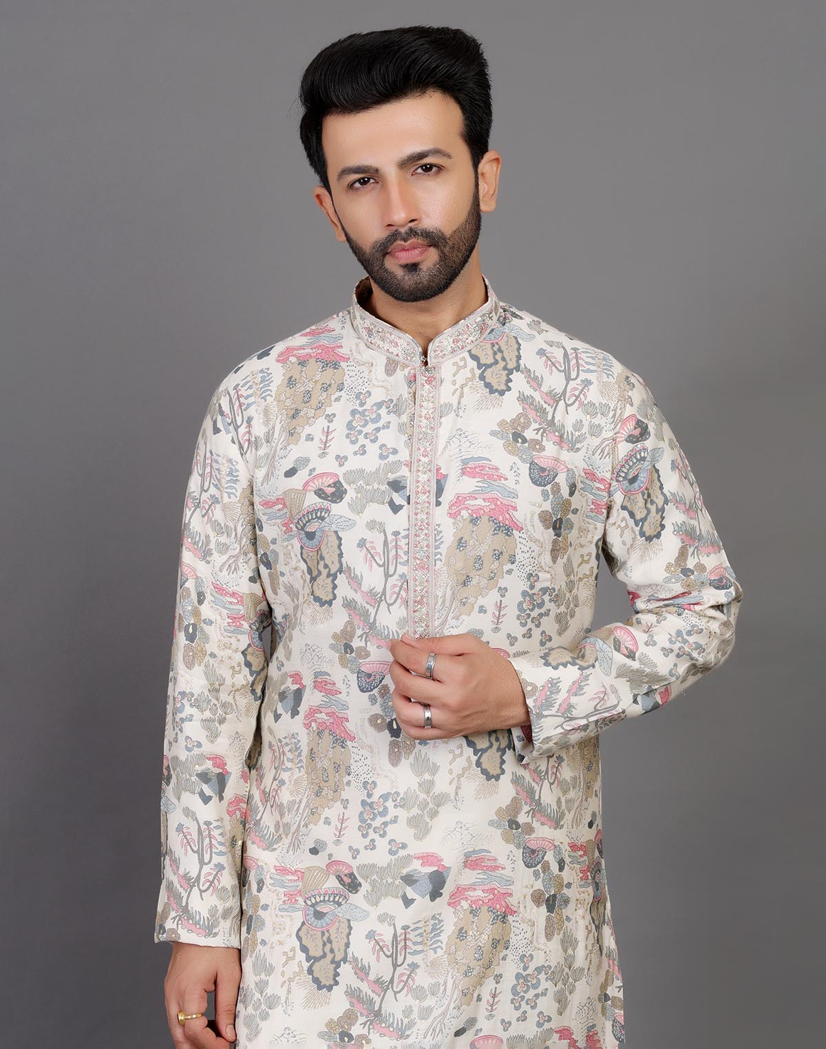 Floral Print with Zari Booti's Milky Silk Kurta Pyjama