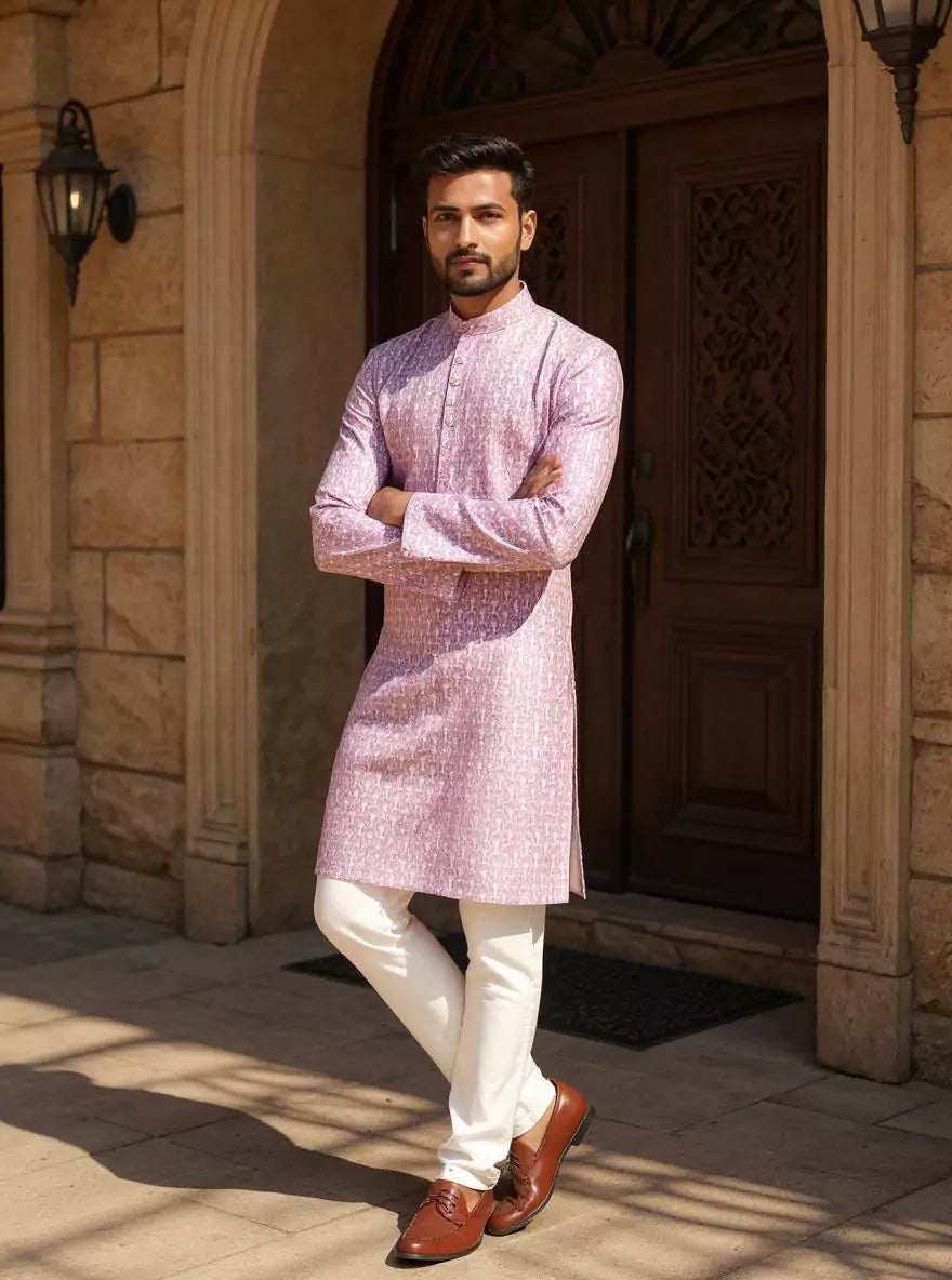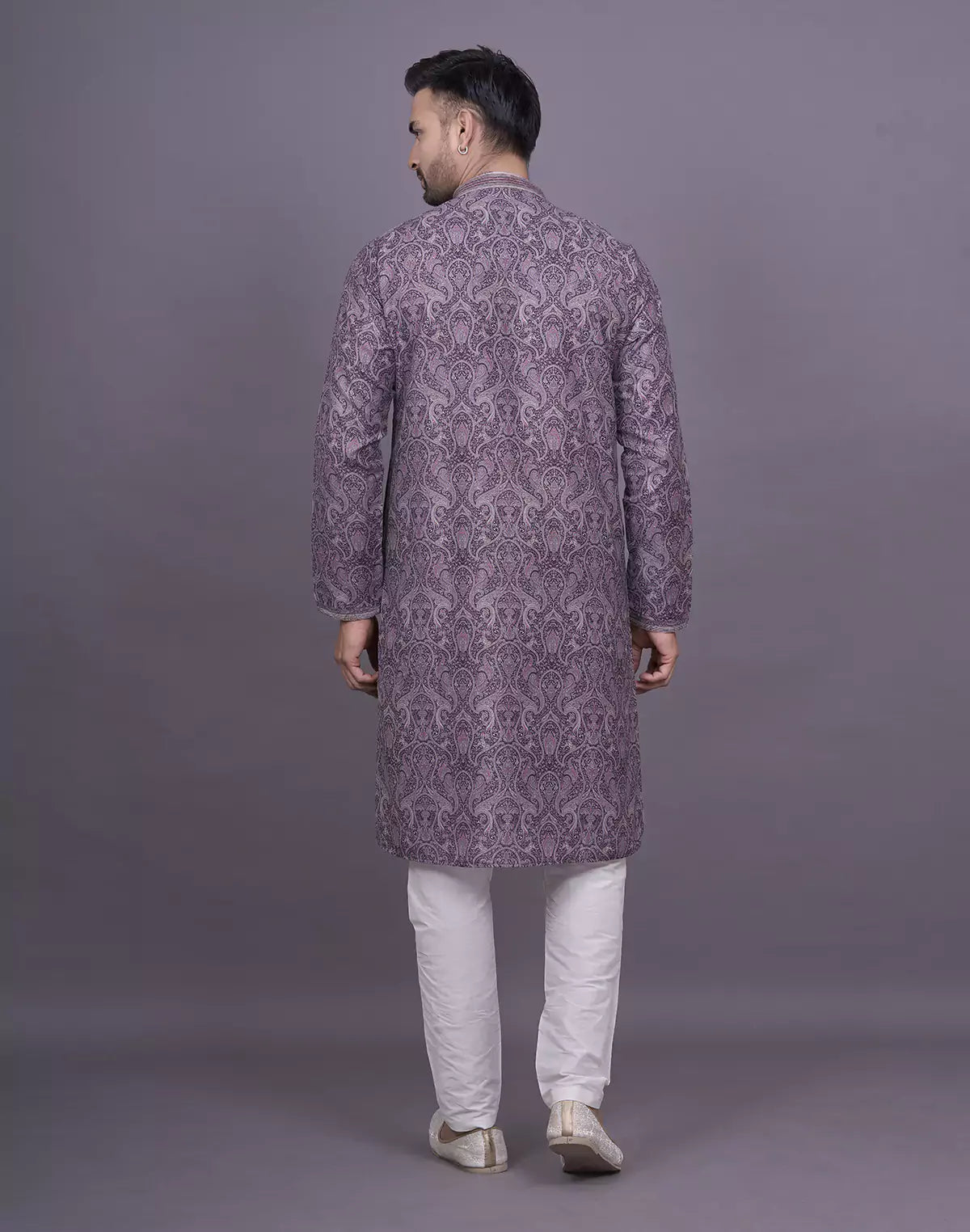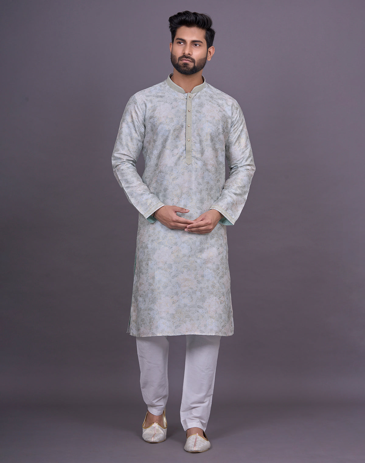 Graceful Floral Printed Jacquard Kurta Pyjama Set
