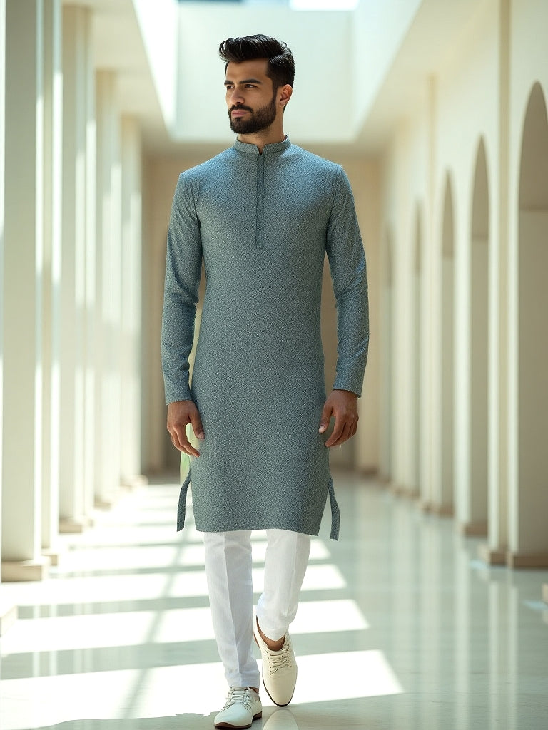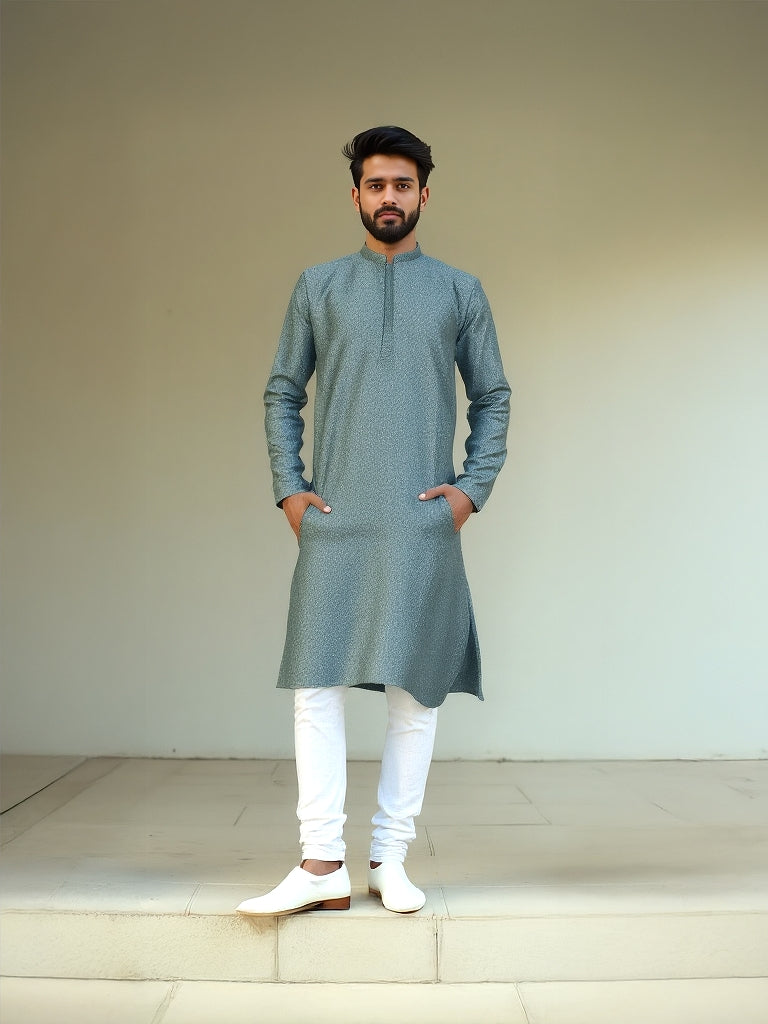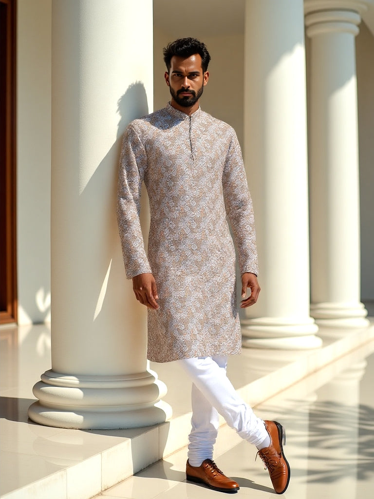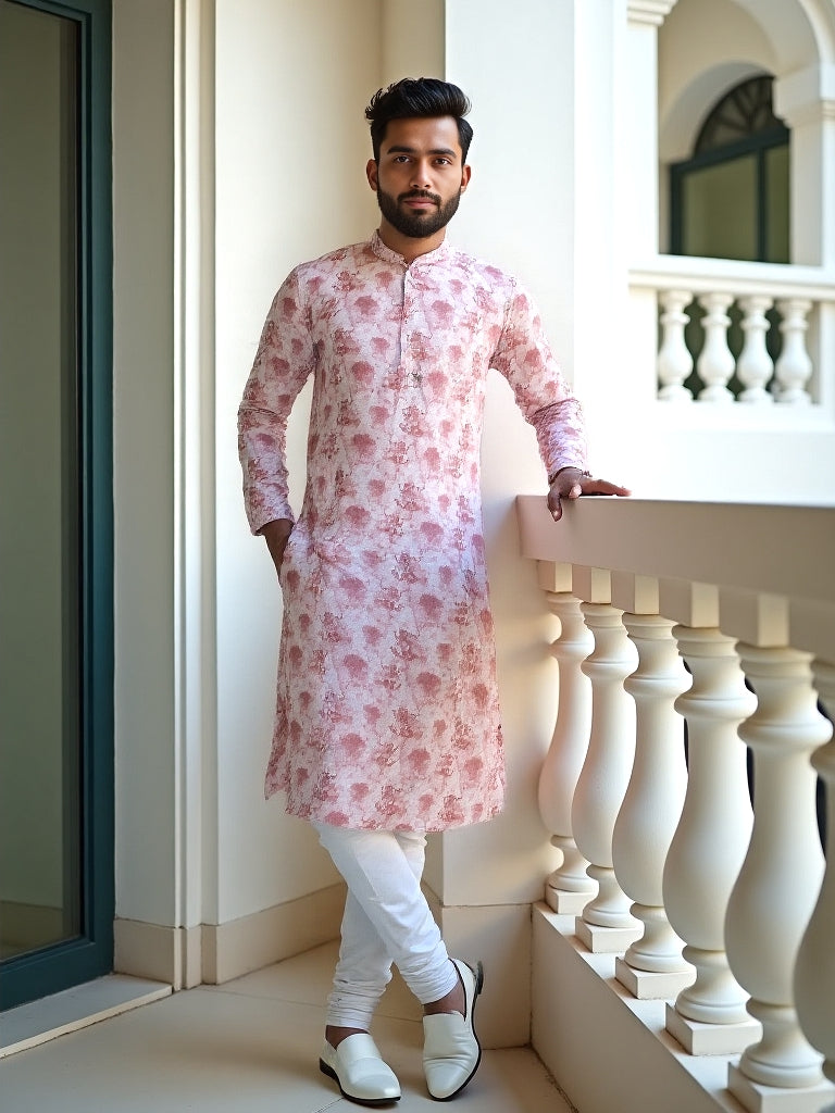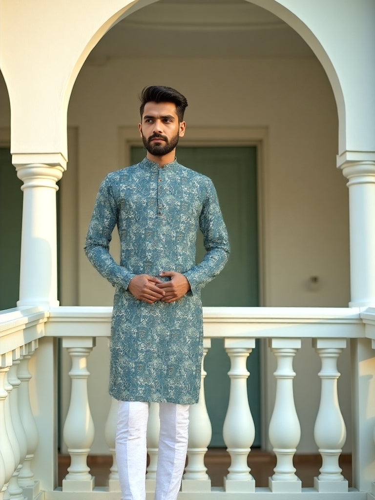 Graceful Floral Printed Jacquard Kurta Pyjama Set