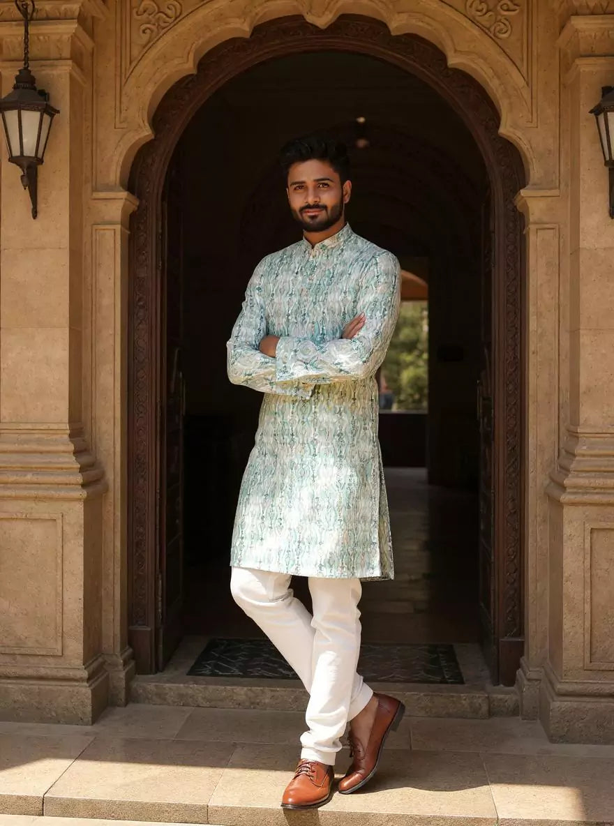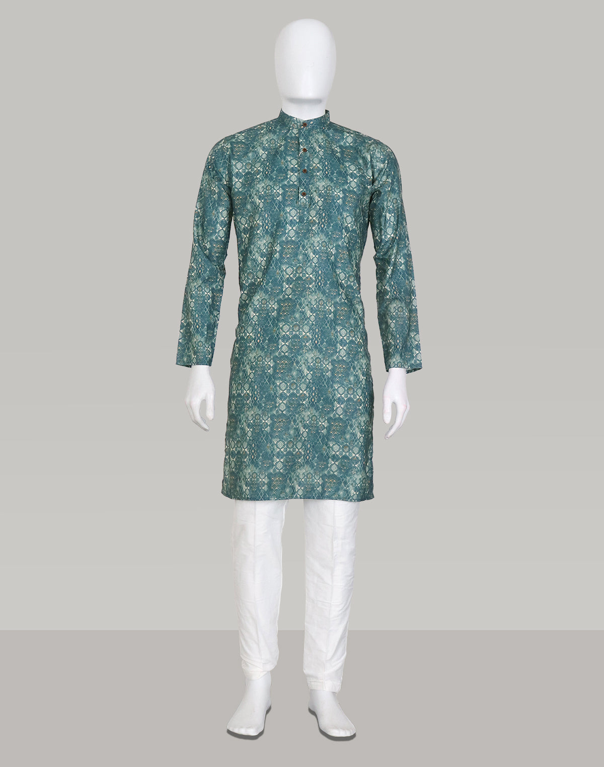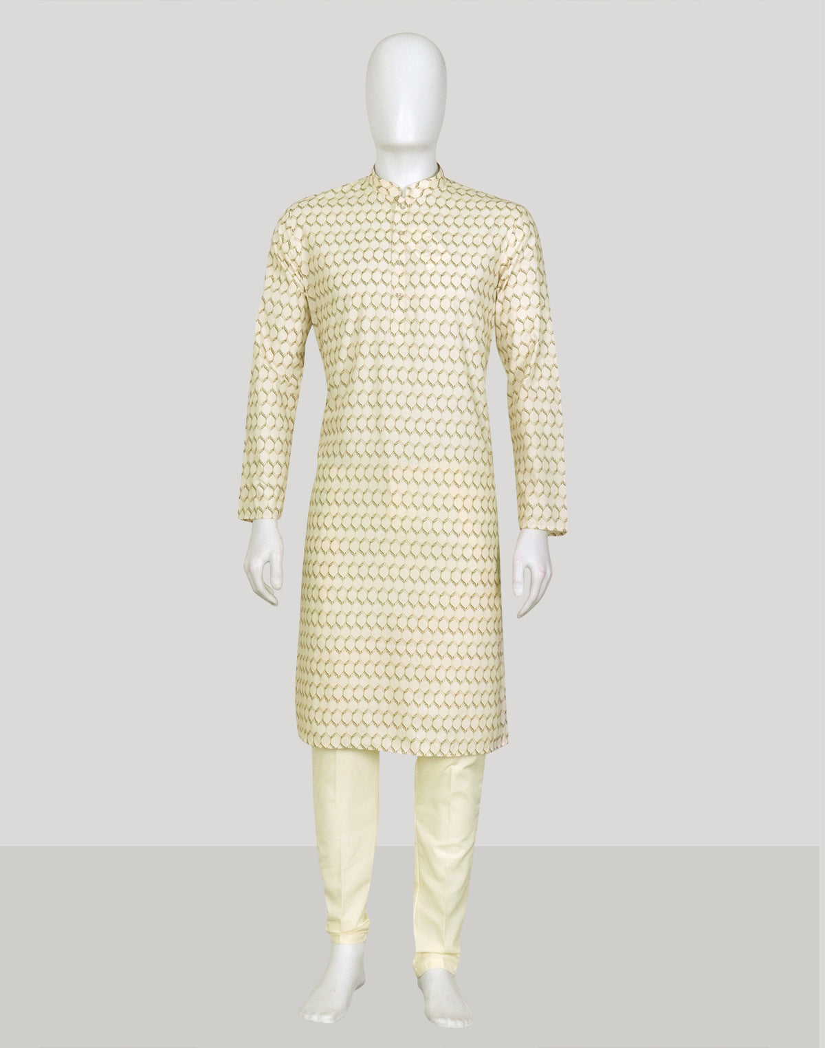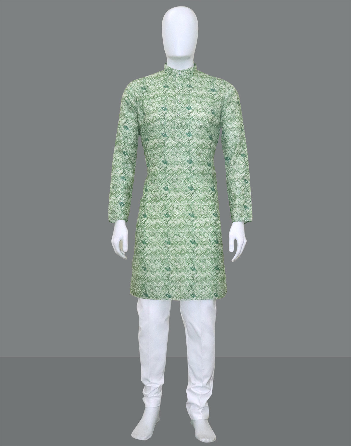 Floral Print with Zari Booti's Milky Silk Mehendi Kurta Pyjama