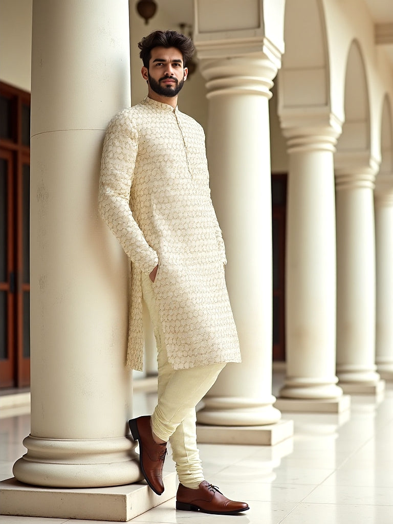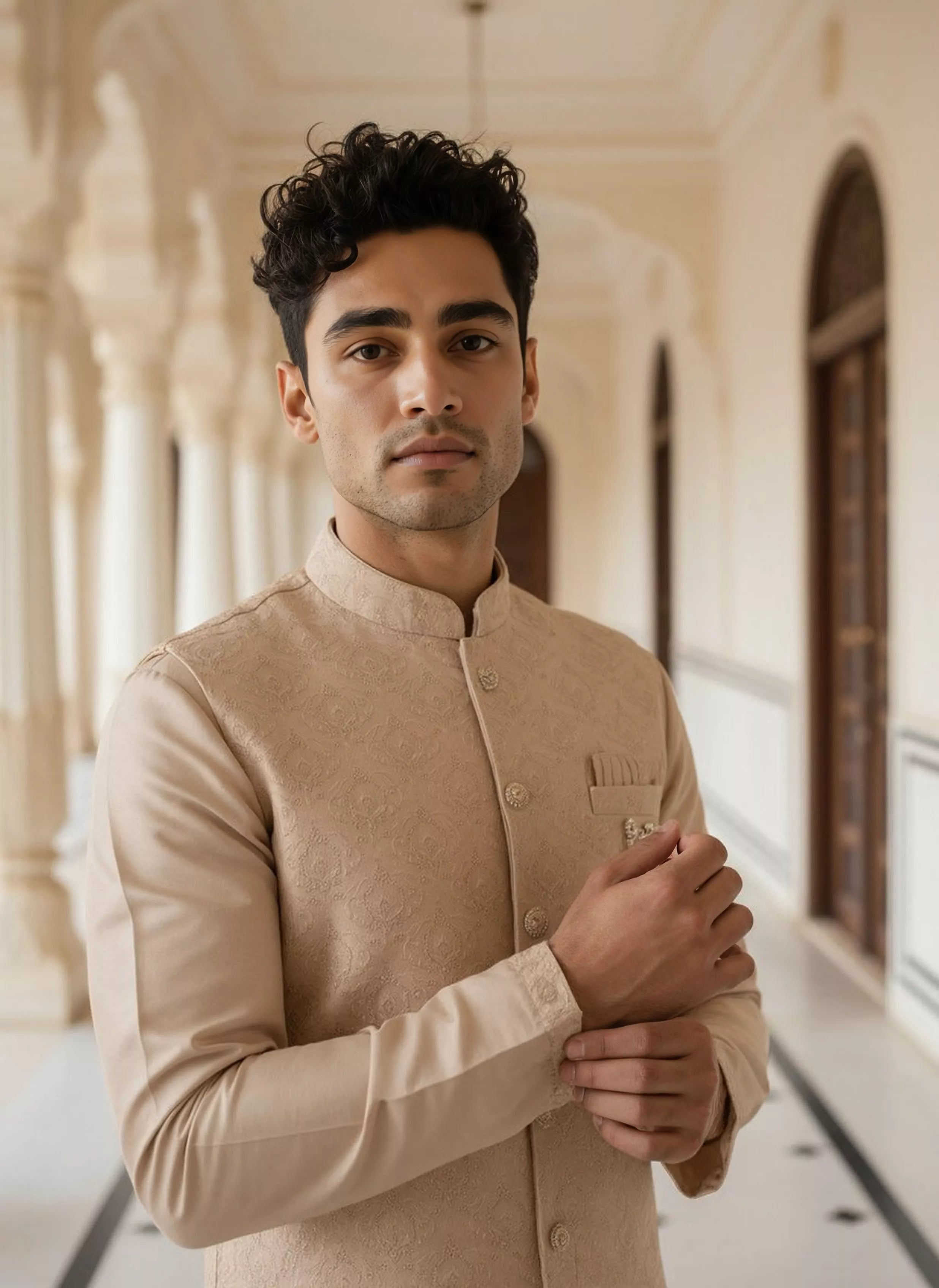 Gold Brocade Zardosi Cross Pattern Sherwani
