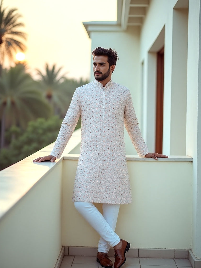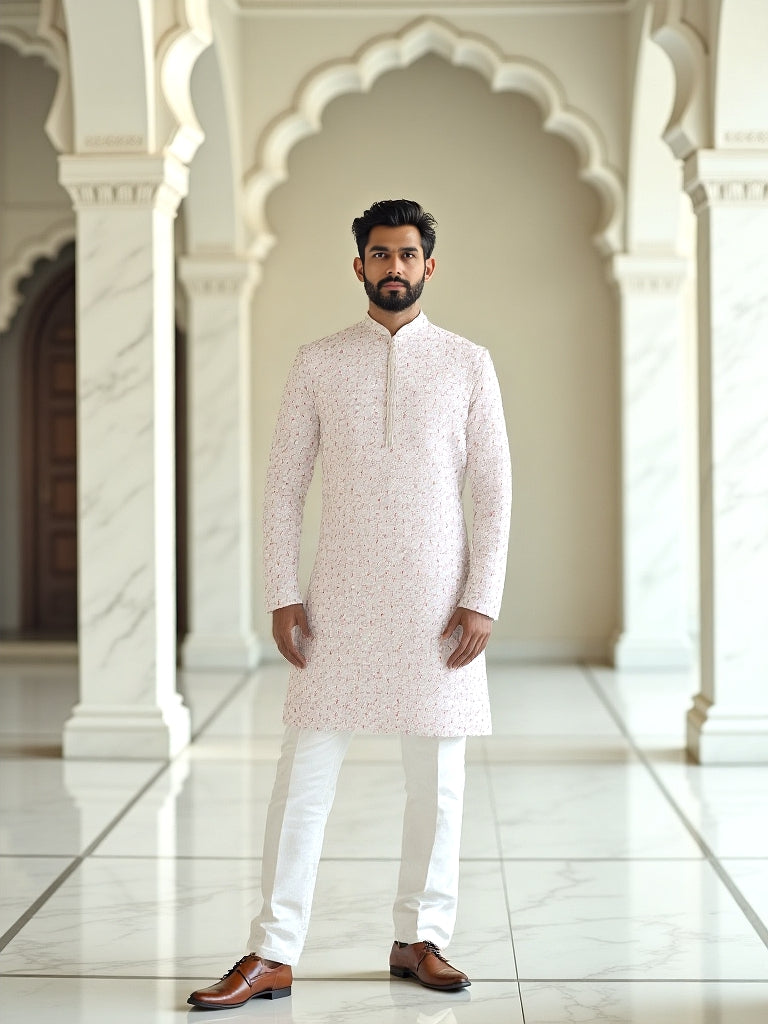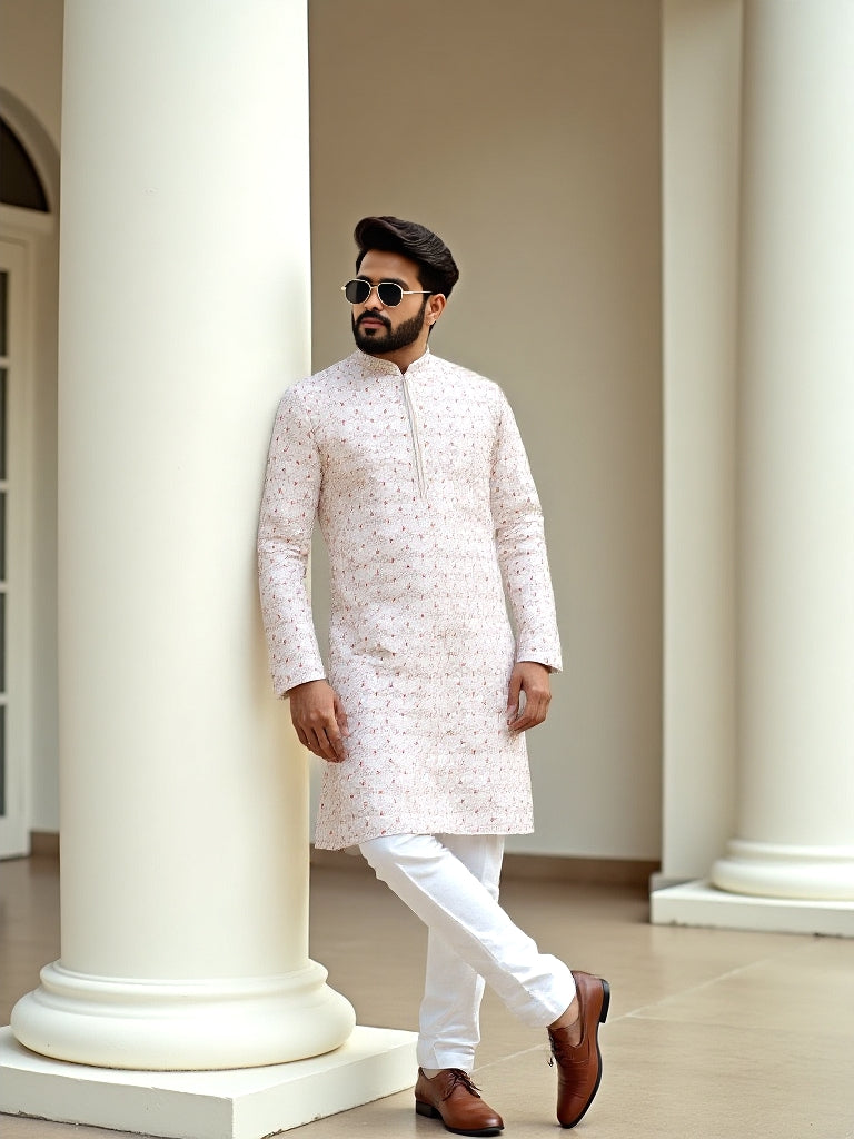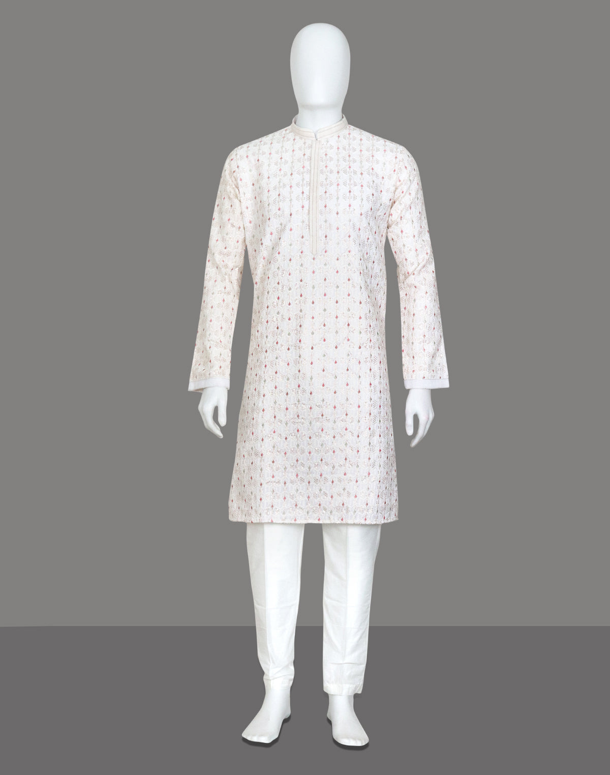 Floral Sequence and Mirror work Milky Silk Kurta Pajamas