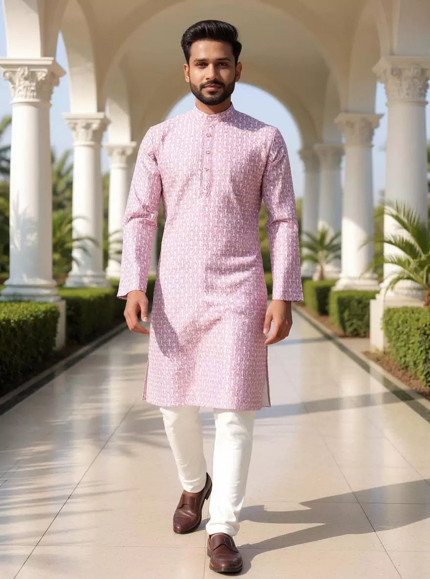 Graphic Print Cotton Regular Fit Pink Kurta Pyjama Set