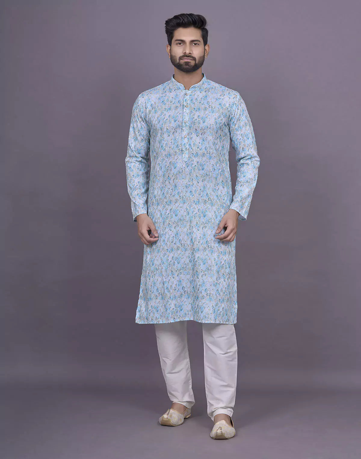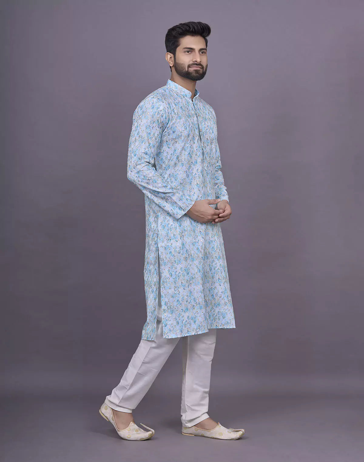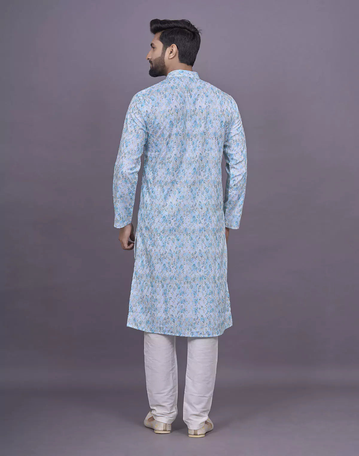 Glaxo Cotton Graphic Print Short Kurta in Sky Blue