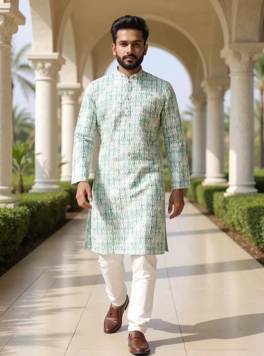 Green Aztec Printed Cotton Kurta Pyjama Set
