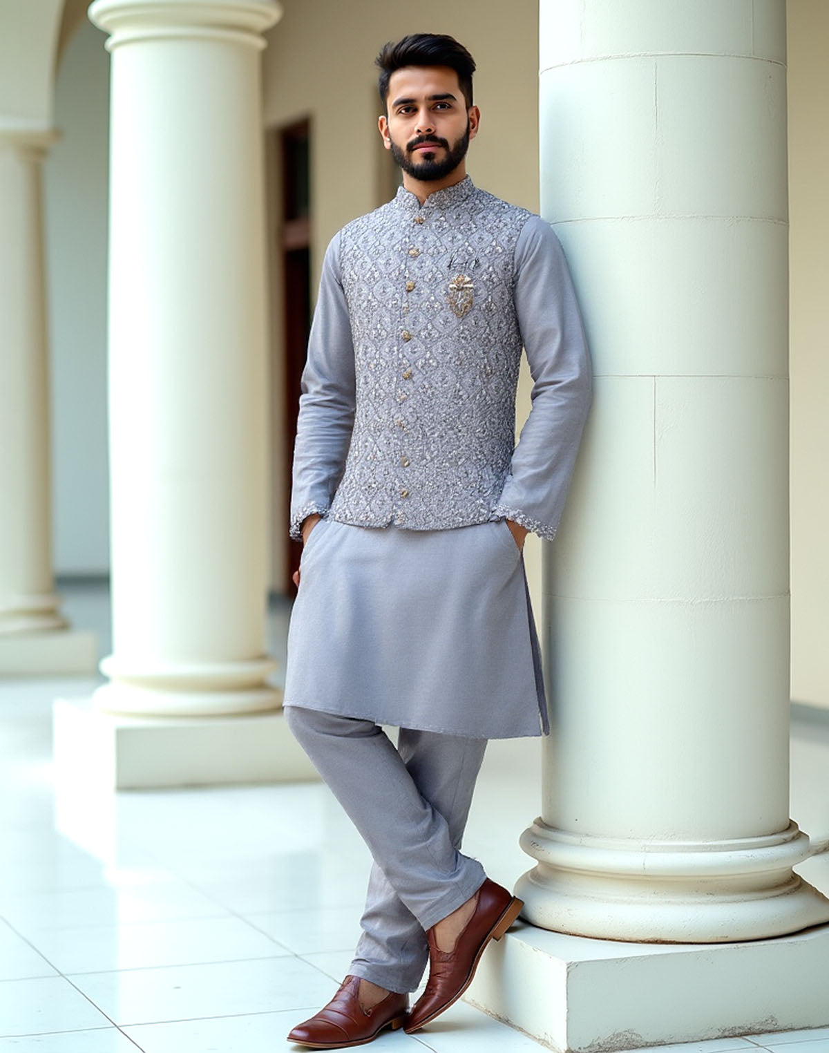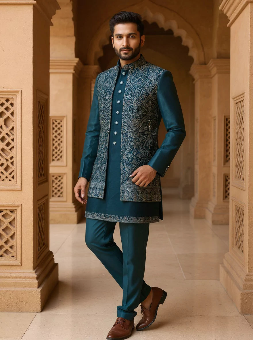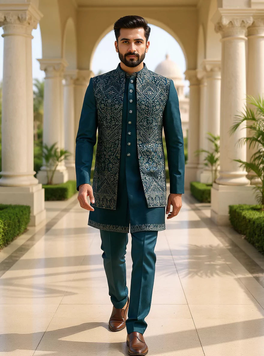 Heavy Embroidery Sherwani With Peshawari Wedding Sherwani