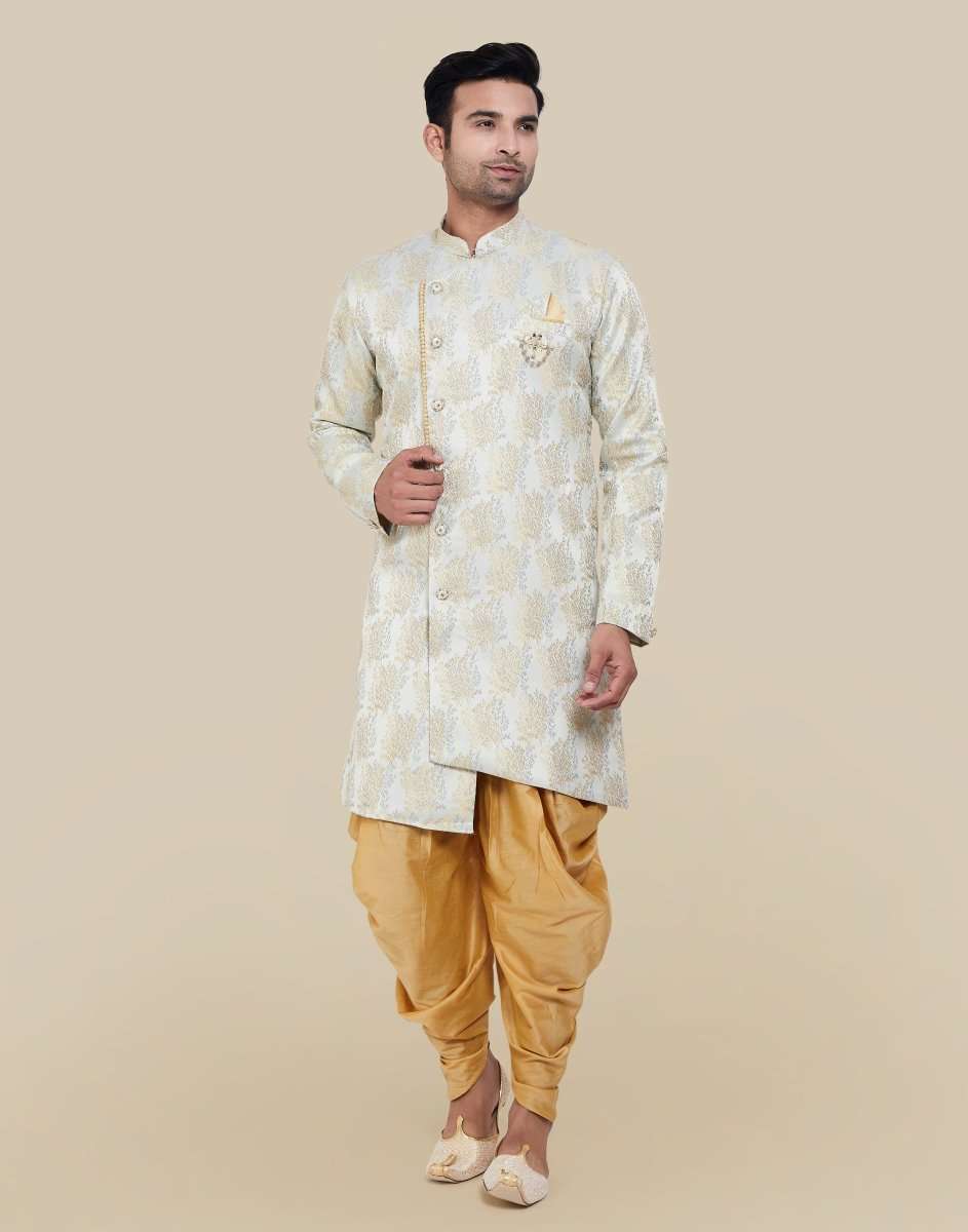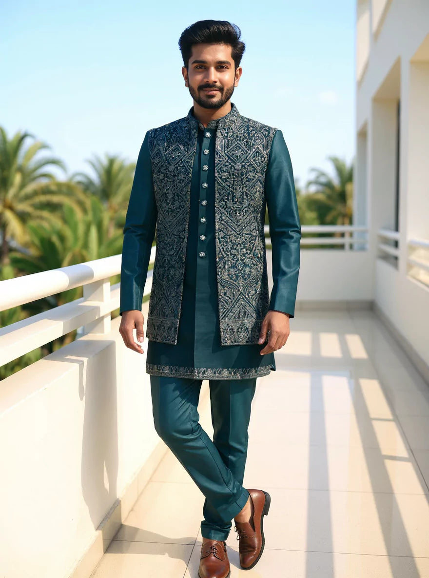 Jacquard Self Design Weaved Work Jacket Style Bandhagala Suit