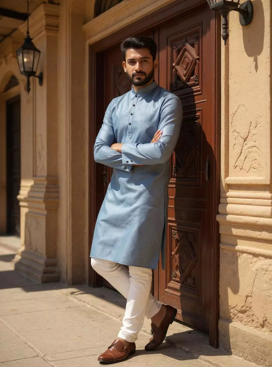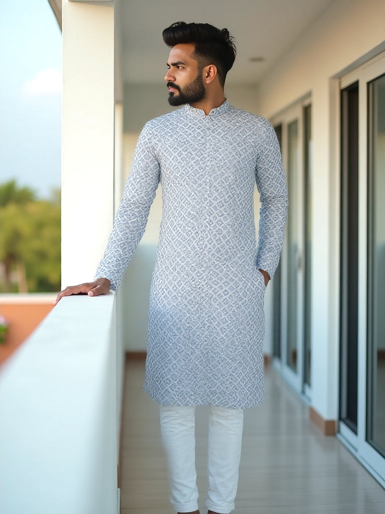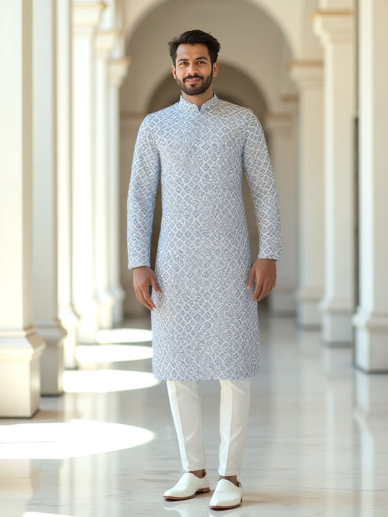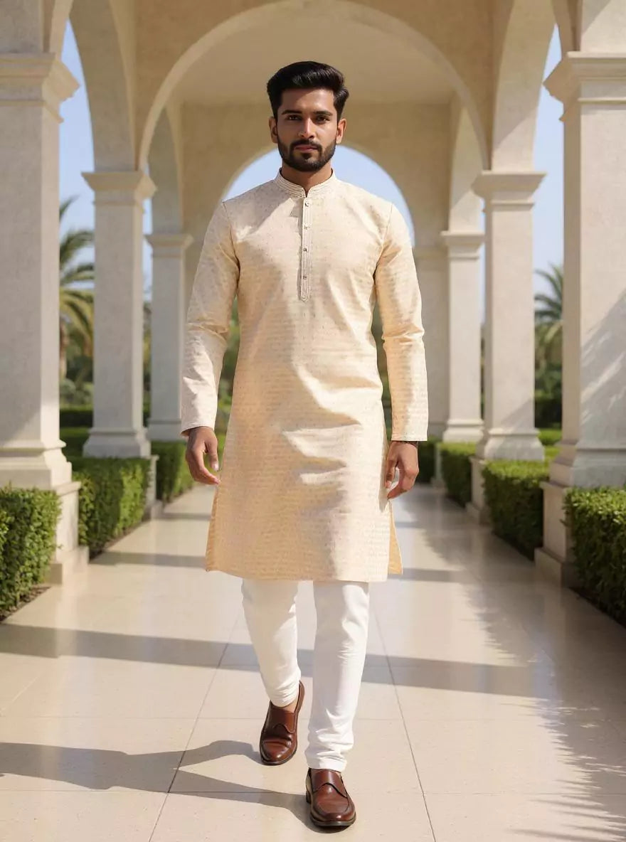 Jacquard Medallion Patterned Kurta Pyjama Set