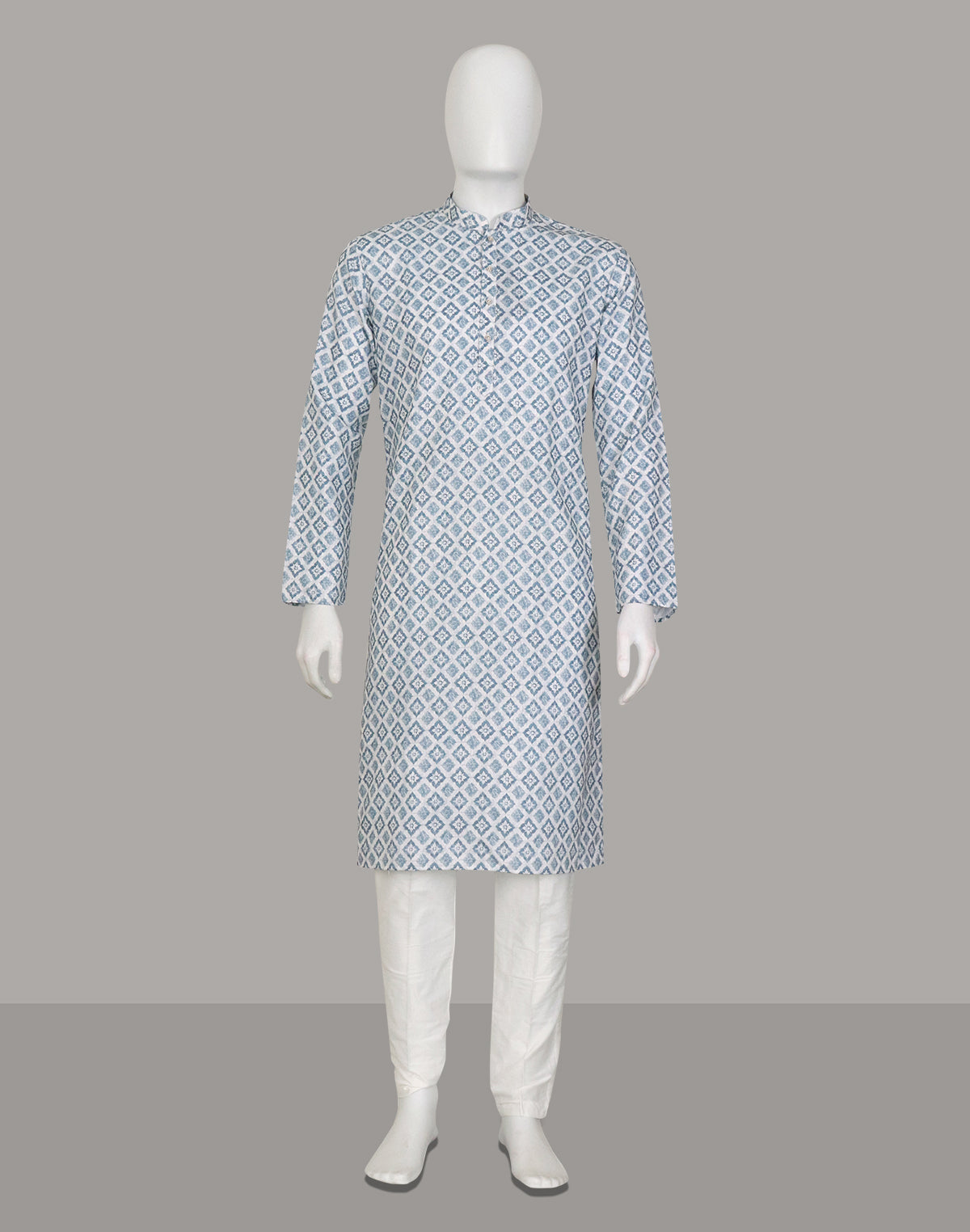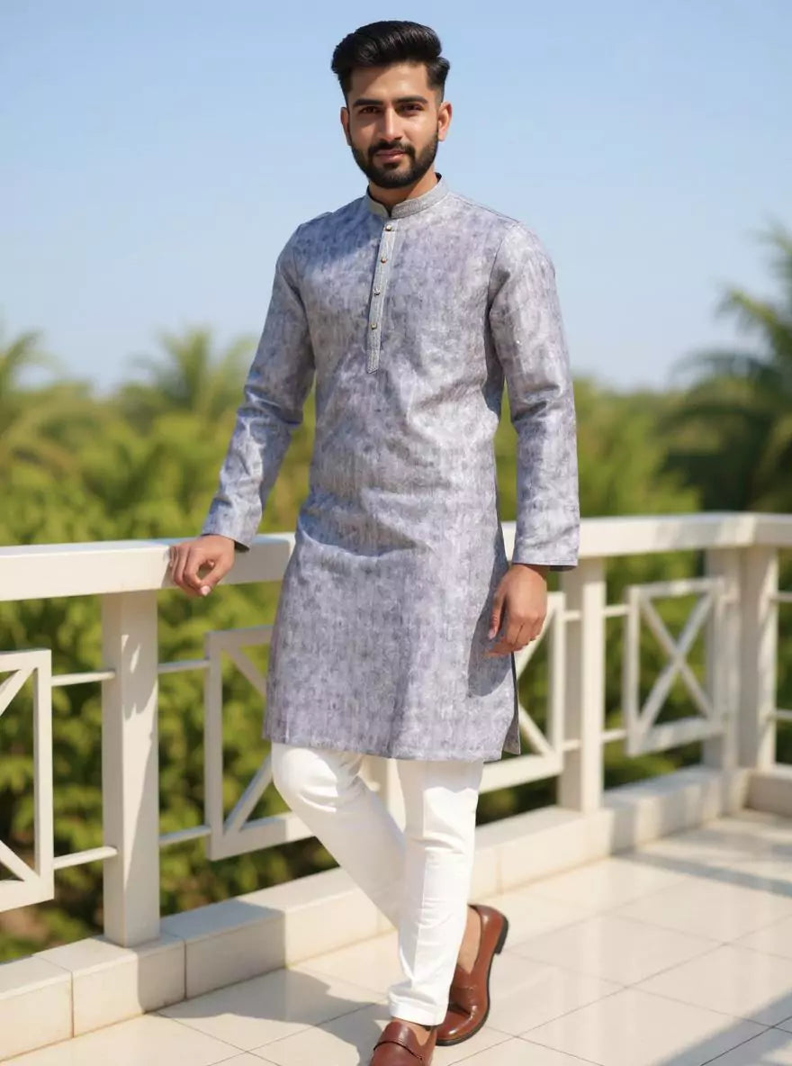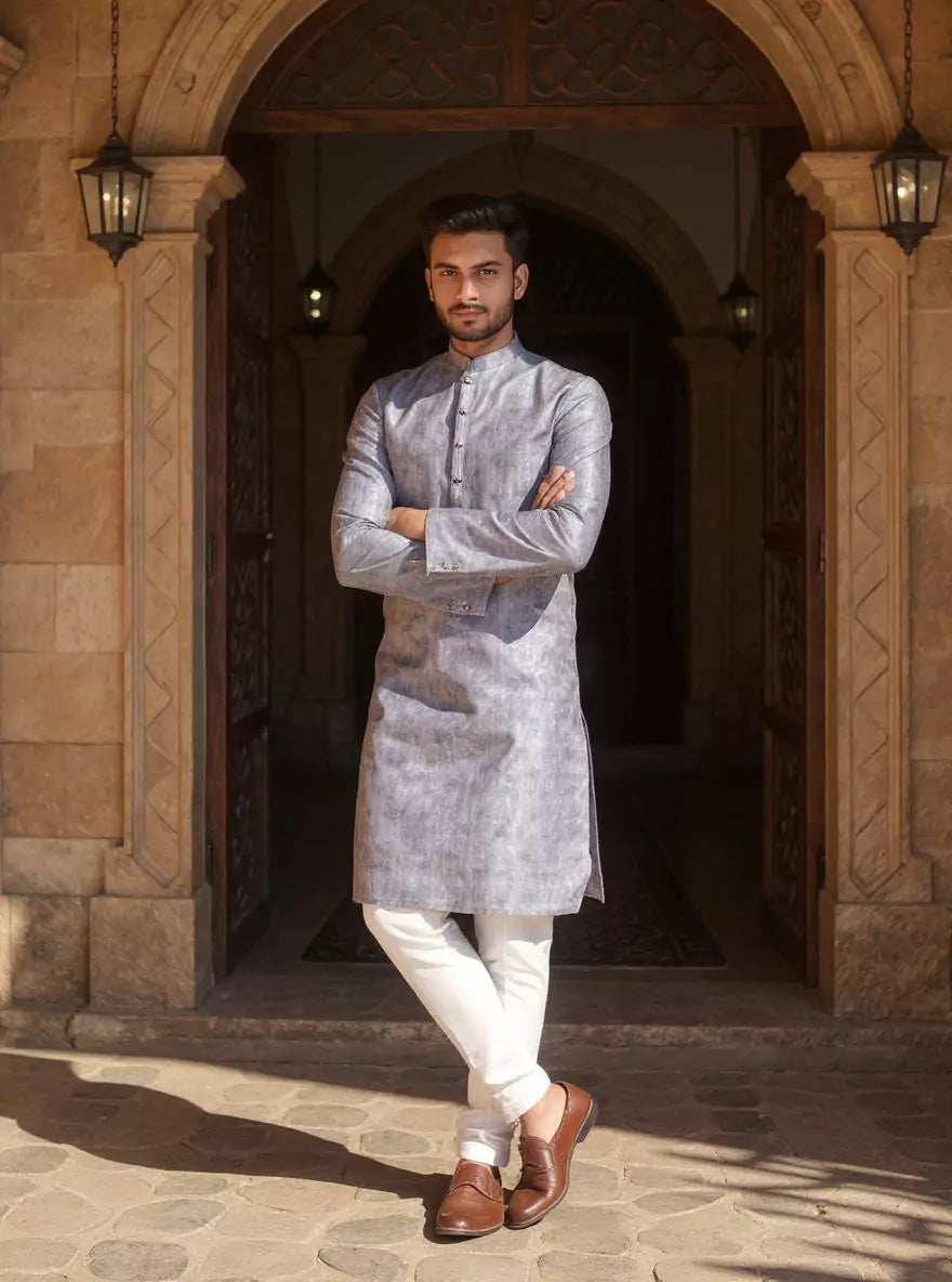Grey Zig Zag Patterned Cotton Silk Kurta