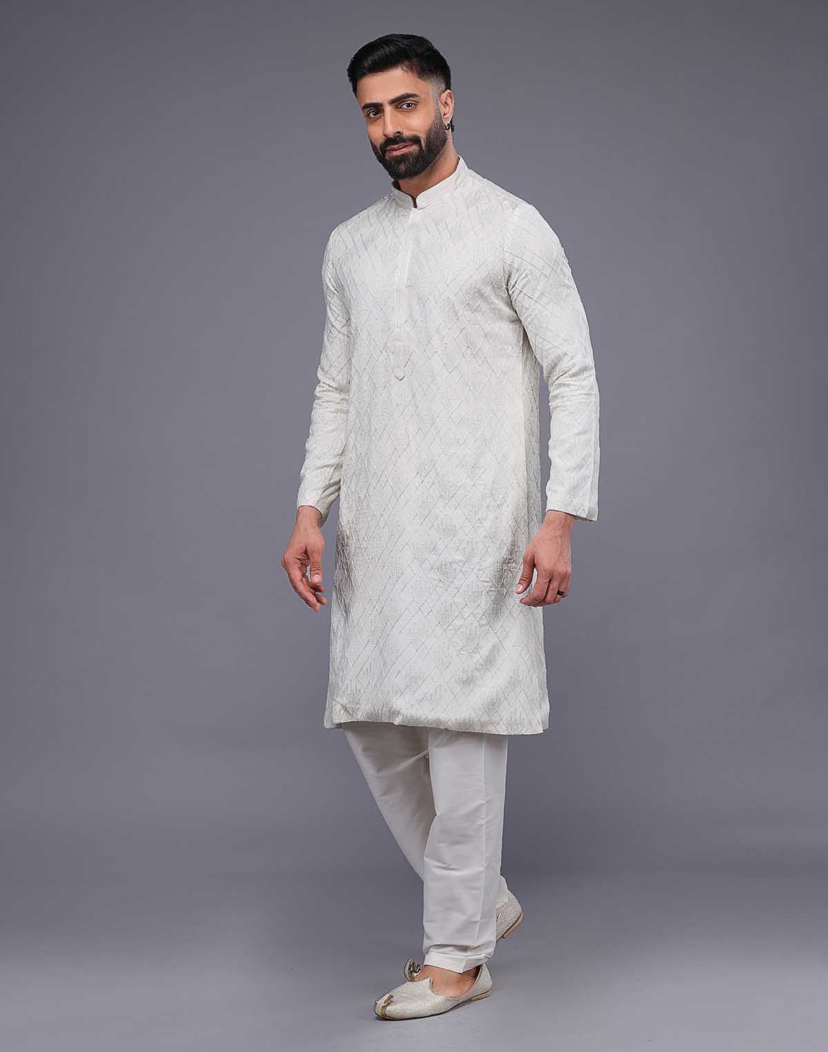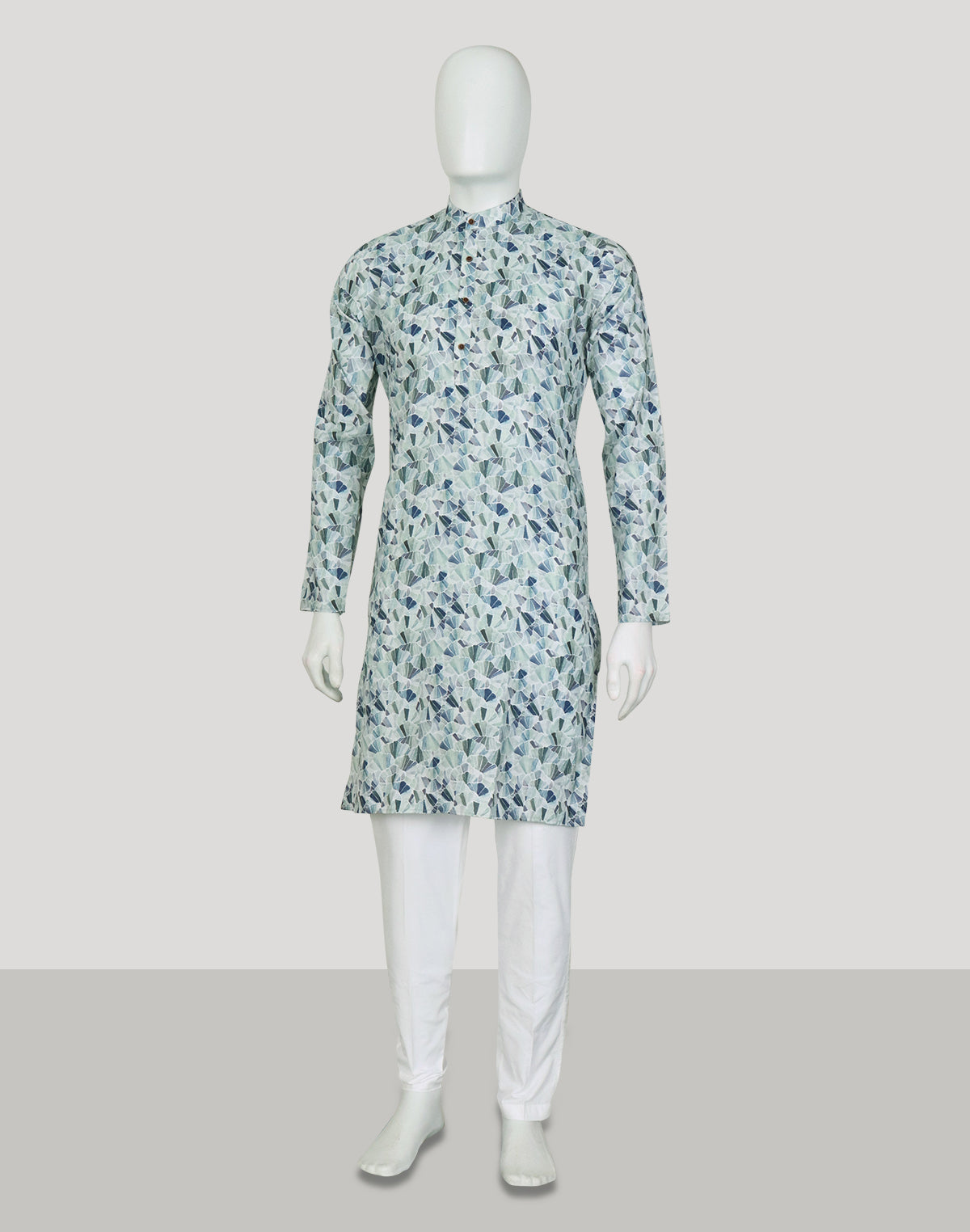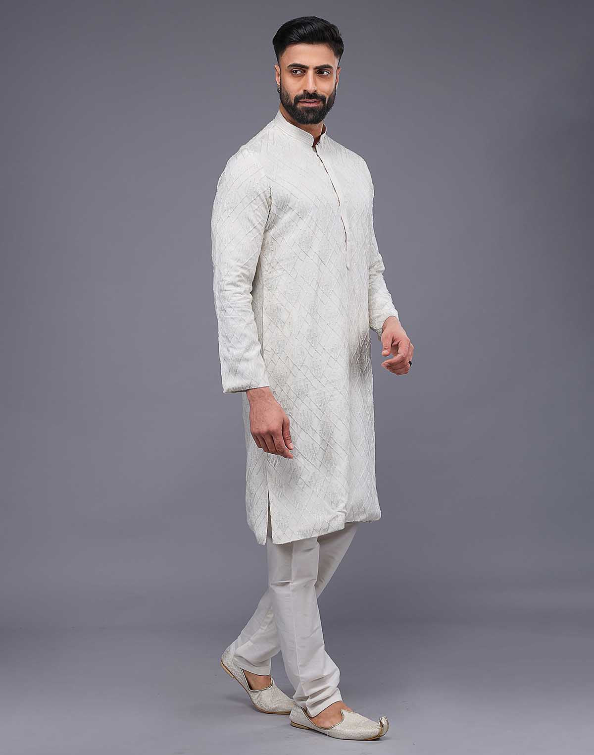 Grey Zig Zag Patterned Cotton Silk Kurta