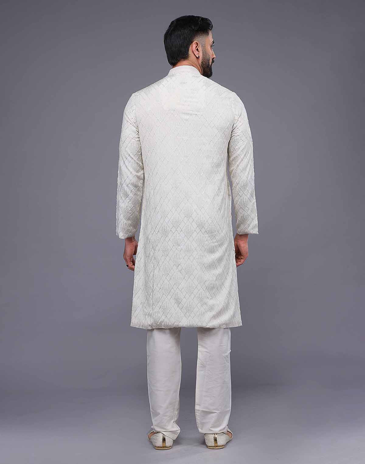 Grey Floral Thread with Embellished work Jacquard Kurta Jacket Set
