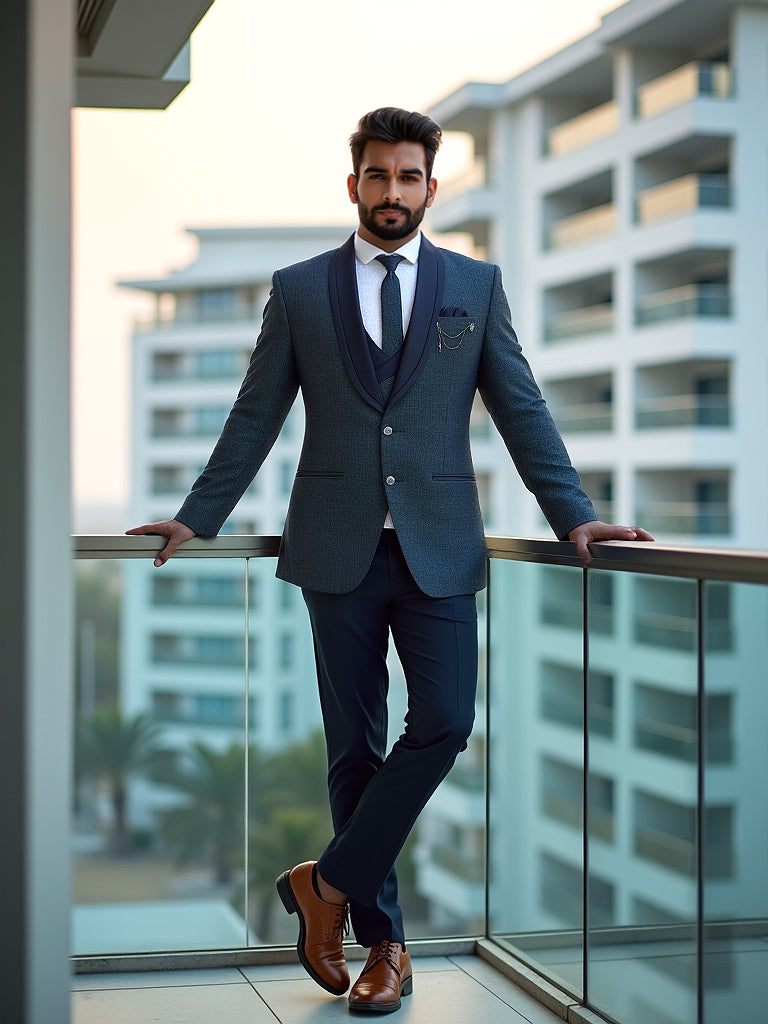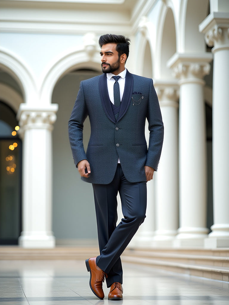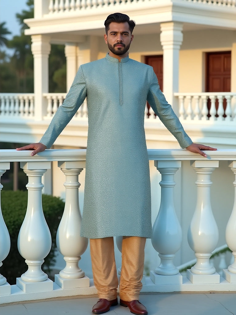 Jacquard Thread And Sequence Work Indo Western Sherwani Set