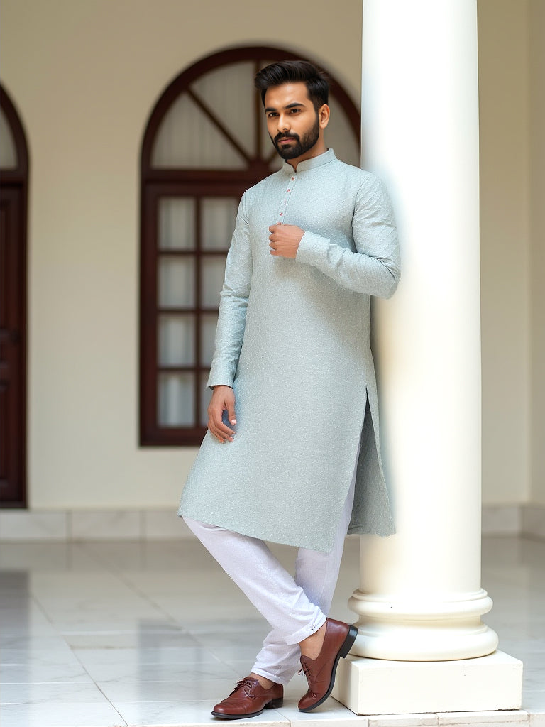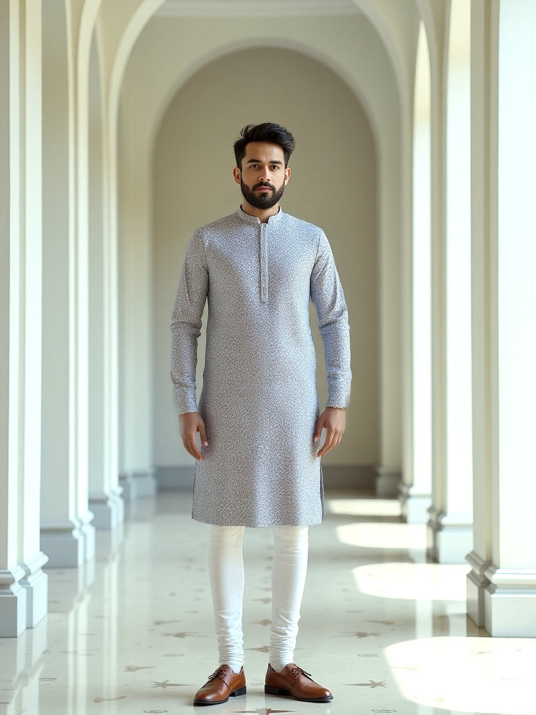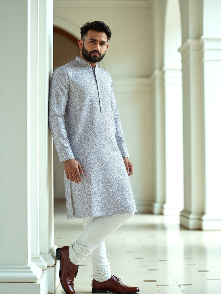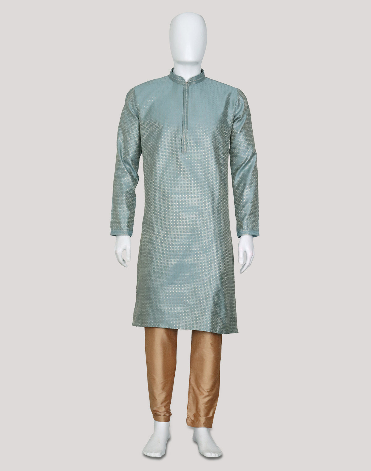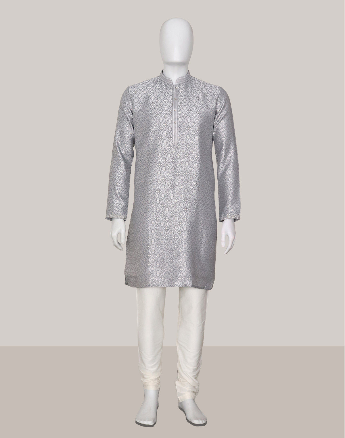 Light Grey Floral Brocade Design Jacquard Kurta Pajama