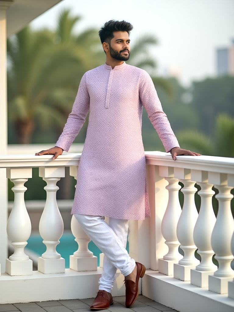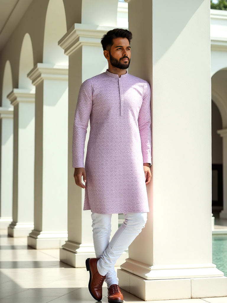 Light Pink Self Geometric Design Jacquard Kurta Pajama